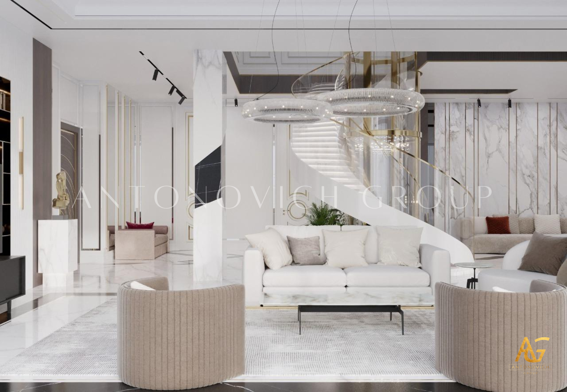 Proper space planning is essential for an open and airy feel. Antonovich Group optimizes layouts to maximize functionality, ensuring a harmonious flow between furniture placement, lighting, and decorative elements.