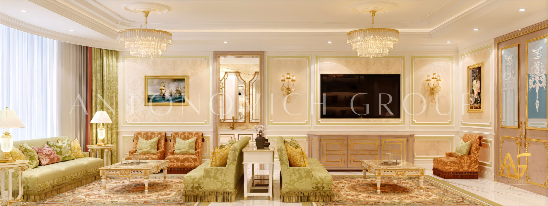 One of the most important factors to consider when purchasing new furniture is the size. To avoid overwhelming the room, the sofa should be well-fitting. If youre starting from scratch, youll need to consider the overall aesthetic of the space before purchasing a sofa. A large sectional couch can be placed in a large sitting room design; however, if you want to add an armchair or ottoman, a smaller sofa is required. Consider a two or three-seat sofa for smaller spaces to avoid clogging the space with furniture. The use of neutral colors as a base will enhance the very artistic and elegant setting of furniture design and decoration, completing an amazing interior design mood of a luxury sitting area.