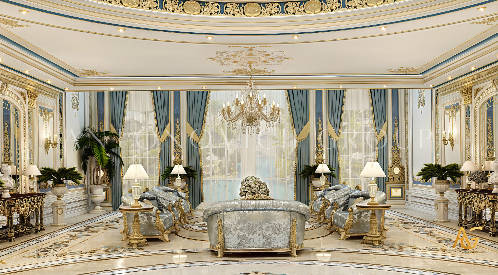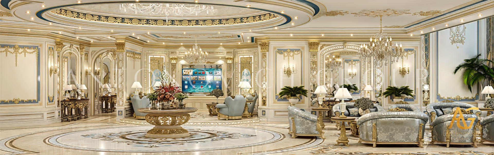 Patterns are crucial in completing this lovely luxury living room interior design. On the walls, lovely white and brown patterns coexist with an appealing flowy design. The abstract art is exquisitely crafted. It raises the monetary value of the luxury living room interior design. The brown pattern is found in the television rack. The minimalist style is ideal for those looking for a simple yet luxurious space. The lovely carpet with a high-quality texture adds to the luxurious living room interior design. Another type of design is straight lines. Gray is an excellent interior design color to use if you want to create a peaceful, muted, and calming environment. Because it is a neutral color, it will allow you to experiment.