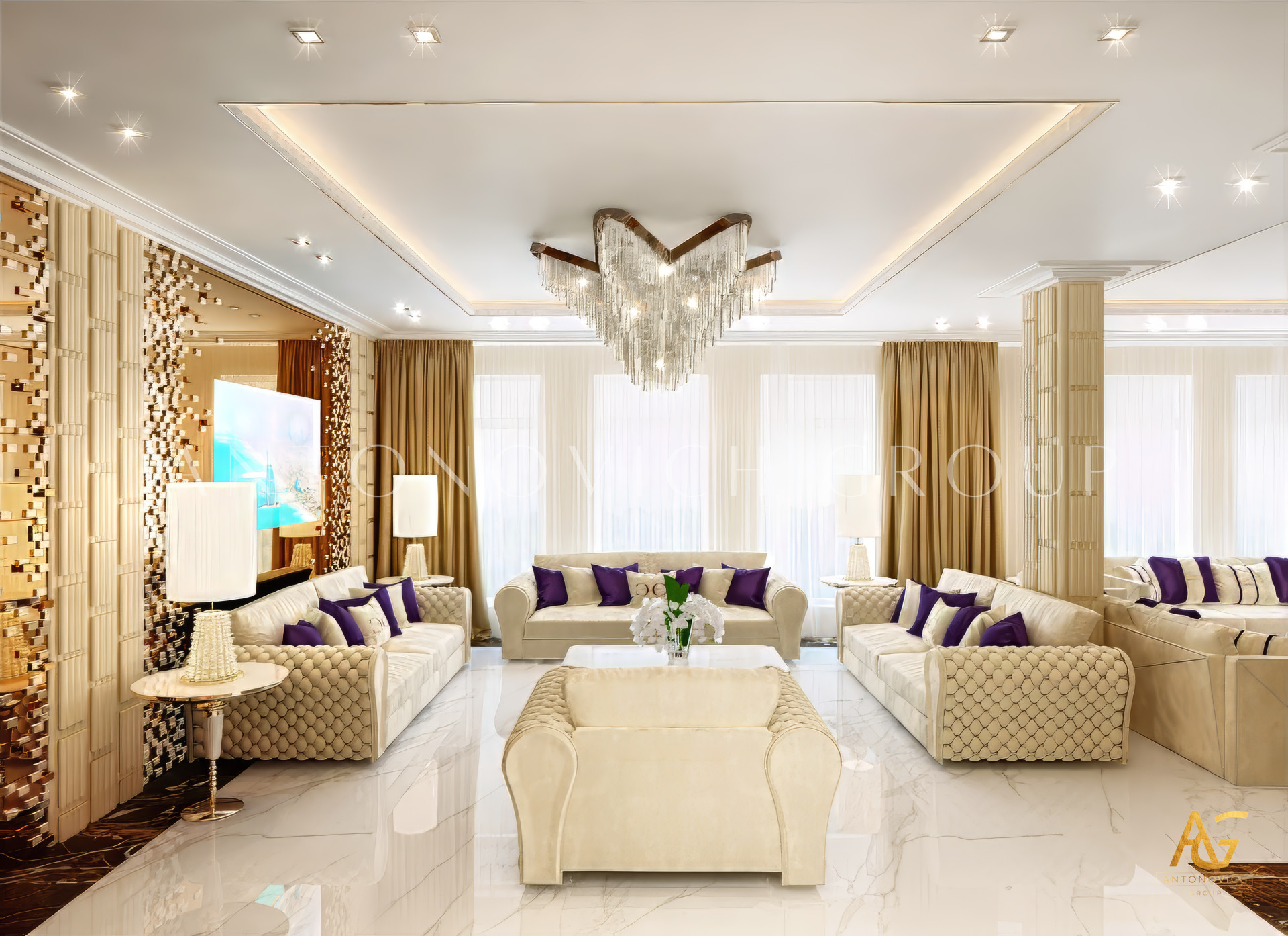 Each project is highly personalized. Whether the goal is to create a cozy retreat for everyday living or a more formal space for receptions, Antonovich Group tailors every detail to match the client’s lifestyle and cultural preferences.
