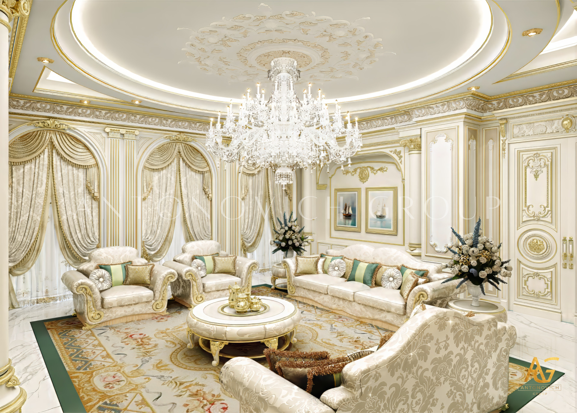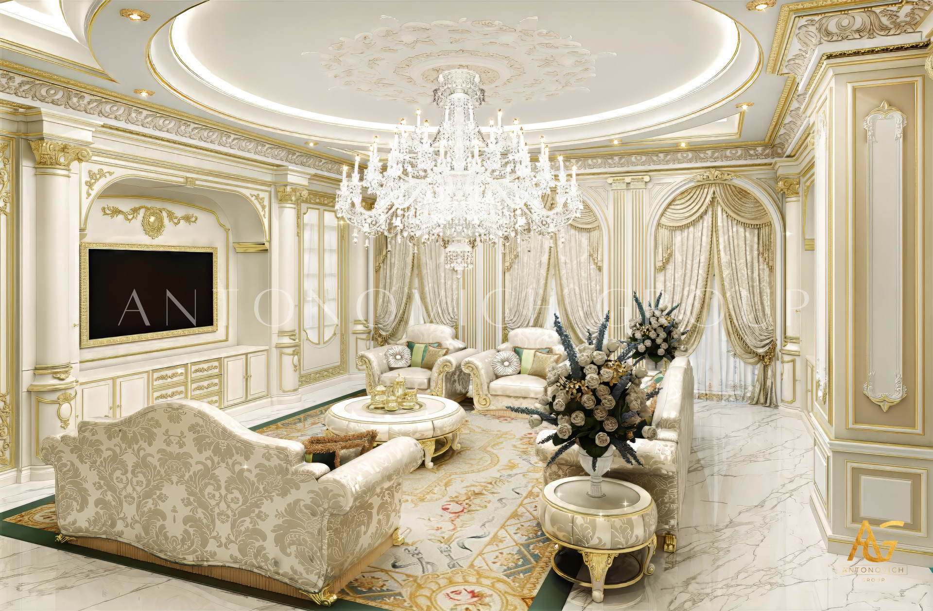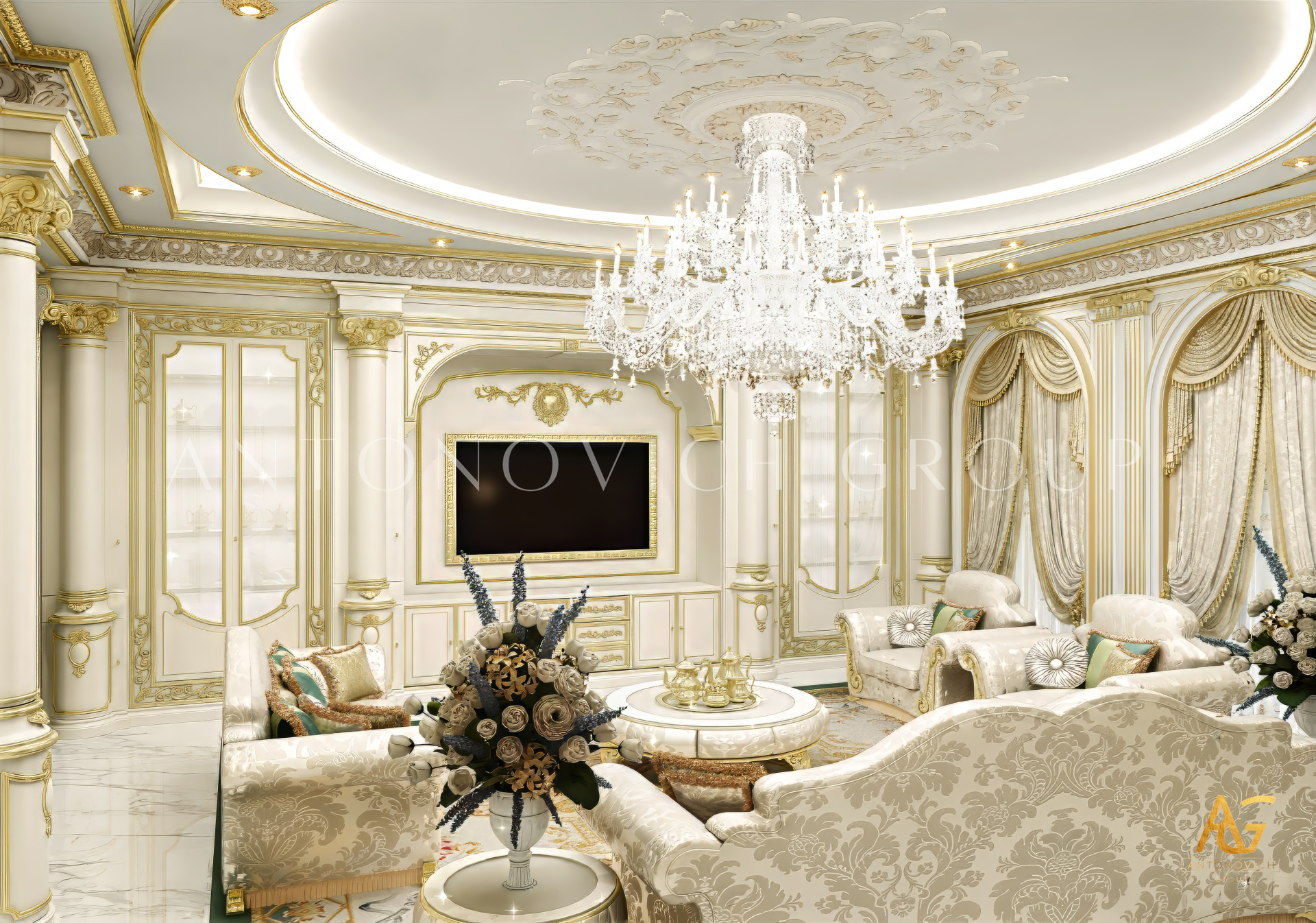 The stunning and luxurious living room interior design creates a relaxing atmosphere throughout the space. The gold design of the room is one-of-a-kind, and it is ideal for any luxury metropolis, where its magnificent hue will undoubtedly elevate your lifestyle. Dark-colored themes are frequently overlooked. The new living room in this magnificent luxury living room interior design by Antonovich Group, on the other hand, is unmistakably unique. This room is ideal for any bachelor. At first glance, the lovely hue and contrasting colors create a really pleasing impression.