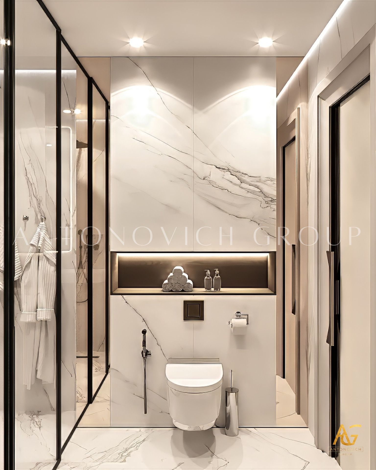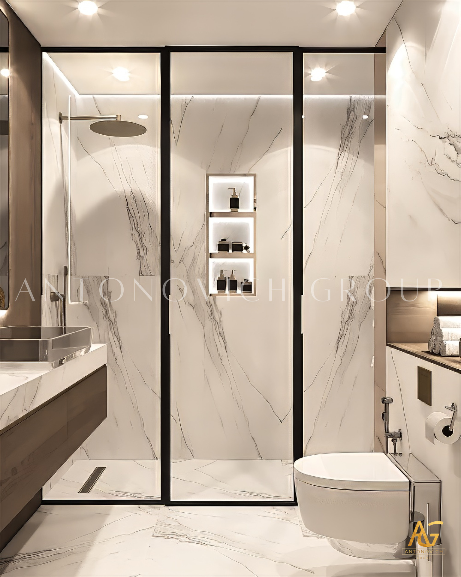 Beyond exceptional design, Antonovich Group is renowned for its turnkey fit-out and installation services. Skilled craftsmen and technical experts ensure that every tile, fixture, and fitting is installed with precision. The result is a flawless, ready-to-use bathroom that reflects the group’s uncompromising commitment to quality.