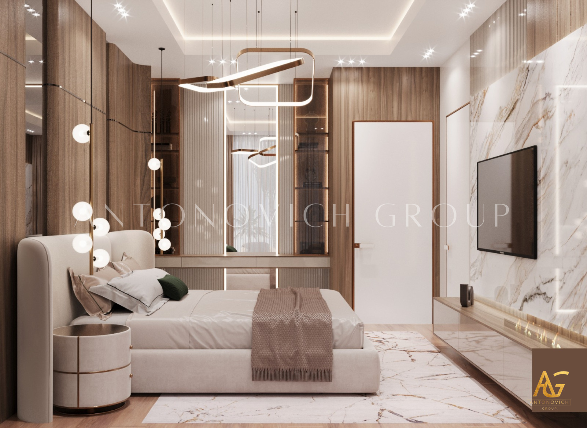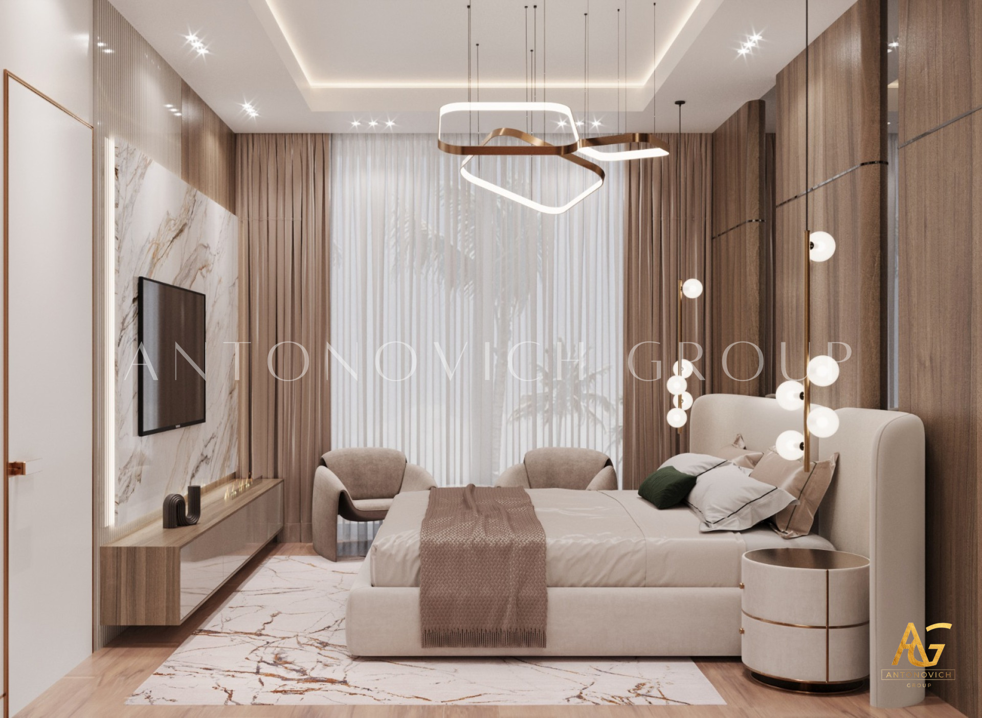 The luxury interior design is also highly elegant, making them ideal for a mansion. The bedroom has a distinct personality. The illuminated chandelier is both elegant and striking. Its ideal for a luxurious interior design. The luxurious bedroom interior design has a calming feel to it with a hint of sophistication. All of the patterns are one-of-a-kind, and Luxury Antonovich Design created them with a lot of love and care.