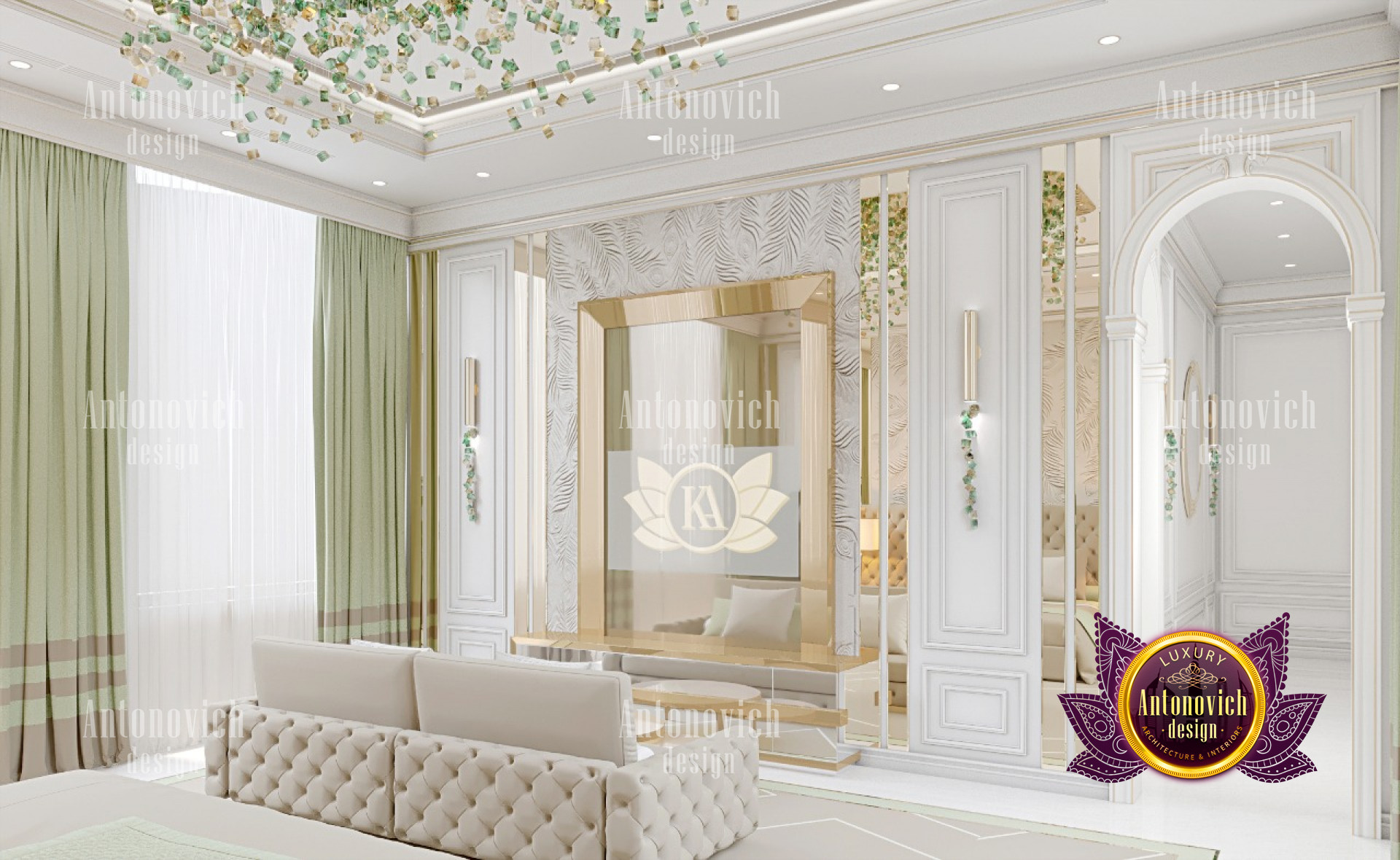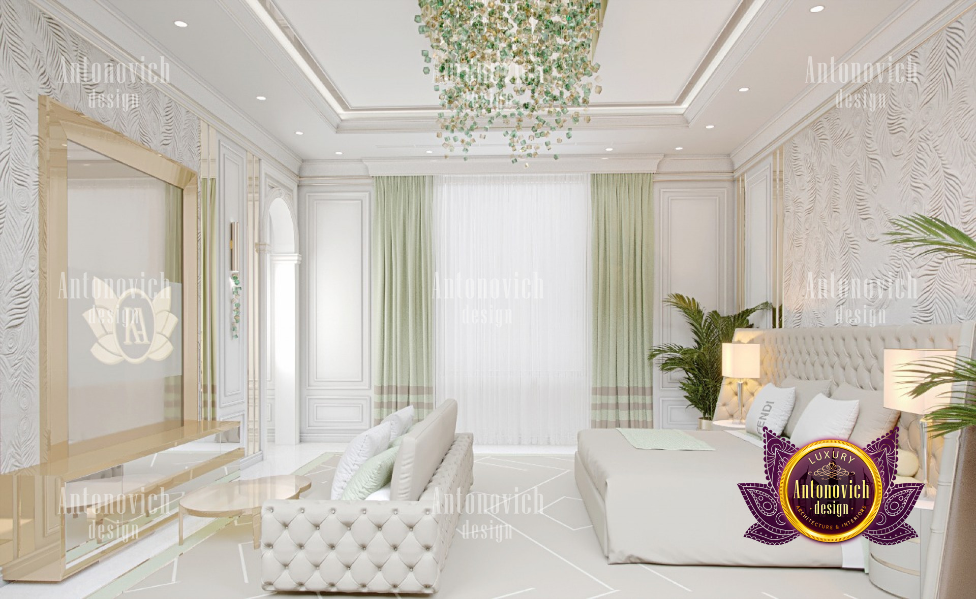 Luxury Antonovich Design is the top interior design company in UAE that always assures to bring out the best interior design executions towards every expensive villa design. And one of the most important areas of every luxurious villa is the bedrooms. Performing the design execution for the bedrooms requires a very systematic procedure from the space scheming, in this stage, the bedroom interior design will achieve the most functional and perfect balance in the interior design setting. Being the top interior design company UAE, Luxury Antonovich Design always assures to execute the highest level of interior design developments to be able to achieve the most desirable interior setting. This gentle bedroom design is ideally having a perfect form of comfort and coziness to boost the relaxation in every stay of the owner. With a great combination of very calm hues, from white, light green, and beige, this bedroom has indeed achieved greatness in style with aesthetic perfection.