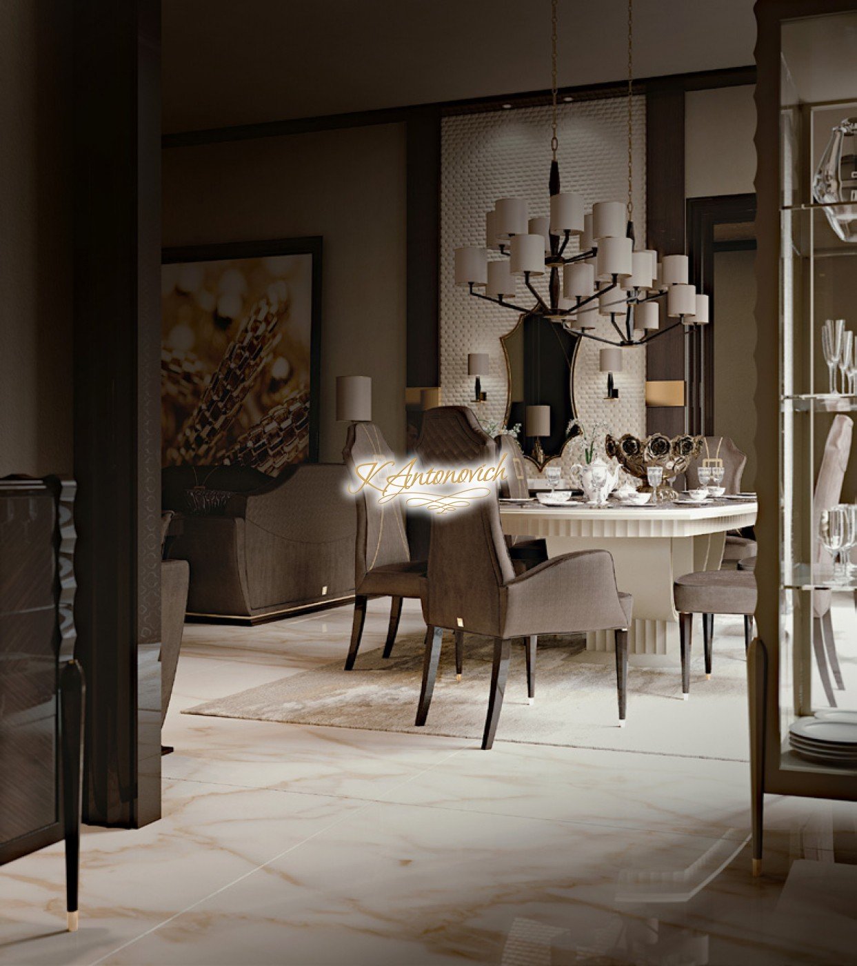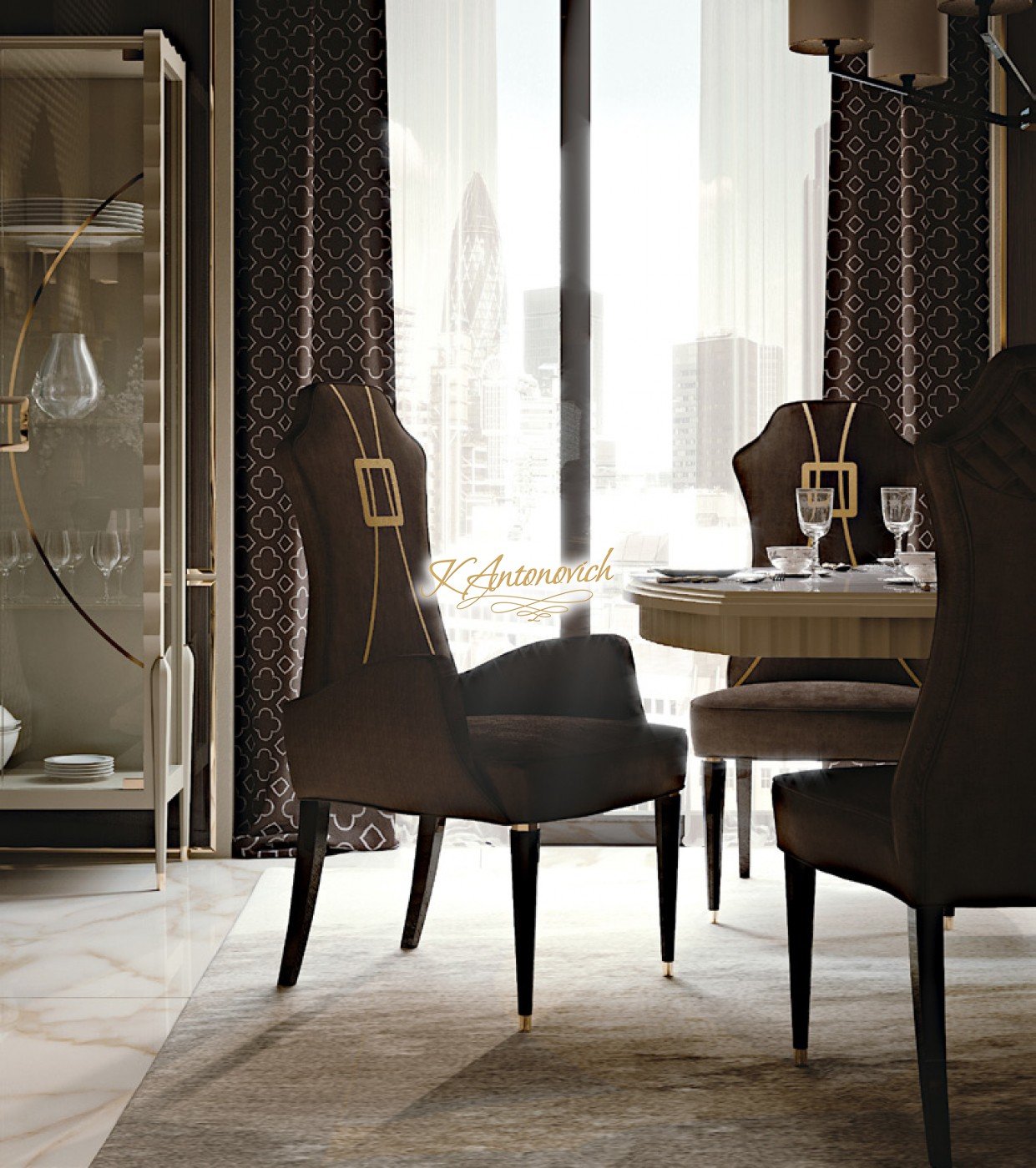 Interior room is a collection of furniture and decorative elements, united by one idea. The main thing is the design and look of table and chairs. These in turn should be in harmony with all the surrounding objects, and at the same time to bring something special to the atmosphere. Luxury Antonovich Design Centre offers customers to choose the chairs for the living room by all the rules of style.