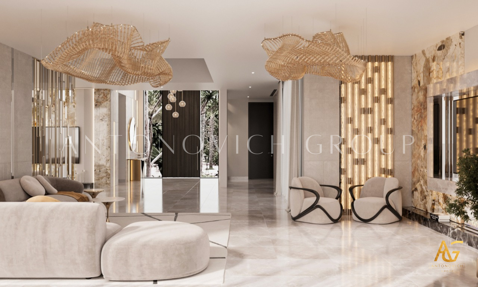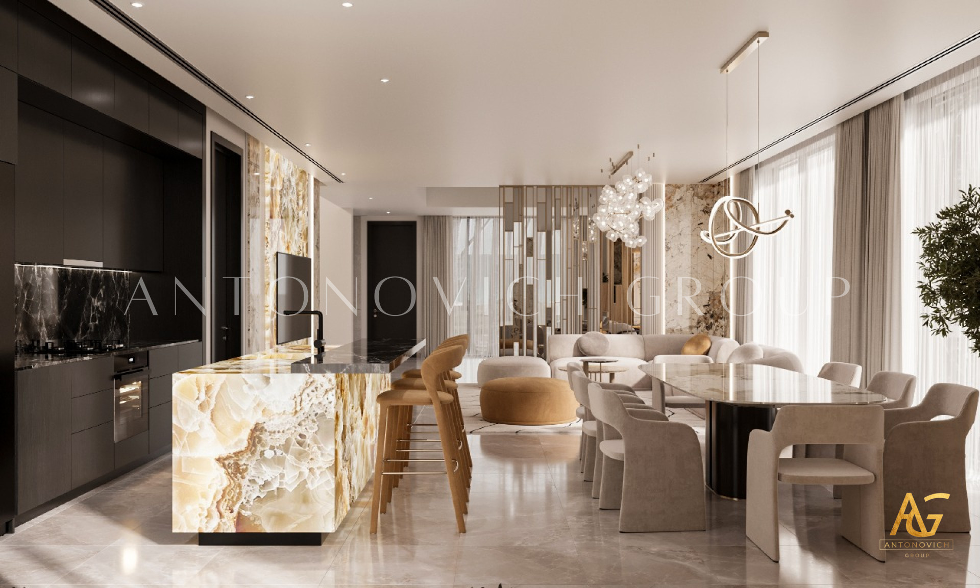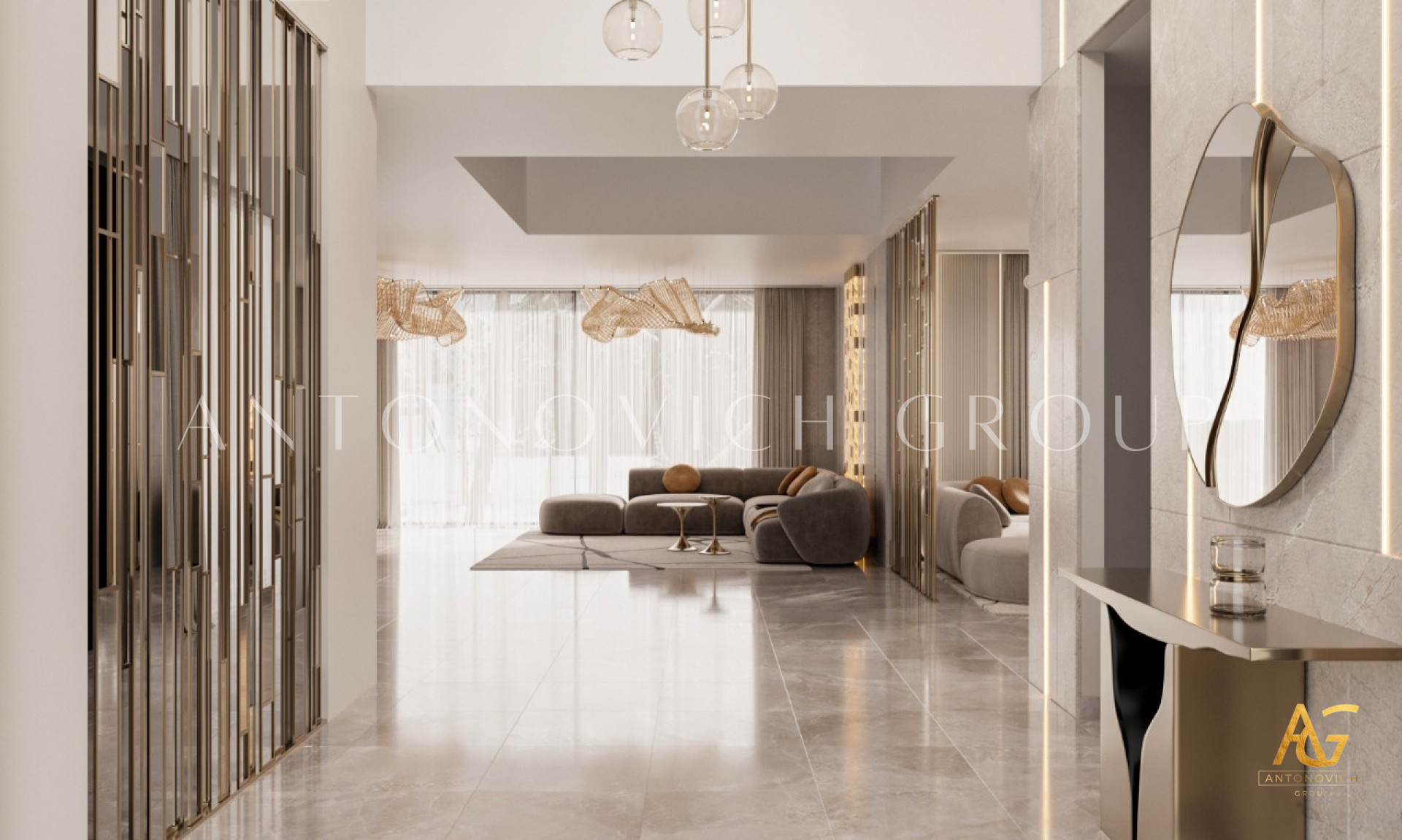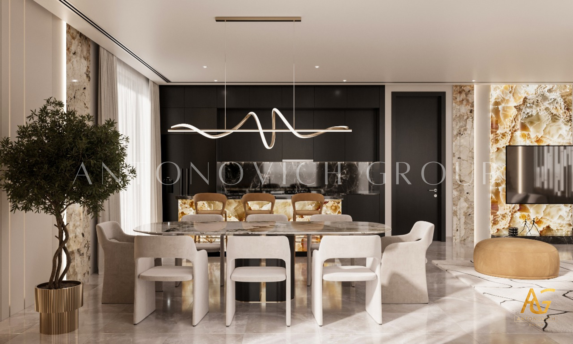Antonovich Group provides end-to-end solutions, beginning with concept development and space planning. Our professional interior designers carefully study each client’s lifestyle and requirements to create layouts that maximize comfort and functionality. We then integrate luxury design elements, bespoke furniture, decorative lighting, and unique color palettes to achieve a timeless yet modern living room design.