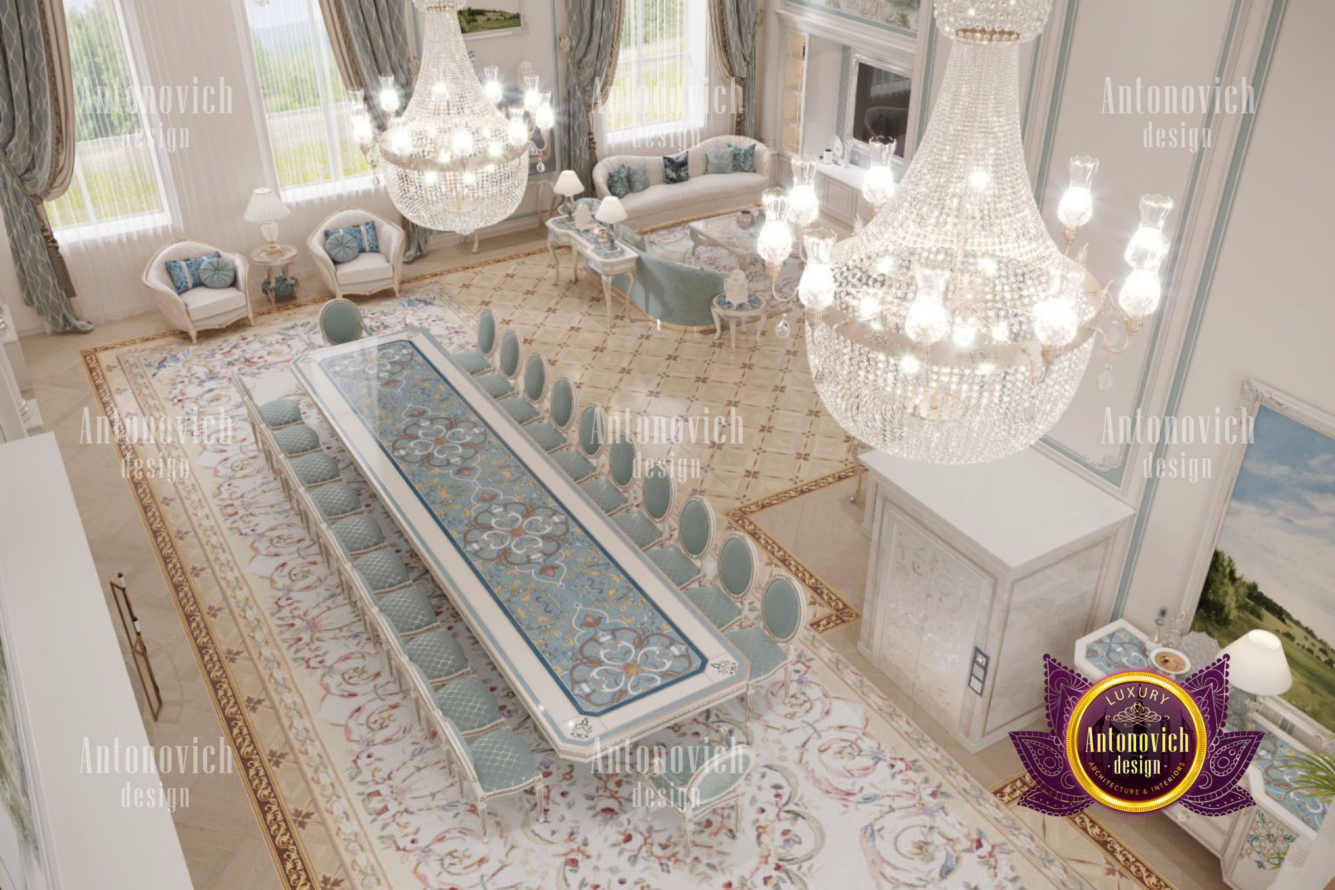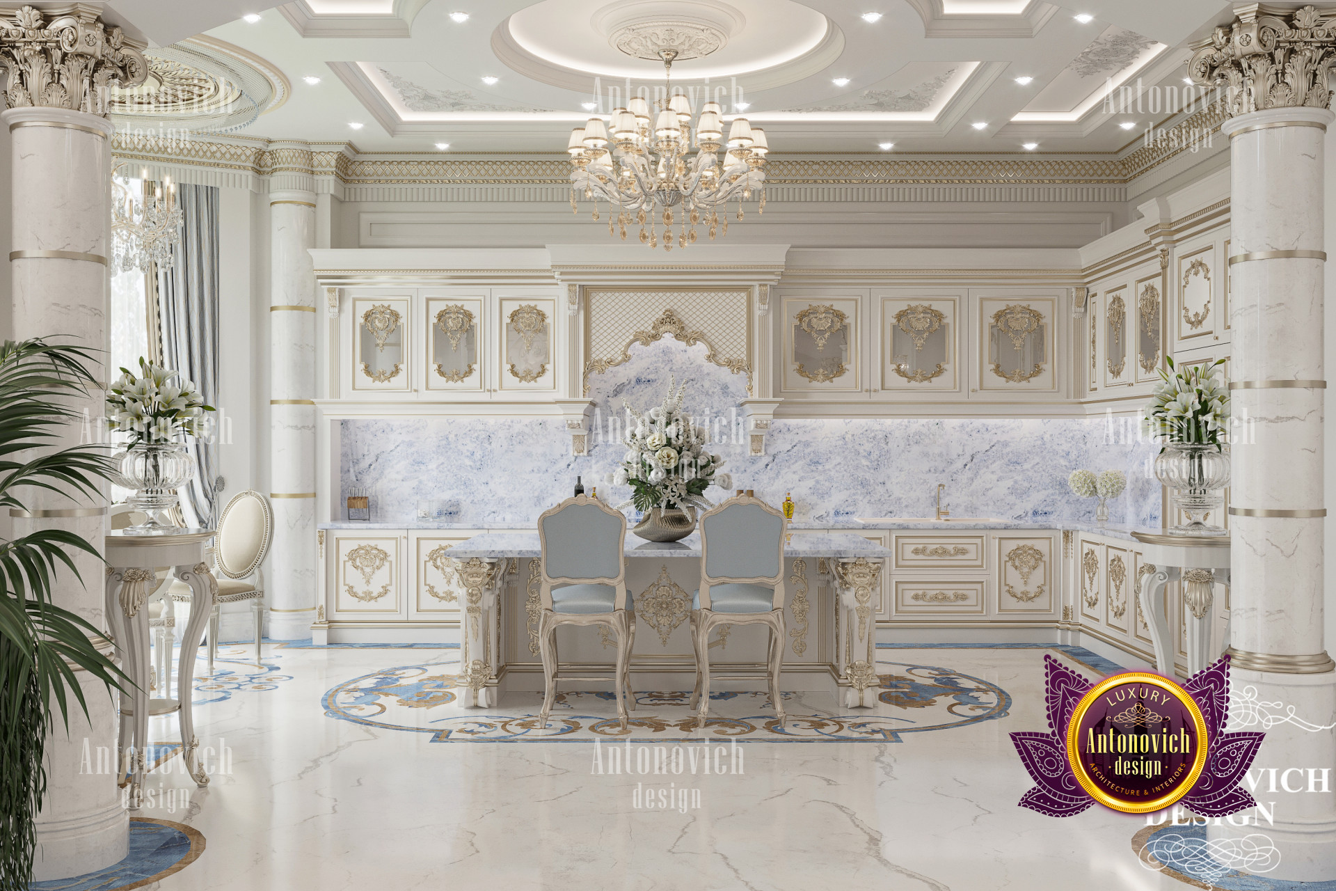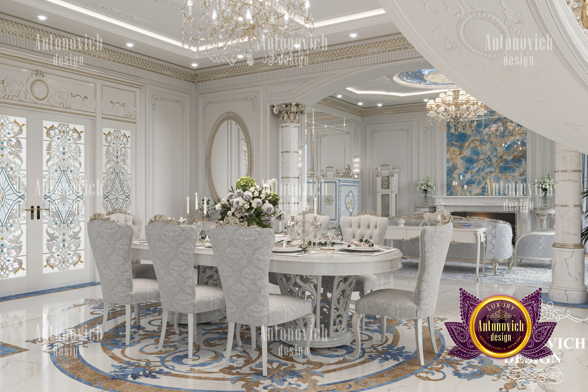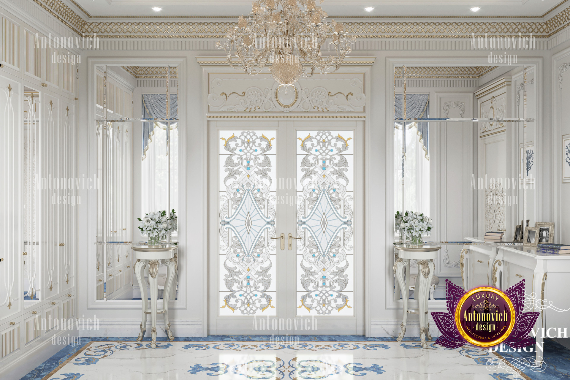 The luxury villa in Kazakhstan has a gorgeous interior design that was meticulously planned by Luxury Antonovich Design, and much consideration went into constructing this work of beauty. This mansion, perched on a magnificent design, takes in the breathtaking views of the lush classic setting. This property oozes classic grandeur with its large patterned doors and windows, white walls, and lush living room area. The attractive luxury villa in Kazakhstan with a sofa and soothing couch is the houses major attraction. The luxury villa in Kazakhstan has a large area packed with luxury things, which is a must-have for luxury homes. Everything about the place, from the beautifully built living room area to the European-themed interiors, dramatic accent lights, and massive layout and design, screams luxury villa in Kazakhstan. A trendy Crystal Chandelier catches your eye as you enter the living room. The luxury villa in Kazakhstan has a high ceiling to give it more space and beauty. The luxury villa in Kazakhstans interior design has been designed to bring luxury ambiance.