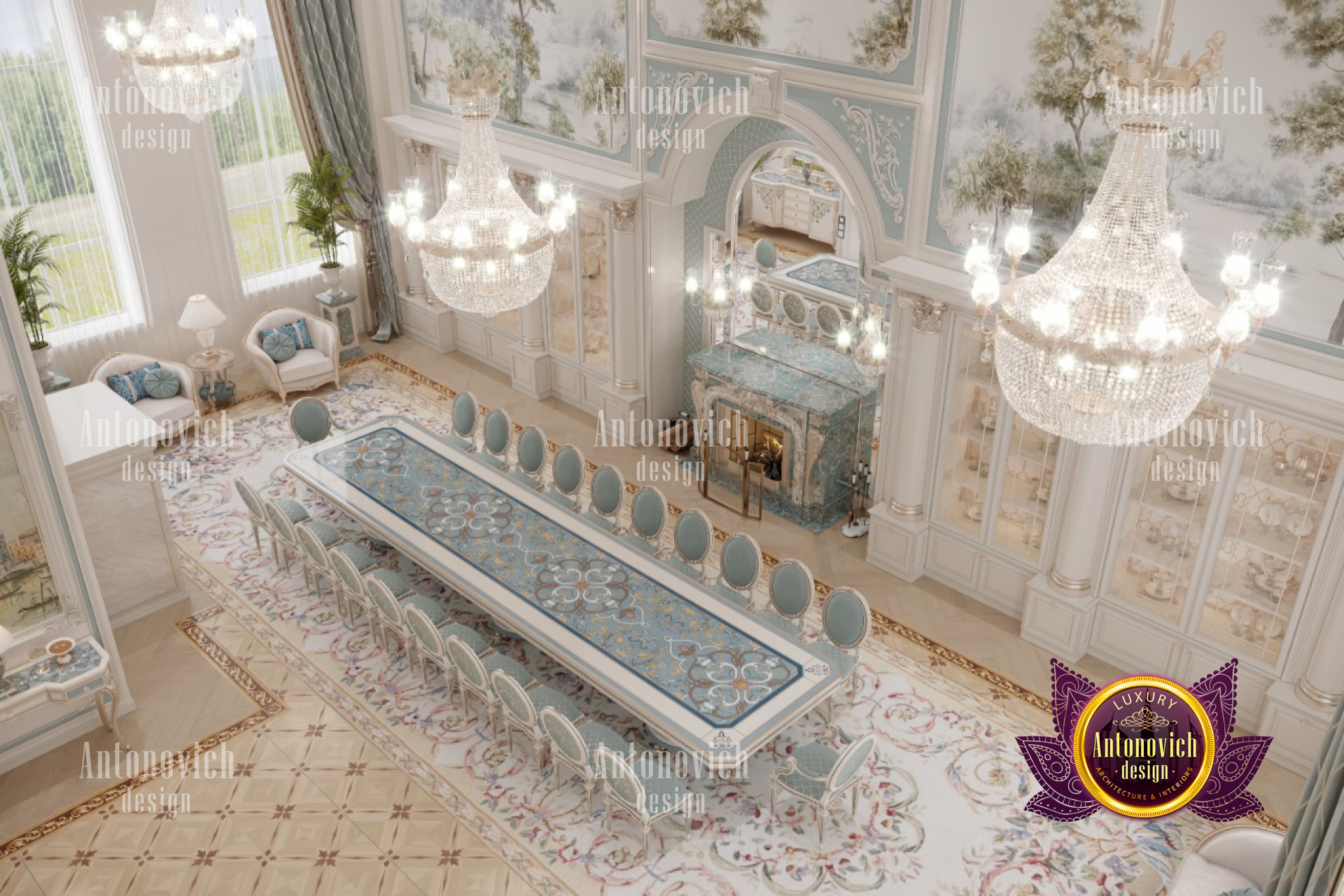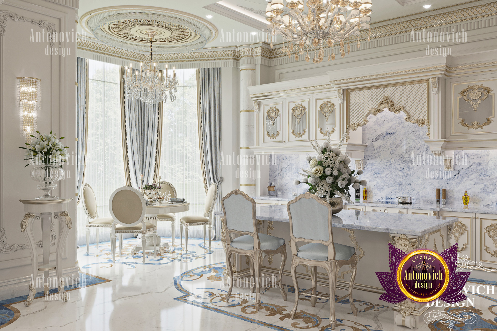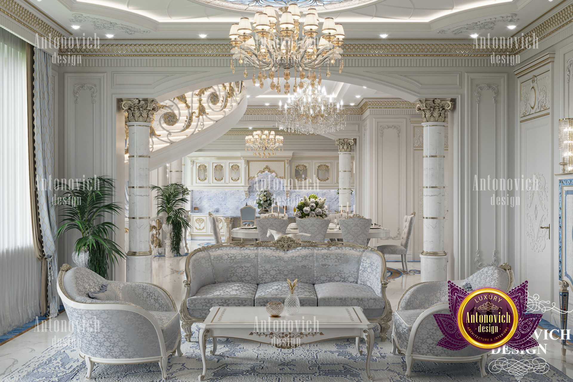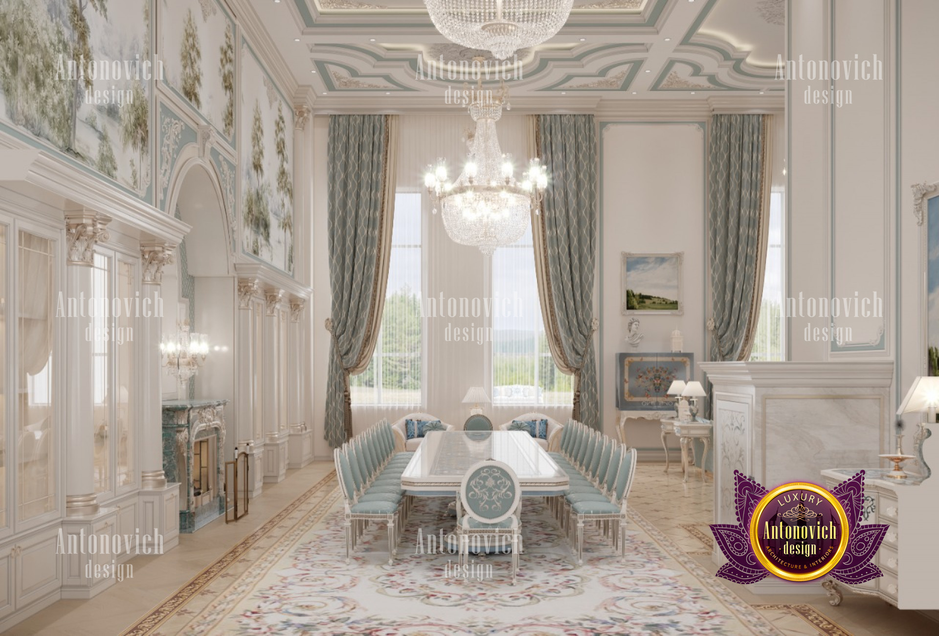 The luxury villa in Kazakhstan has a gorgeous interior design that was meticulously planned by Luxury Antonovich Design, and much consideration went into constructing this work of beauty. This mansion, perched on a magnificent design, takes in the breathtaking views of the lush classic setting. This property oozes classic grandeur with its large patterned doors and windows, white walls, and lush living room area. The attractive luxury villa in Kazakhstan with a sofa and soothing couch is the houses major attraction. The luxury villa in Kazakhstan has a large area packed with luxury things, which is a must-have for luxury homes. Everything about the place, from the beautifully built living room area to the European-themed interiors, dramatic accent lights, and massive layout and design, screams luxury villa in Kazakhstan. A trendy Crystal Chandelier catches your eye as you enter the living room. The luxury villa in Kazakhstan has a high ceiling to give it more space and beauty. The luxury villa in Kazakhstans interior design has been designed to bring luxury ambiance.