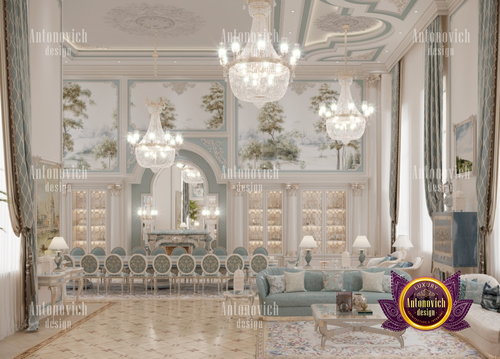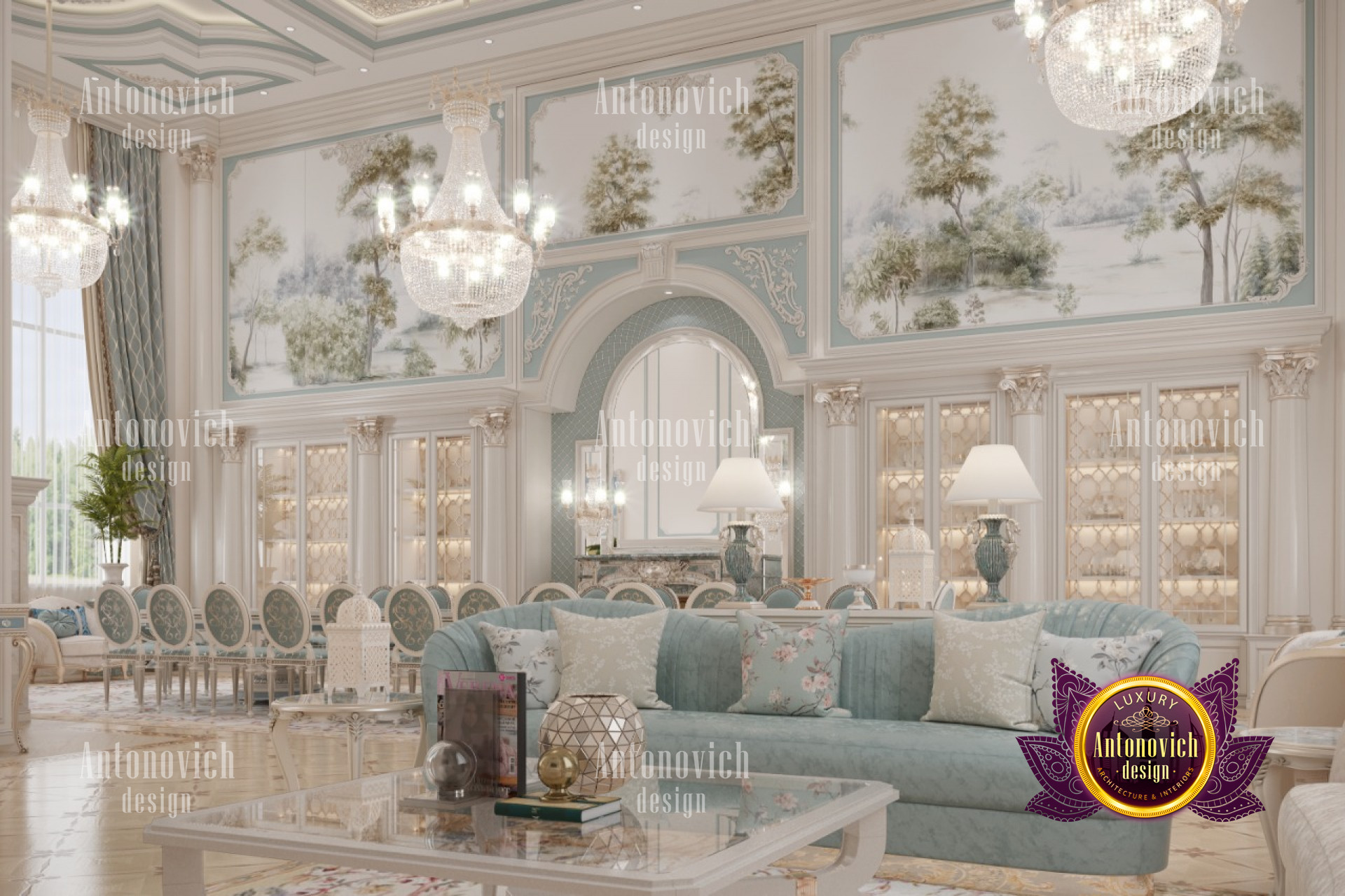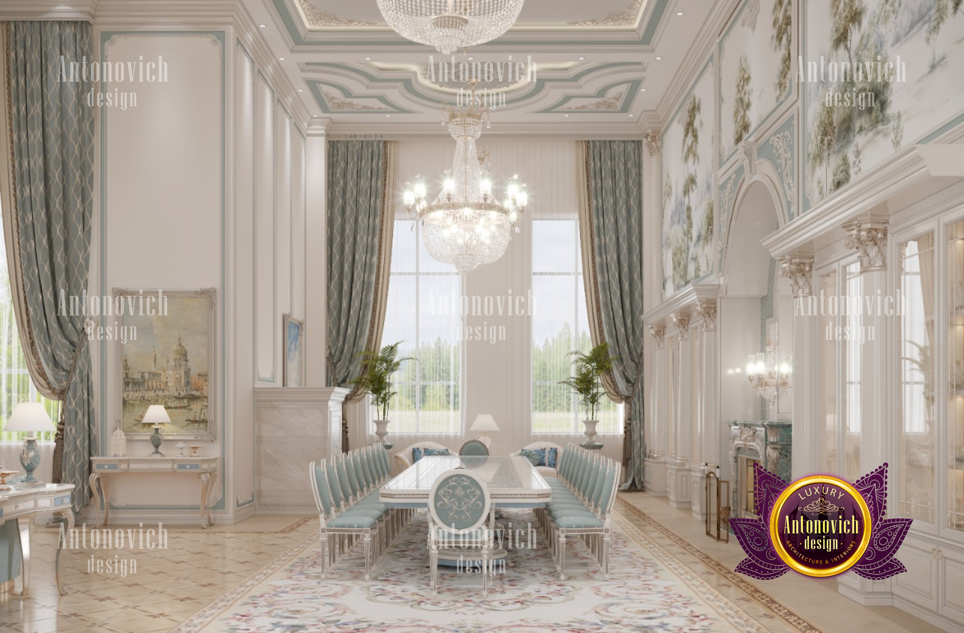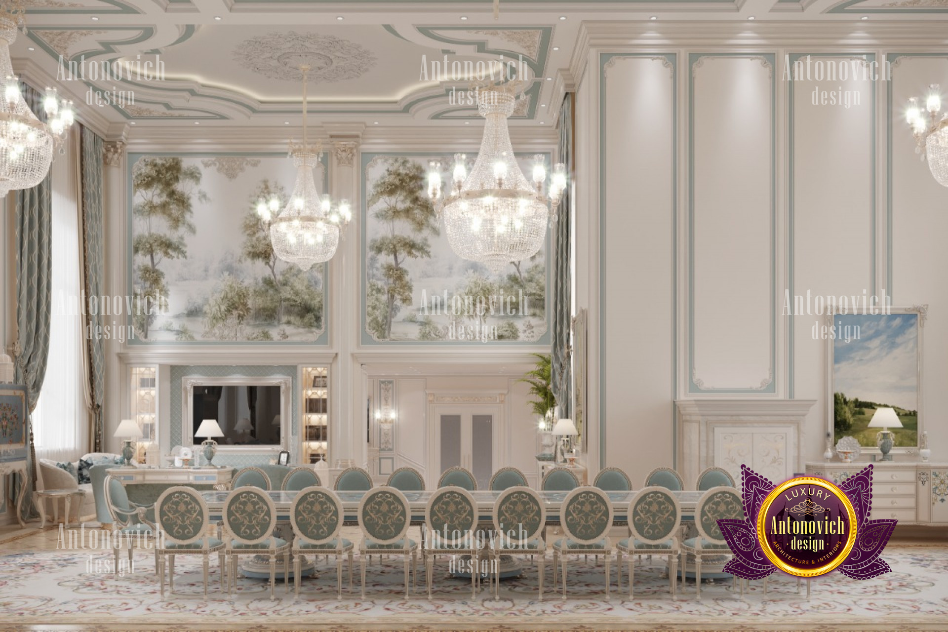 The luxury villa in Kazakhstan has a gorgeous interior design that was meticulously planned by Luxury Antonovich Design, and much consideration went into constructing this work of beauty. This mansion, perched on a magnificent design, takes in the breathtaking views of the lush classic setting. This property oozes classic grandeur with its large patterned doors and windows, white walls, and lush living room area. The attractive luxury villa in Kazakhstan with a sofa and soothing couch is the houses major attraction. The luxury villa in Kazakhstan has a large area packed with luxury things, which is a must-have for luxury homes. Everything about the place, from the beautifully built living room area to the European-themed interiors, dramatic accent lights, and massive layout and design, screams luxury villa in Kazakhstan. A trendy Crystal Chandelier catches your eye as you enter the living room. The luxury villa in Kazakhstan has a high ceiling to give it more space and beauty. The luxury villa in Kazakhstans interior design has been designed to bring luxury ambiance.