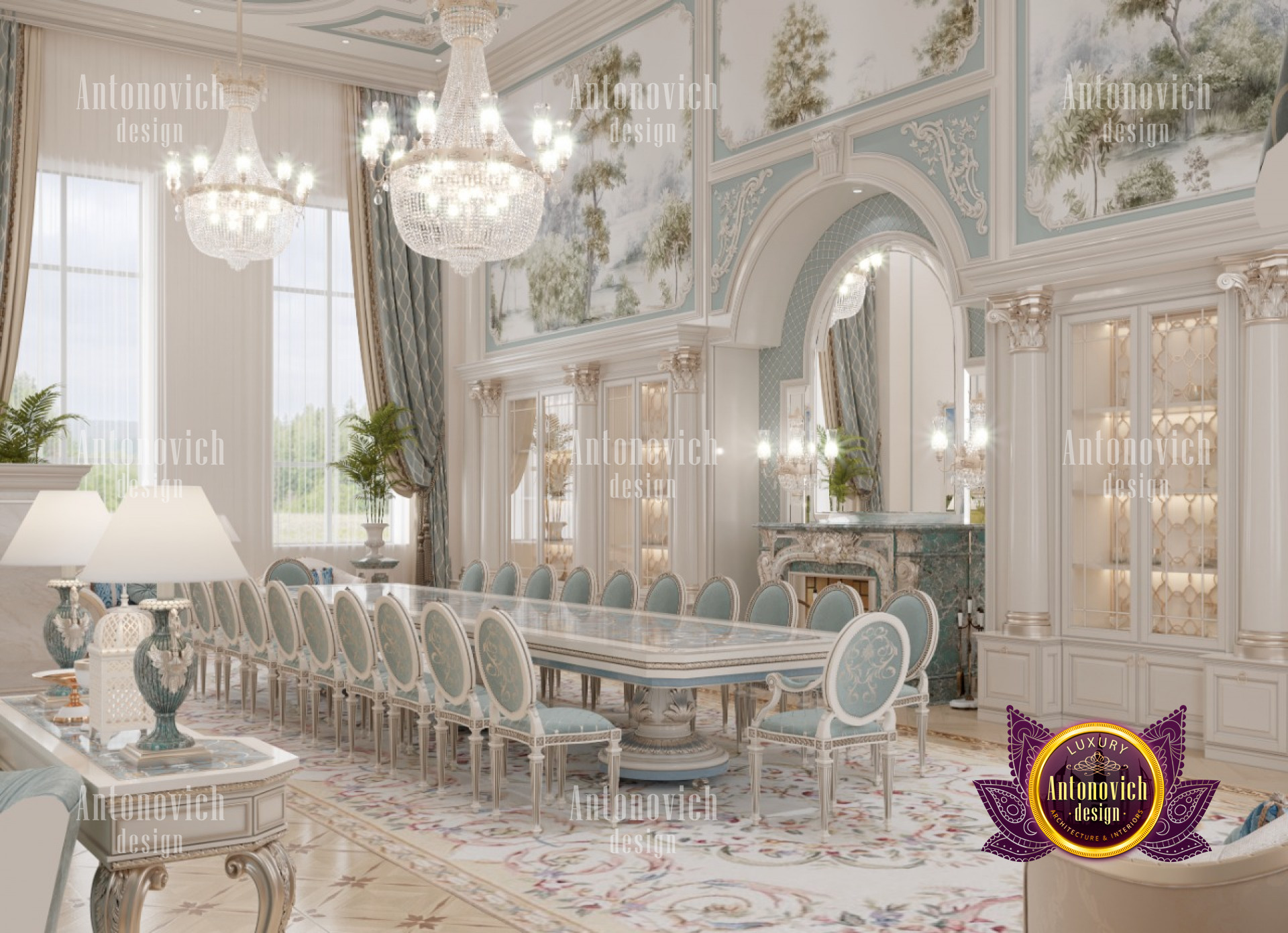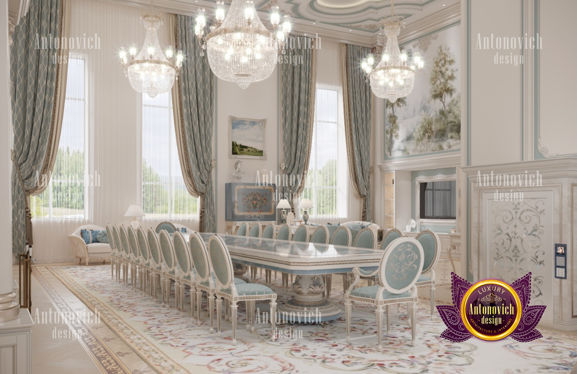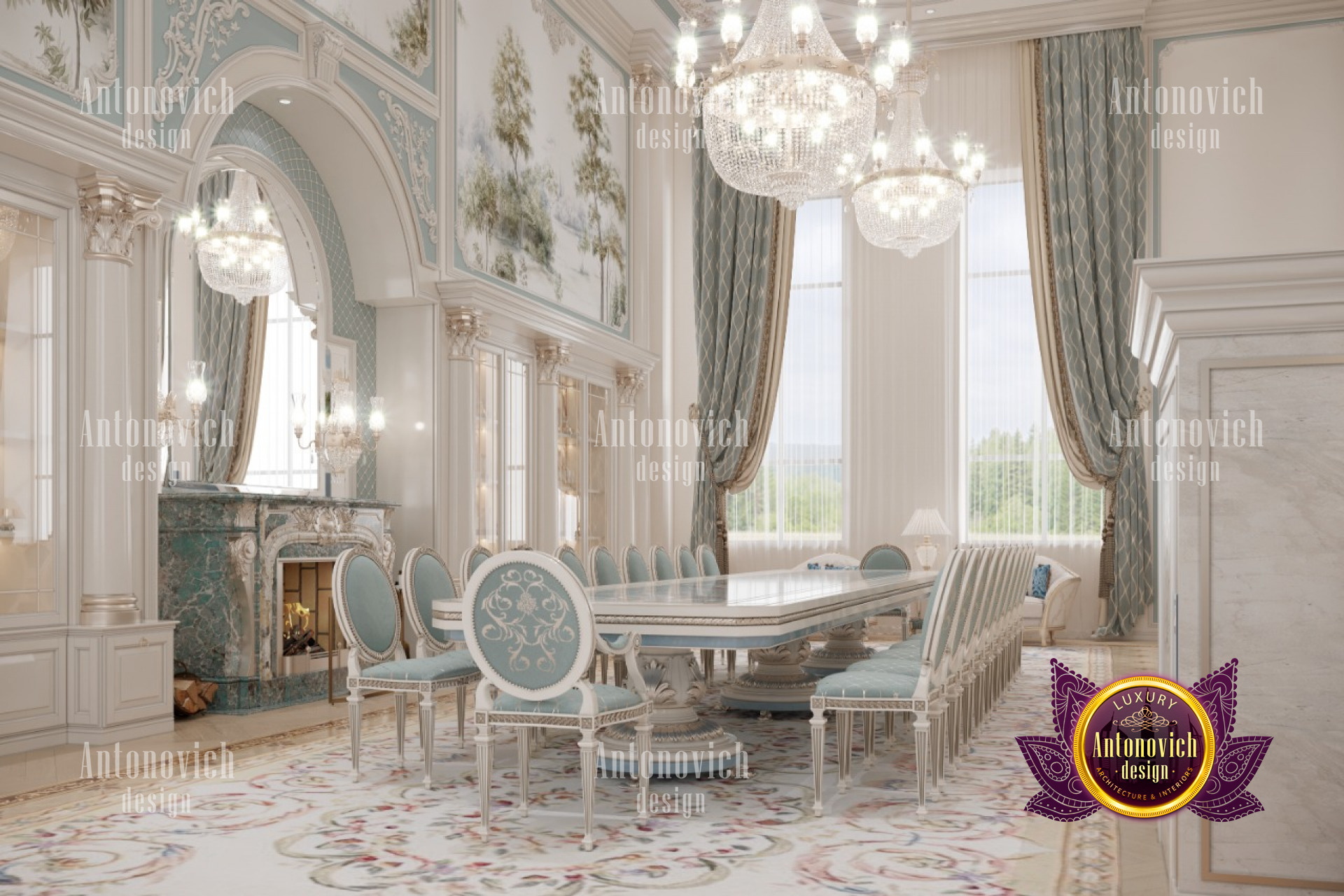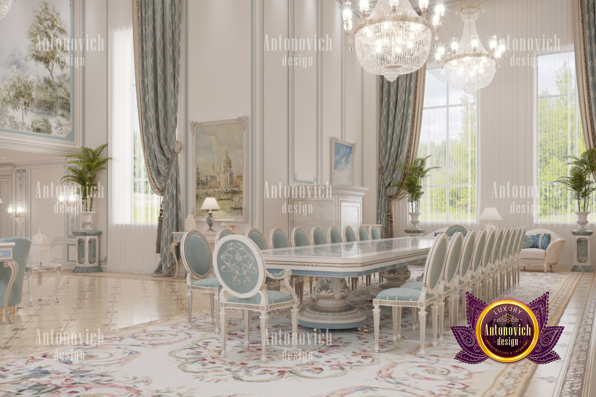 The luxury villa in Kazakhstan has a gorgeous interior design that was meticulously planned by Luxury Antonovich Design, and much consideration went into constructing this work of beauty. This mansion, perched on a magnificent design, takes in the breathtaking views of the lush classic setting. This property oozes classic grandeur with its large patterned doors and windows, white walls, and lush living room area. The attractive luxury villa in Kazakhstan with a sofa and soothing couch is the houses major attraction. The luxury villa in Kazakhstan has a large area packed with luxury things, which is a must-have for luxury homes. Everything about the place, from the beautifully built living room area to the European-themed interiors, dramatic accent lights, and massive layout and design, screams luxury villa in Kazakhstan. A trendy Crystal Chandelier catches your eye as you enter the living room. The luxury villa in Kazakhstan has a high ceiling to give it more space and beauty. The luxury villa in Kazakhstans interior design has been designed to bring luxury ambiance.