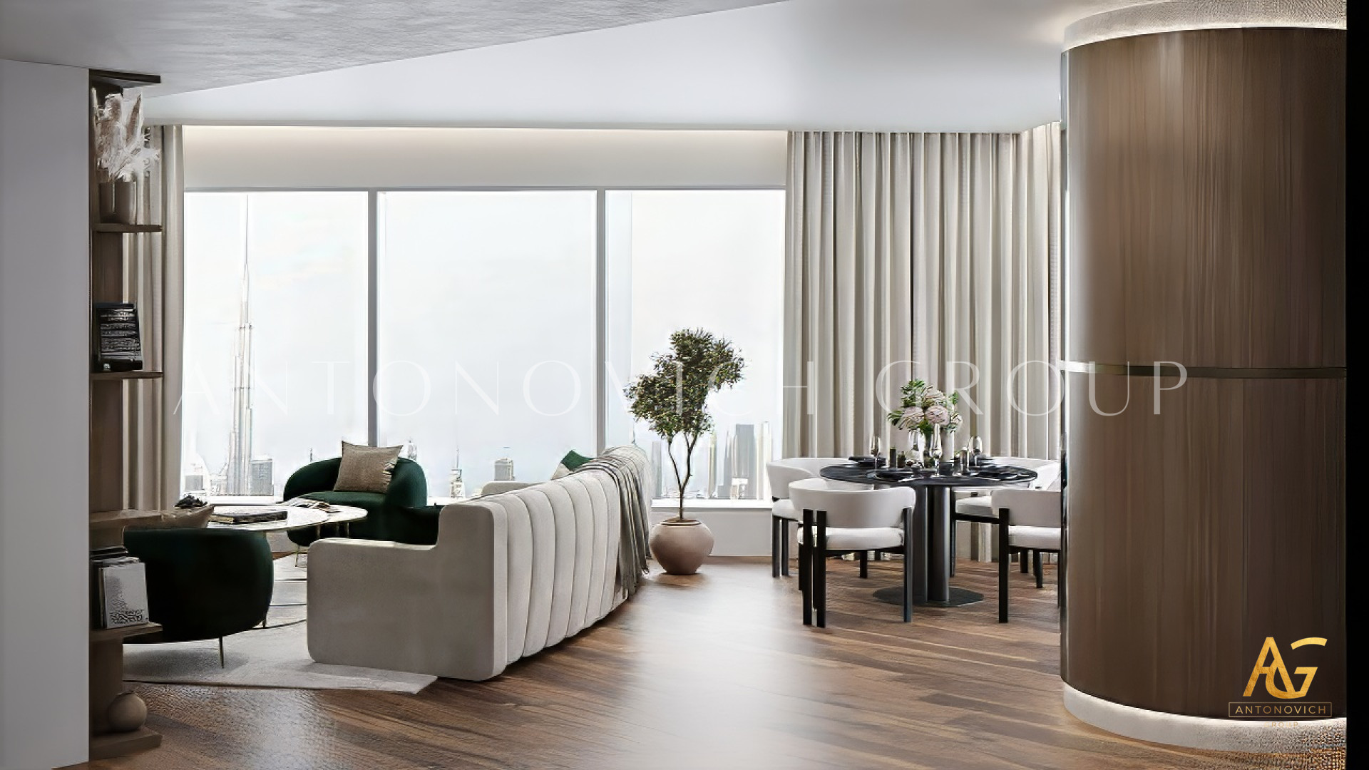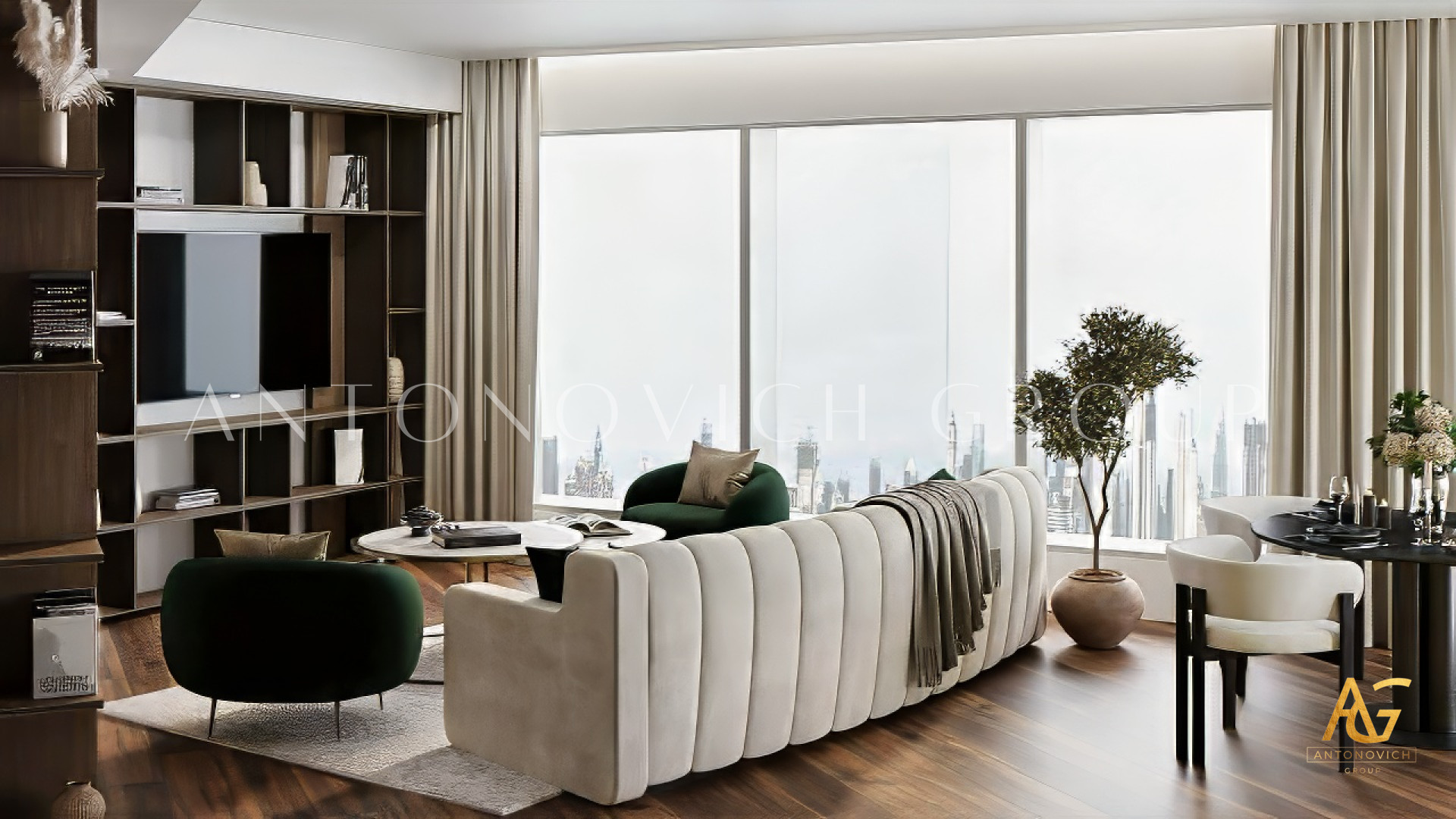 By managing every aspect of the fit-out process, Antonovich Group ensures consistency and quality, resulting in a living room that is both visually stunning and functionally cozy.