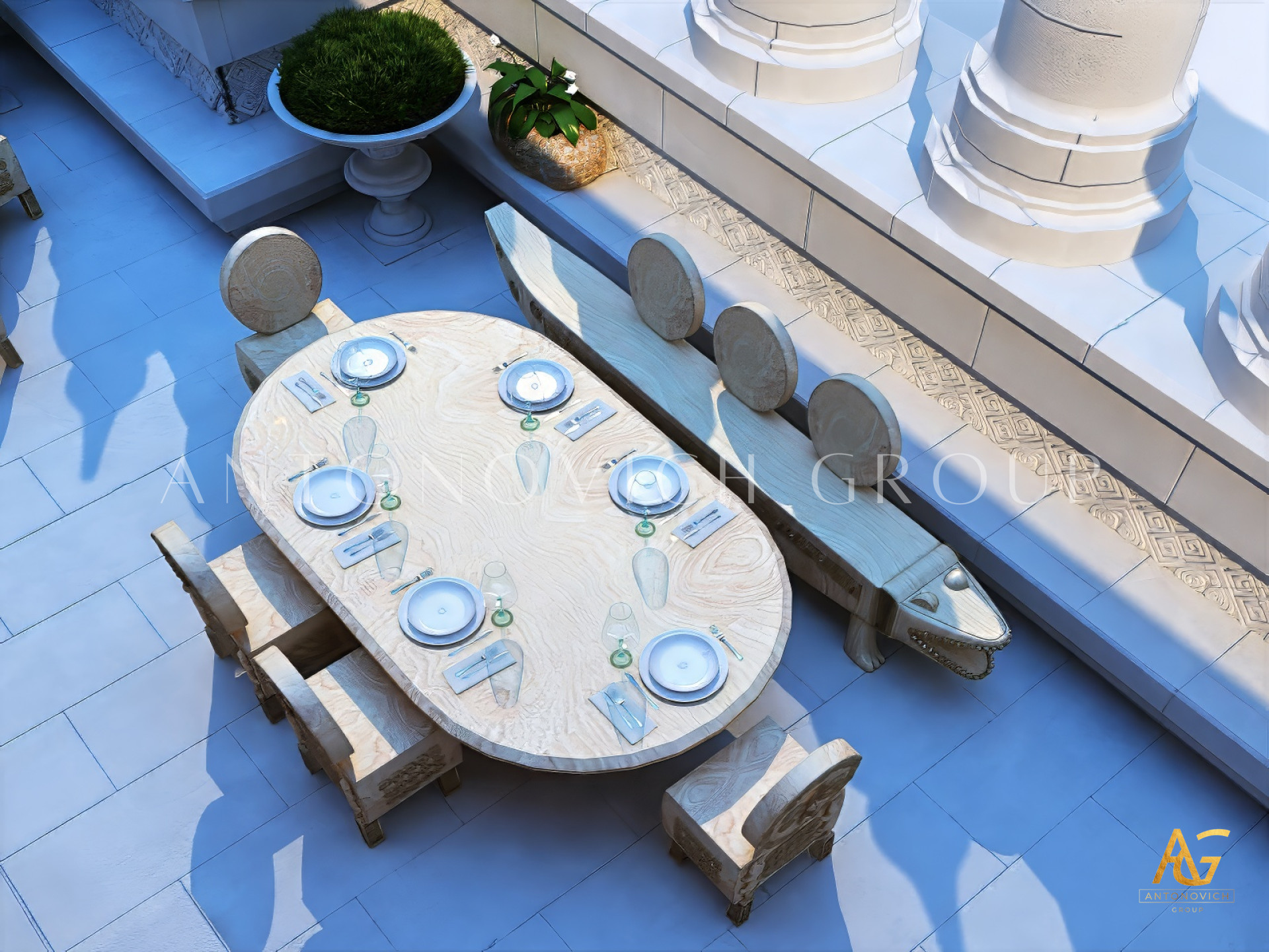 Antonovich Group operates its own manufacturing and joinery facility, where bespoke furniture and decorative pieces are handcrafted by skilled artisans. This allows for complete design customization — from luxurious dining tables and banquet chairs to decorative panels, lighting fixtures, and stage settings.