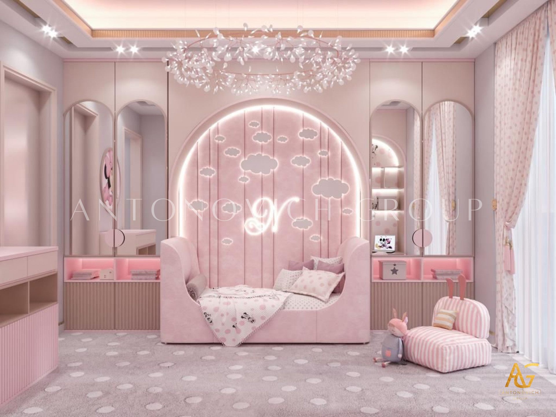 Achieve the most stylish and harmonious interior design for girls’ bedrooms as they deserve! As Luxury Antonovich Design will bring out the best interior mood with harmonious interior design and modern home décor for girls’ bedrooms. The idea is to inject a young vigor into the décor while keeping the utilitarian elements in mind. These ideas for kids room decorations from an interior firm in UAE will help you create a beautiful and functional hideaway where your child will enjoy spending time. Wallpaper, decals, and plain old paint and brush are all options for incorporating graphics into your childs room and interior design in UAE.