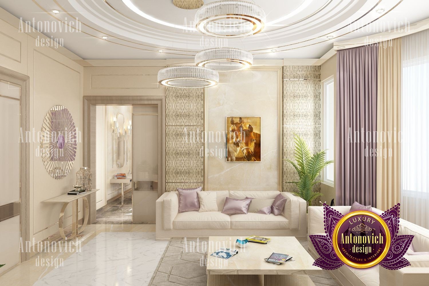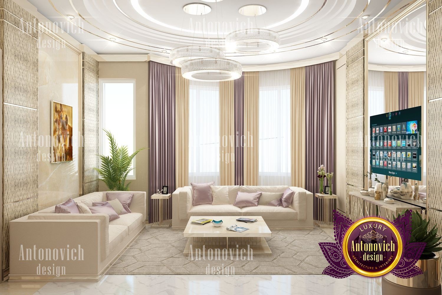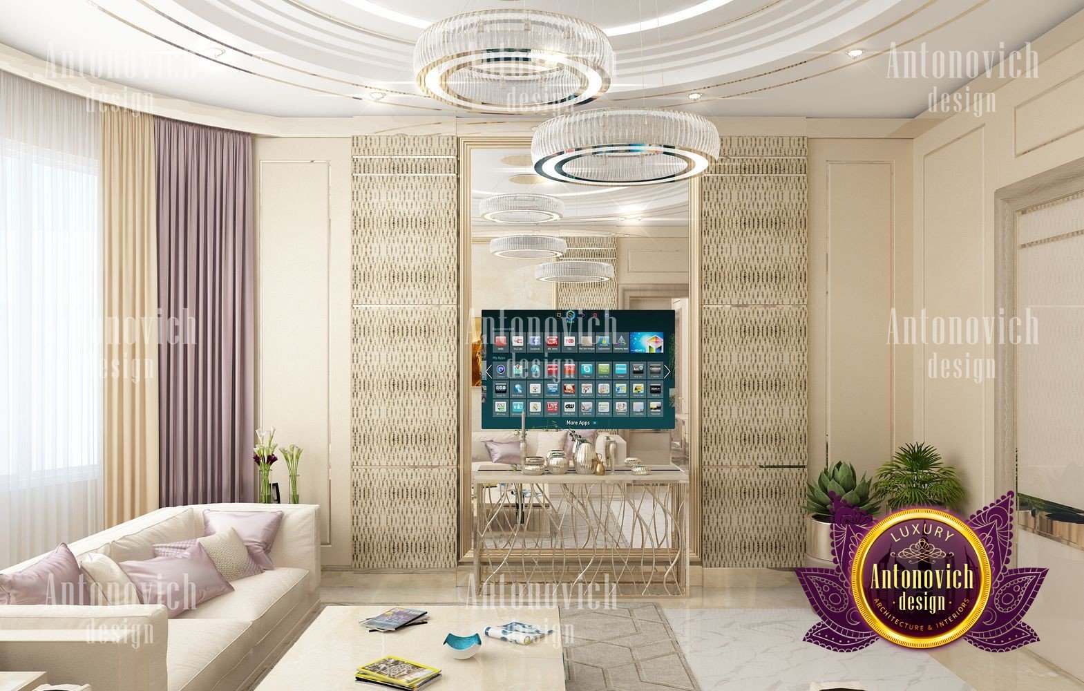 Sometimes working on a small apartment project is sometimes much more interesting and exciting than on a large apartment project. The whole reason is that in a small space it is necessary to apply all the design fantasy to place harmoniously decor items and furniture in such a way as to create exceptional comfort and harmony. In the interior of this small living room, the Antonovich Group created almost the charm of royal luxury. Elegant and noble classics acquired a special charm in this project. In this case, the room became homely and charming. A shallow niche on the ceiling is outlined by a line of soft LED lighting. The elegant crystal chandelier brings a sense of celebration to the living room interior. In the wall's decor, there is a wonderful combination of laconism and chic. Some walls are decorated with plaster in subdued gray tones. Against such a background, sconces, paintings, and items of elite furniture are impressive. The rest of the walls is decorated with elite silk wallpaper with damask ornaments. The most luxurious and bright part of the interior was a beautiful fireplace made of white marble. Complementing the warmth mood of the home is an elite parquet on the floor of light wood and a natural carpet. Upholstered furniture also decorates the interior wonderfully. The sofa and armchair are upholstered in dense silk in golden-cream shades. And the silken lilac cushions perfectly correspond with the decor of the windows, which are decorated with silk curtains. Fringe in the furnishing of furniture has become another cute accent of the luxurious and cozy interior of the living room.