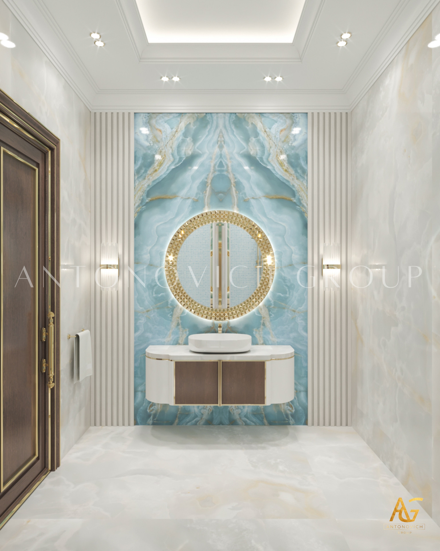 A hallmark of Antonovich Group’s work is its commitment to premium materials and artisanal craftsmanship. The company sources the finest Italian marble, onyx, natural wood, and bespoke textiles, ensuring that every element within the villa reflects uncompromised quality.