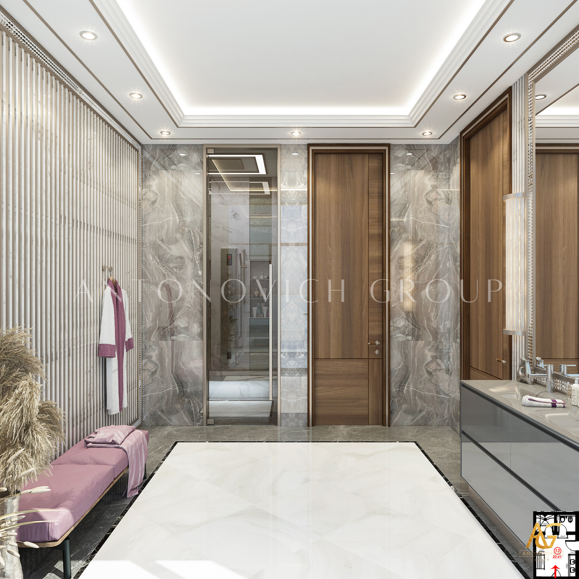 Antonovich Group also integrates sustainable design principles and cutting-edge technology into their bathroom concepts. Water-efficient fixtures, energy-saving lighting systems, and eco-friendly materials are incorporated without sacrificing style. These forward-thinking solutions ensure that the design not only enhances comfort but also contributes to a greener future.