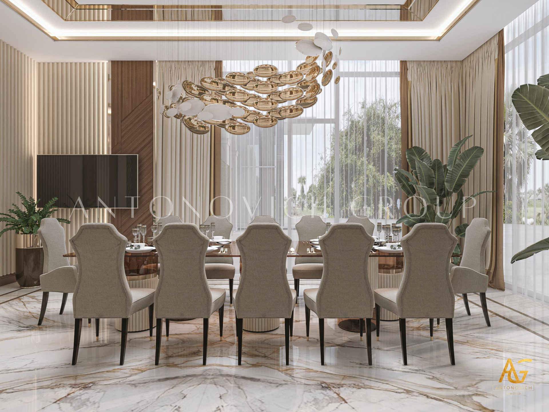 With an exceptional reputation in dining room fit-out in Dubai, Antonovich Group ensures that every project is executed to perfection. Their commitment to innovation, high-end materials, and exquisite craftsmanship makes them the preferred choice for luxury dining room interiors.