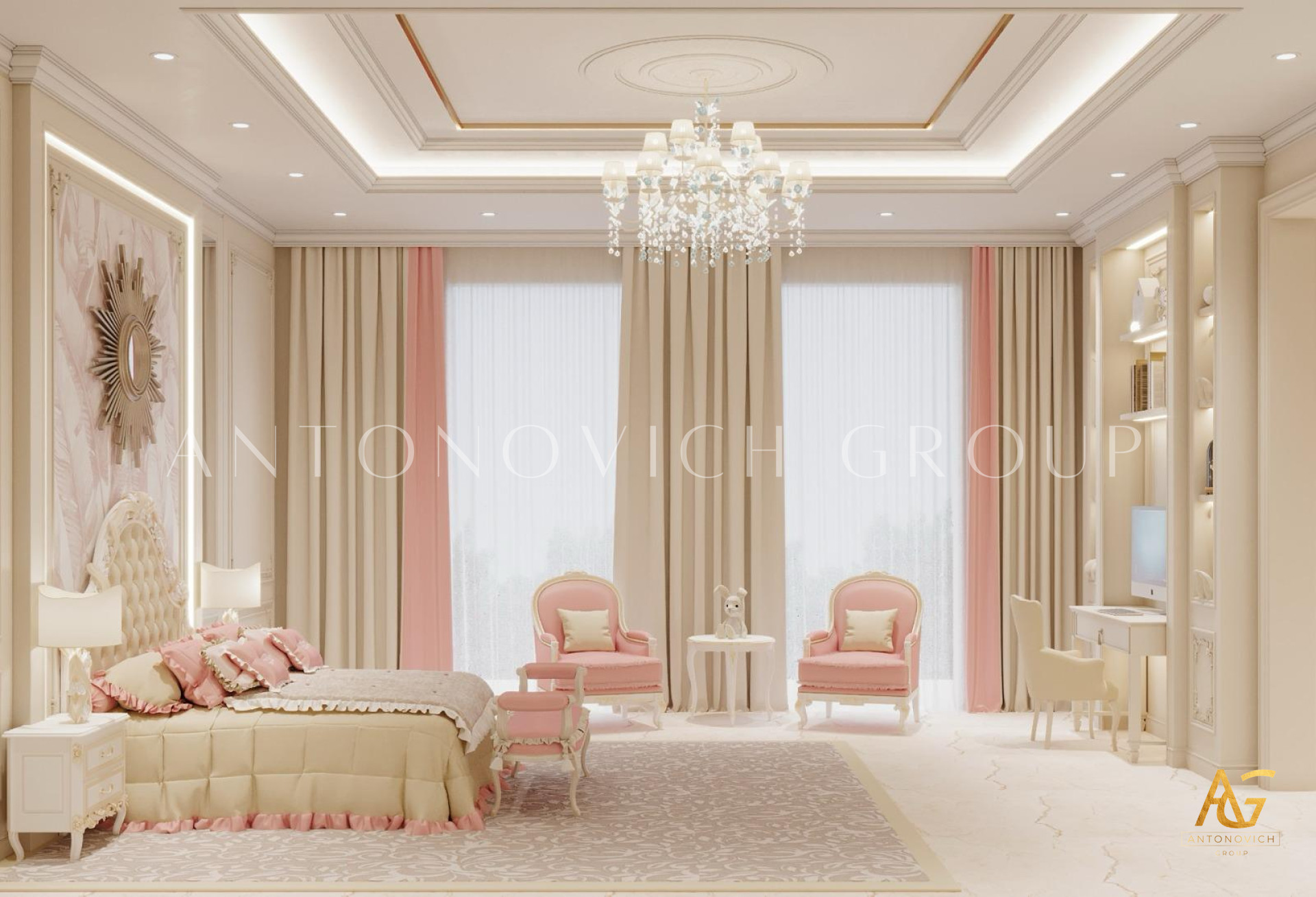 The interior design in the hotel room was very cozy, stylish and bright. This is one of the perfect examples of how luxurious modern style can be with an emphasis on minimalism. The interior is dominated by a pastel range of beige shades. This certain monochrome color palette is wonderfully diluted with accents of lighting, furniture, and decor. The decor of the walls is full of interesting ideas. The wall behind the headboards of the two beds was decorated with a decorative panel of genuine brown leather and a light beige hue. The panel is framed by a double white molding and a line of soft LED lighting. Vertical inserts of fine lines of polished stainless steel make this decor element even more interesting and expressive and also visually makes the height of the room higher. Continues the design of the walls panels of varnished natural wood. The windows in the room are decorated with modern blinds, which can be controlled using the remote control. Furniture in the interior became a laconic continuation of the walls decor. Lightly beige bedside tables gracefully fit in the interior. In the decor of the floors, light marble and a natural carpet are beautifully combined. Interior designers improvise with accents. Notice how beautifully the golden edging is combined in the decoration of the beds and the line of polished brass, which delineates the solid wood in the decoration of the walls. The simple design of the ceiling, which is covered with plain plaster and complemented by modern ceiling lights, very favorably shades the rest of the interior decor.