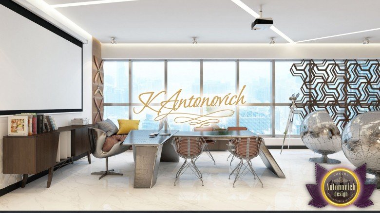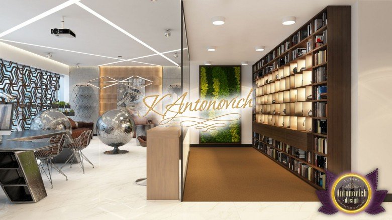 Very bright design of house with hints of passion suggested interior designers of studio Luxury Antonovich Design for the office building design. This concept of the interior design nigeria perfectly reflects the passion for the work of the owner. Luxury office located in the attic of the luxury villa.Interior designers advantageously emphasized the architectural features of the room layout.Classic style in this project has gained quite a bright character. The most striking accents become furniture, which is covered with velvet of red wine hue. This velvet contrasting looks on a background of white walls. To the working environment to add a touch of home comfort warmth, interior designers use for flooring decor luxury parquet and natural carpet. Curtains design in the design a houseof the working cabinet has some variety. Some windows decorated with Roman curtains. And main window by beautiful curtains in a classic style cherry silk hue. The White color of the walls and ceiling is supplemented by thin lines of gilding. This makes the space more elegant and expressive.For moments of relaxation, in the interior is provided a comfortable modern furniture design with a high upholstered headboard, which is built into a niche.A large library is available in classic room interior design with glass doors.
