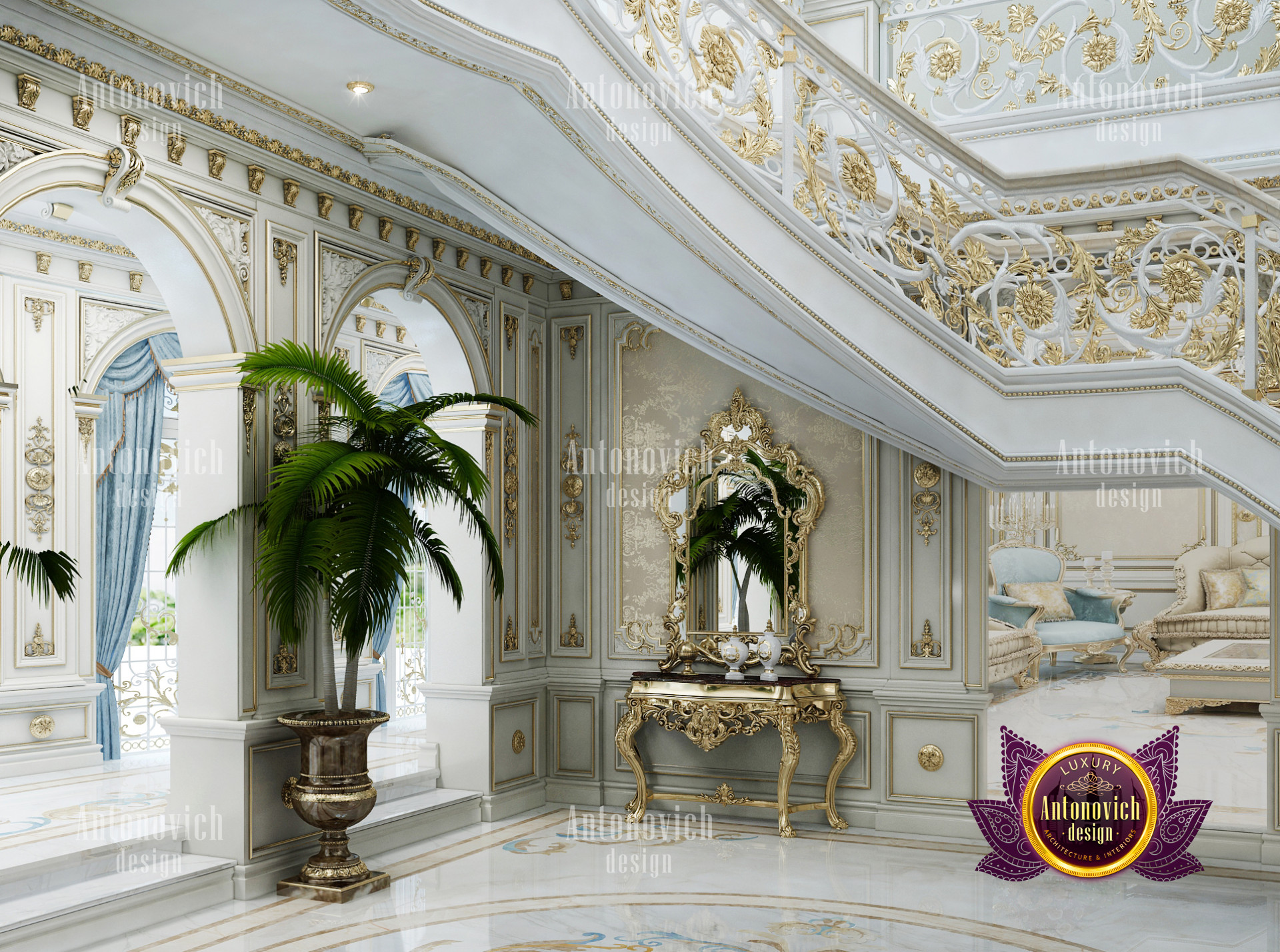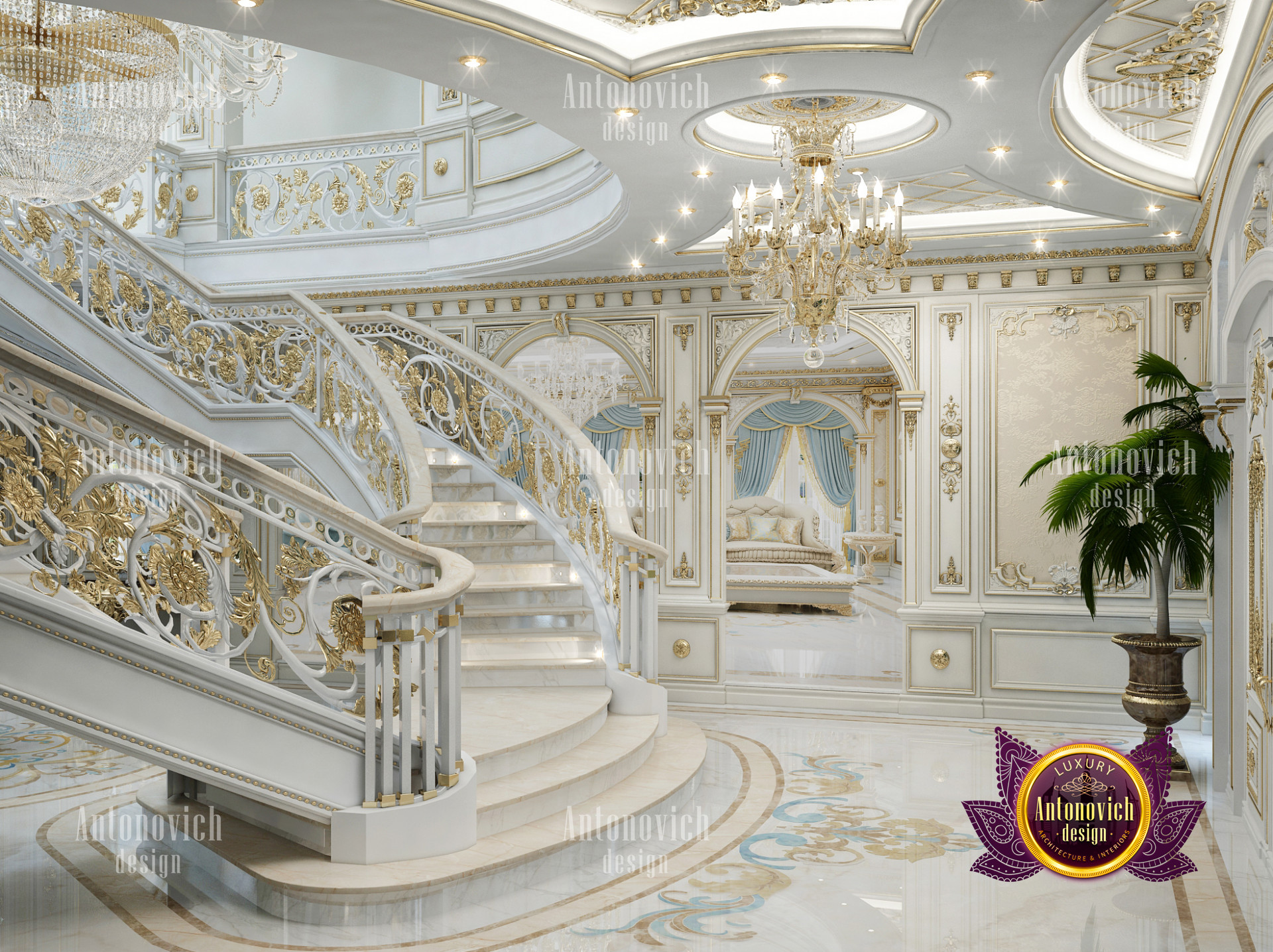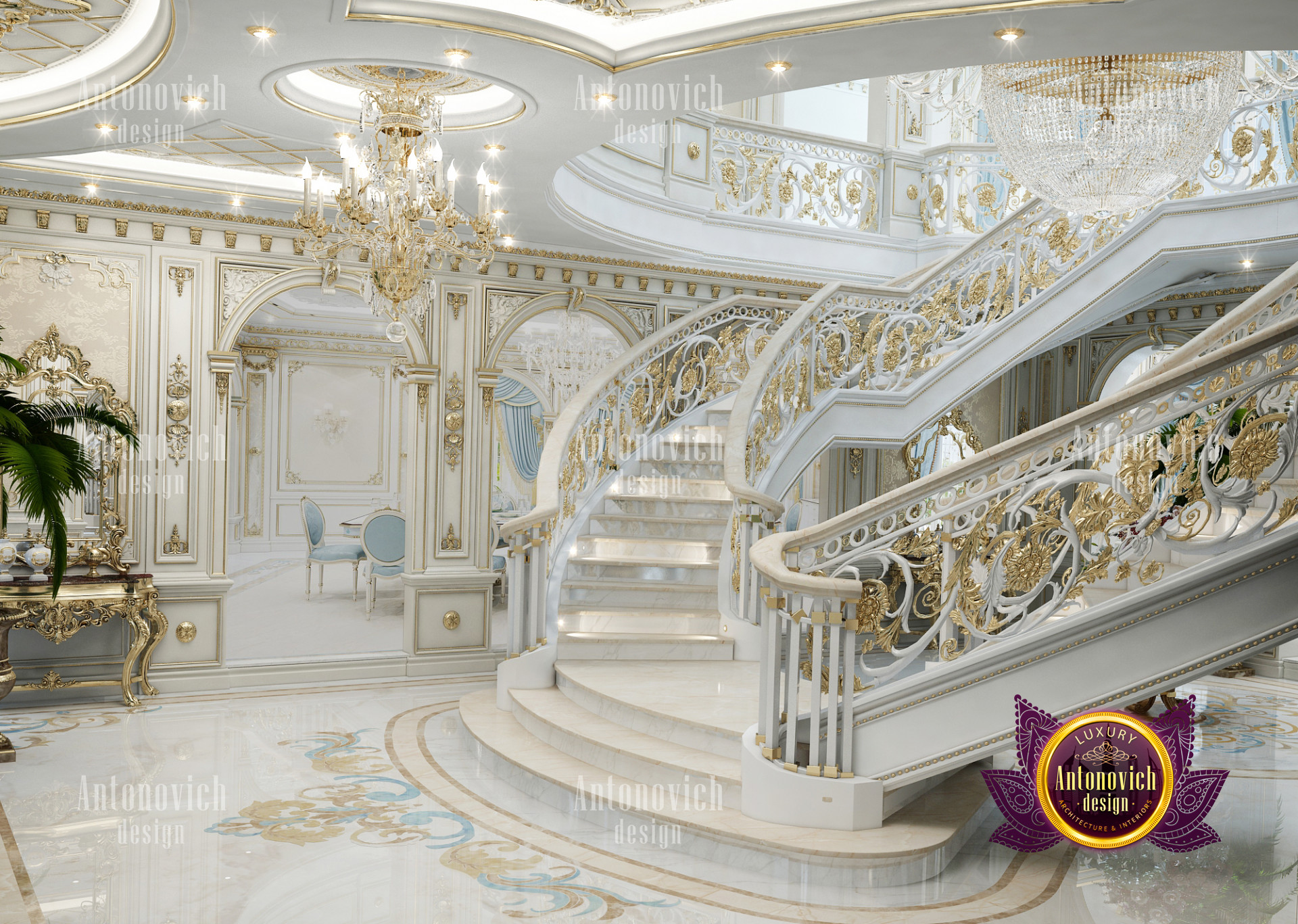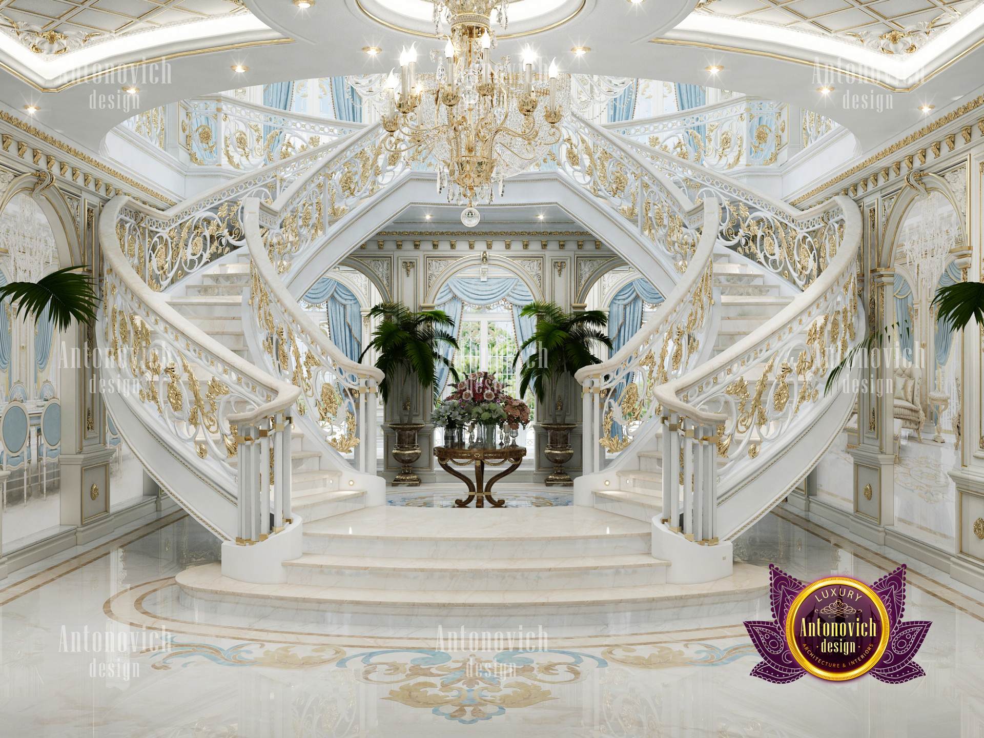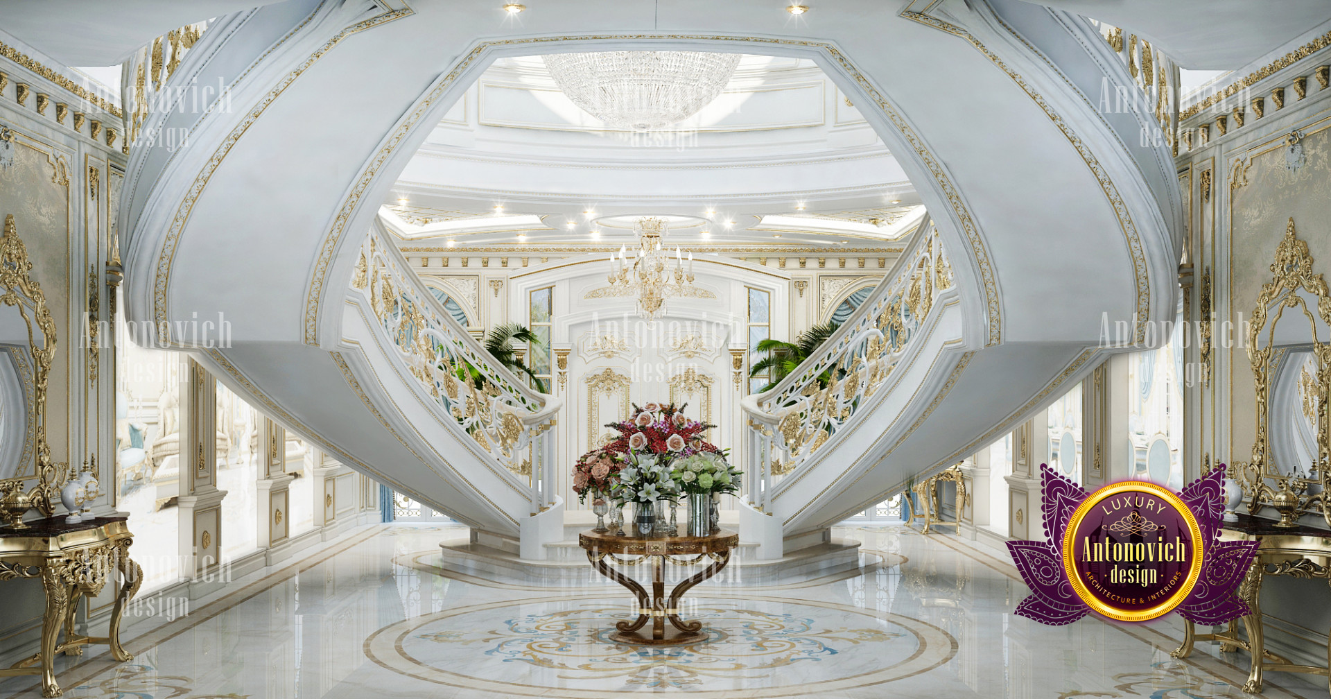 Antonovich Group is always the top pick of any customer when it comes to Luxury interior design villas in Saudi Arabia since it always performs nothing but the greatest design implementations for every interior. Luxury Mansions in Saudi Arabia are made out of the most prominent and finest decorations and styles, as well as materials of the highest quality. A magnificent mansion would not be complete without the most intriguing staircase design. And, as the leading luxury interior design firm in Saudi Arabia, the team produced the most dramatic atmosphere and style for the staircase. It has been beautifully illuminated with bespoke chandeliers composed of excellent gems and glass.