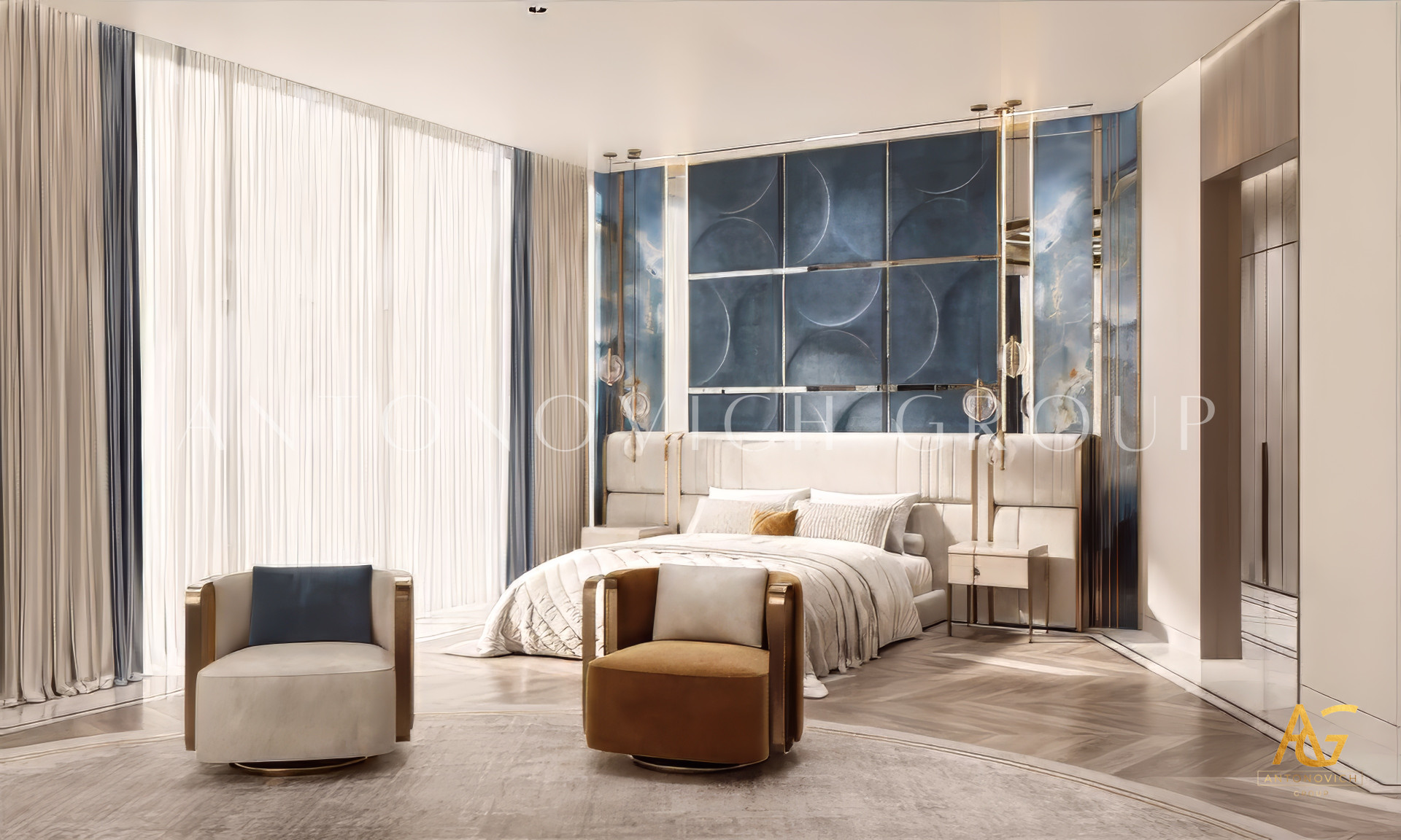 If you want a luxury bedroom interior design, you should stick to a single concept. The magnificent room, like this exquisite luxury bedroom interior design from Luxury Antonovich Design, contains all of the necessities for a luxury sleep. With its contemporary style and aspect, the lovely design is truly a beautiful one. The luxury bedroom interior designs glossy designs are one-of-a-kind, adding to the rooms spectacular appeal. The excellent lighting completes the luxury bedroom interior design, making this adobe even more magnificent.