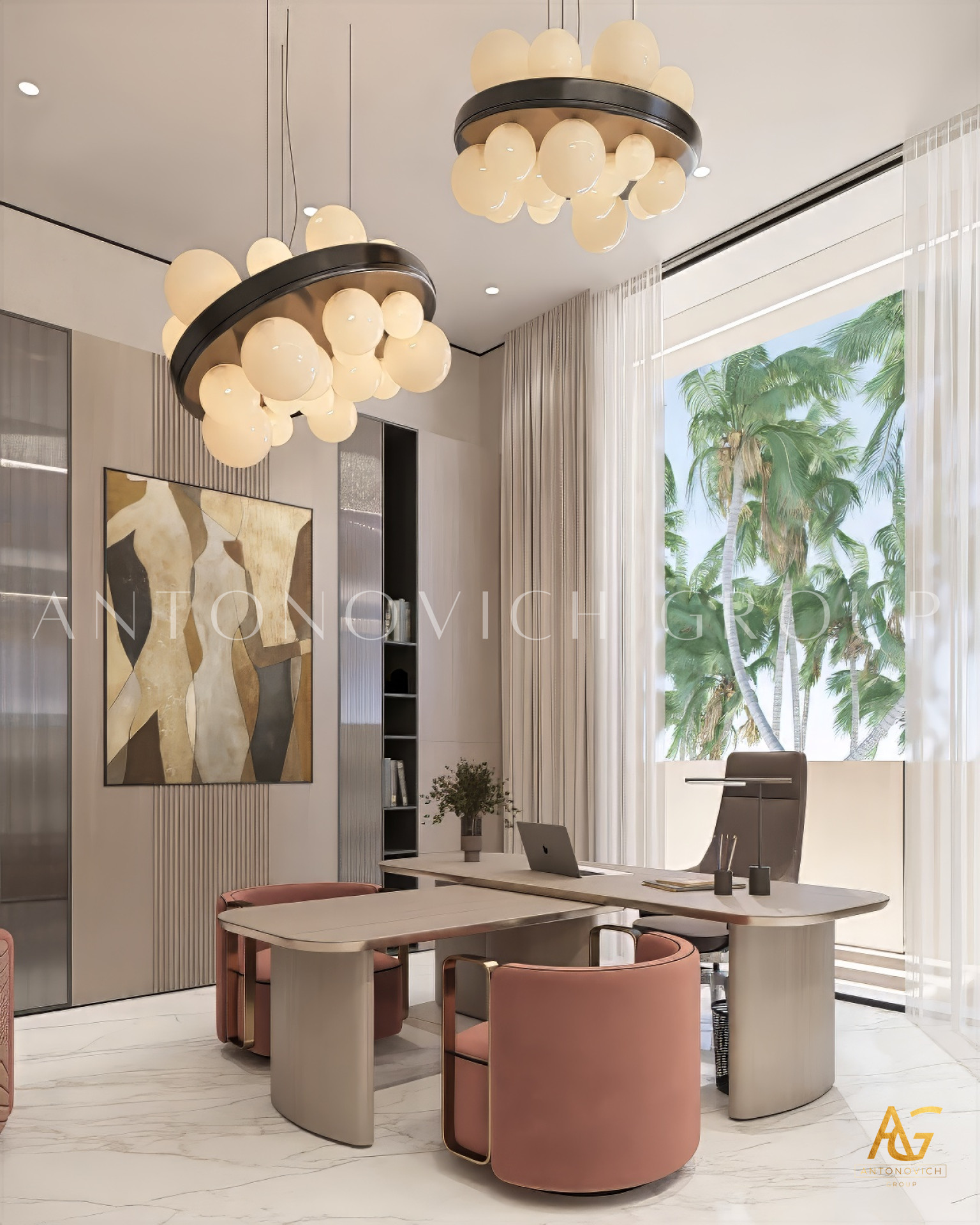 Contemporary Dubai villa interior design must accommodate extensive technology integration while maintaining clean, sophisticated aesthetics. Smart home systems, multimedia entertainment solutions, and advanced security systems require careful planning and discrete integration to avoid compromising design integrity. Antonovich Group's approach to technology integration emphasizes invisible solutions that provide maximum functionality without visual intrusion. Custom millwork incorporates hidden wiring pathways, while furniture pieces include integrated charging solutions and device storage. This approach ensures that technology enhances daily living without creating visual clutter or maintenance complications.