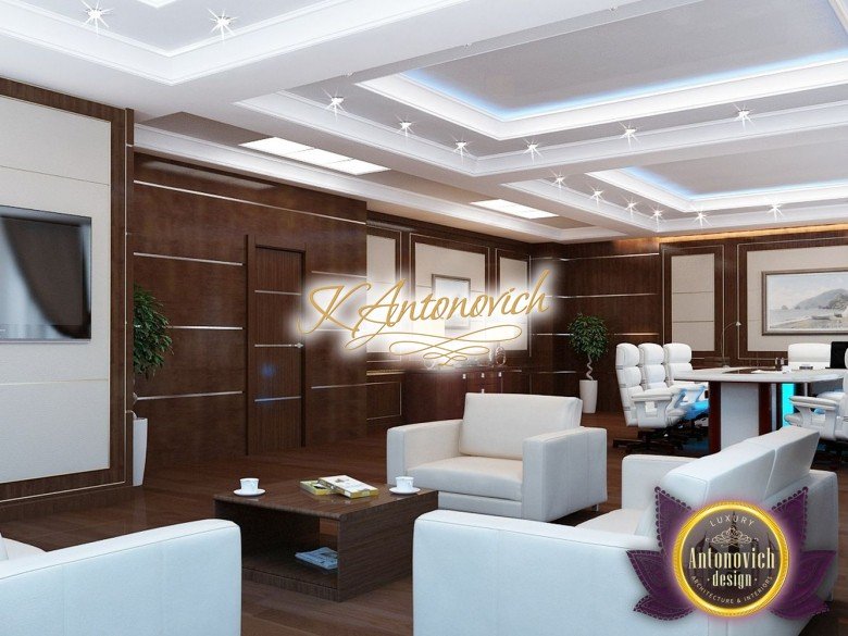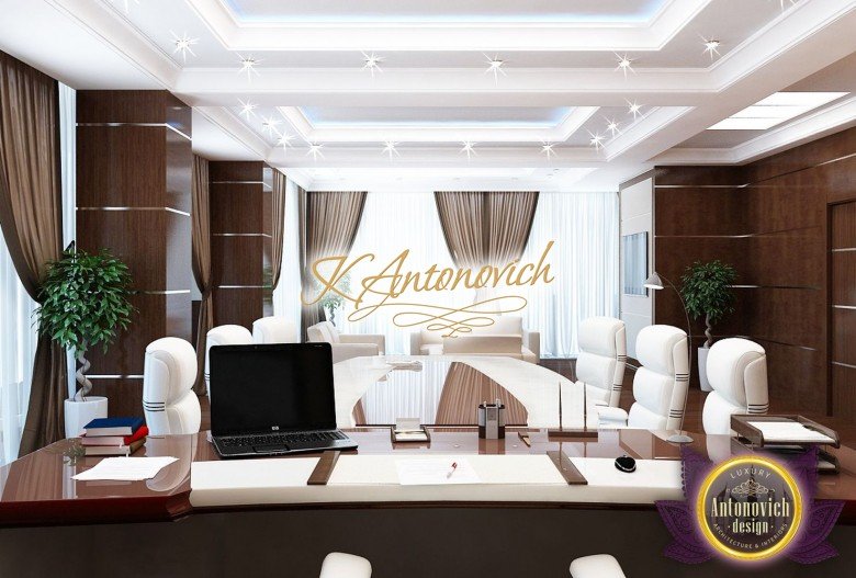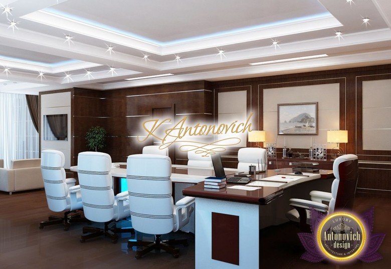 In this newest creation by Luxury Antonovich Design; the company has created a huge and luxury interior design that is finished with wood and white. The sofa and tables were placed strategically and the choice of the furniture is very luxurious with its details that are one of a kind. The beautiful decor is very evident in the completion of the office room. The brown curtain and furniture add to the beauty of the aristocrat interior design. If you are looking for great ideas for your next office interior design creation, then heres an inspiration for you.