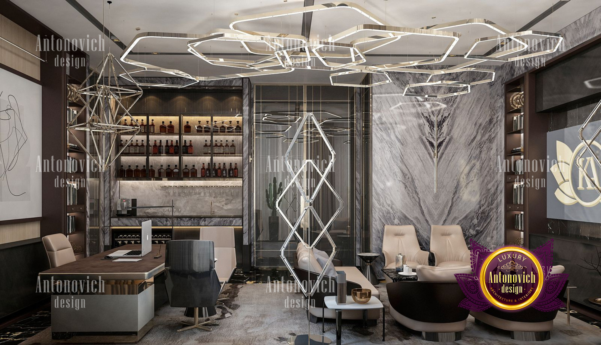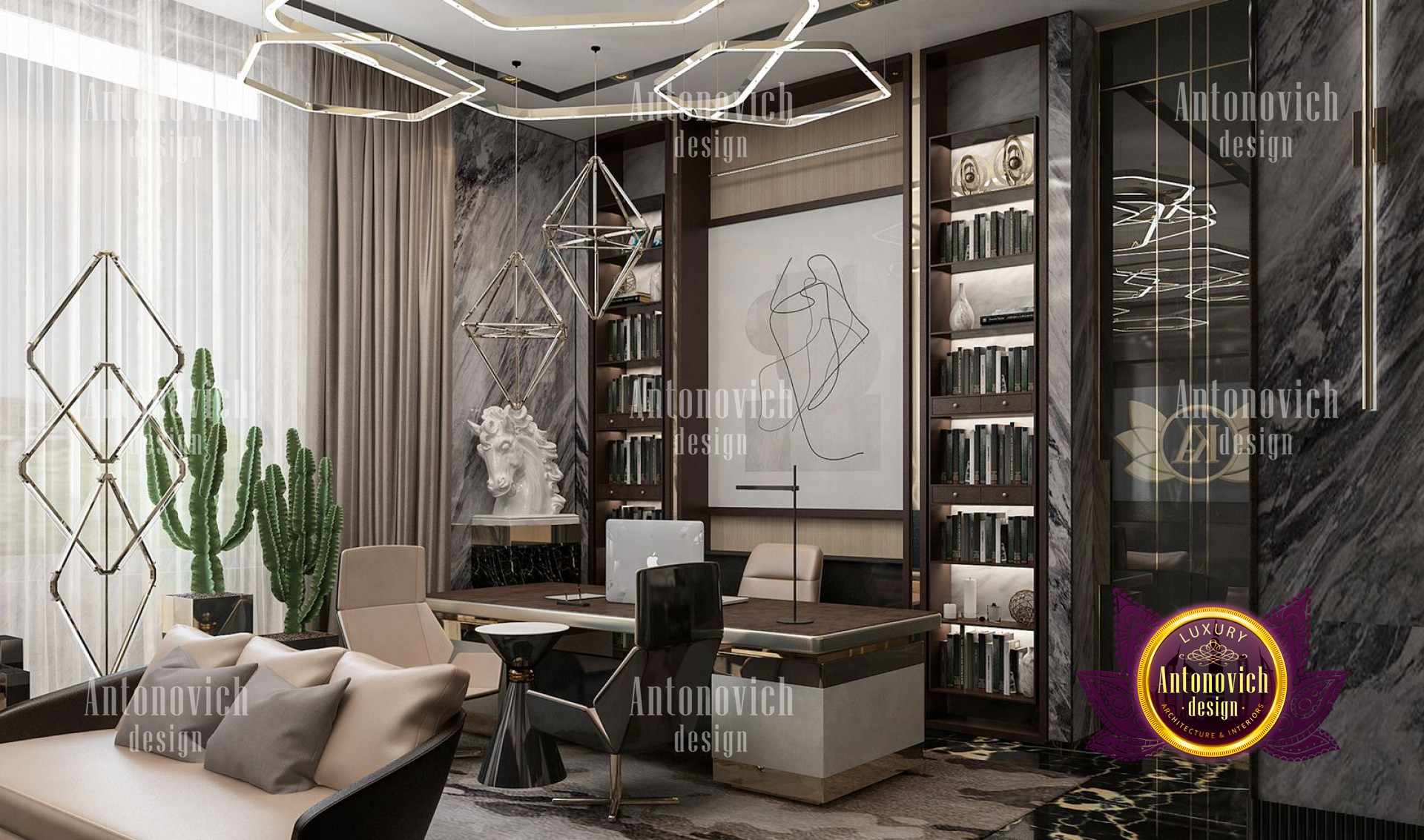 An office in Saudi Arabia interior design is one of the most frequented spaces in a house without even realizing it. Like this luxury interior décor in Riyadh that the world-renowned business Luxury Antonovich Design with its best interior designers in Riyadh developed for a customer in Riyadh, a home office should be free of space and not congested. The elegant luxury interior design in Riyadh has a beautiful and elegant vibe to it without being overbearing. The homes stunning interior design features numerous patterns that combine to create a masterpiece. Its similar to a museum, but with a focus on luxury interior design.