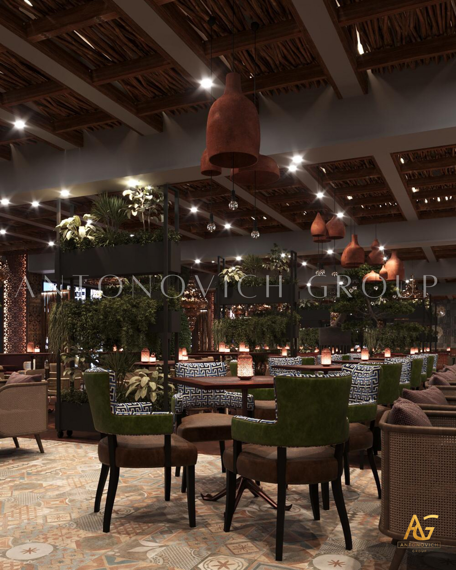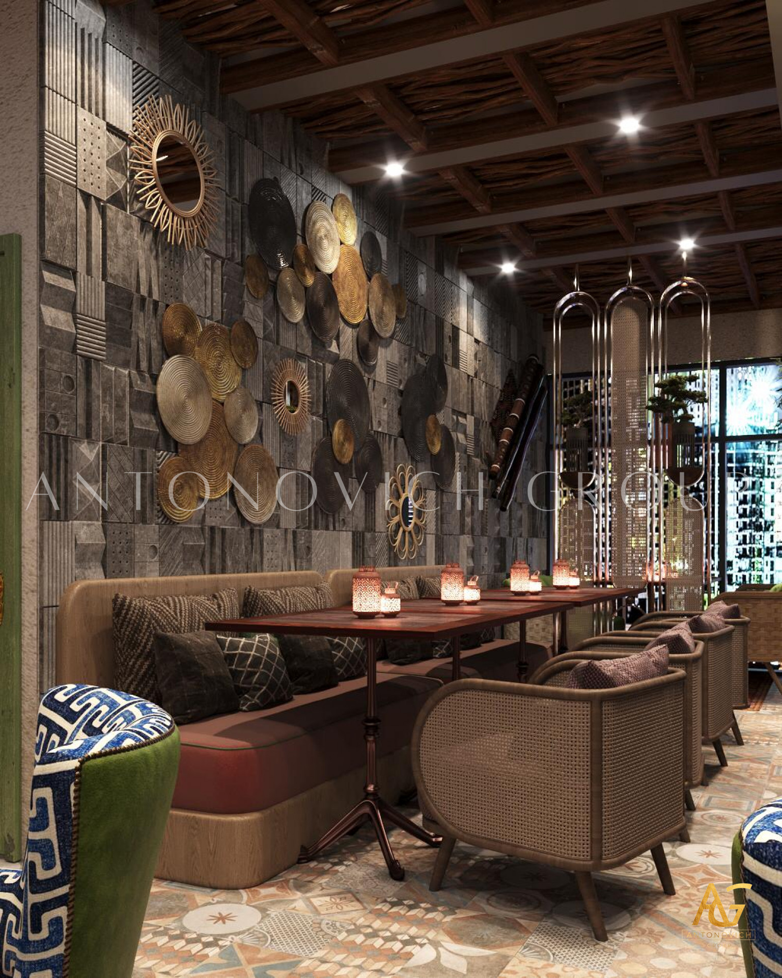 • Color Palette and Materials: The choice of colors and materials is pivotal in creating an inviting and luxurious dining space. Antonovich Group's designers incorporated a harmonious color palette, with rich jewel tones and gold accents, to create an atmosphere of warmth and opulence. High-quality materials such as marble, velvet, and crystal chandeliers were meticulously selected to enhance the restaurant's luxury quotient.