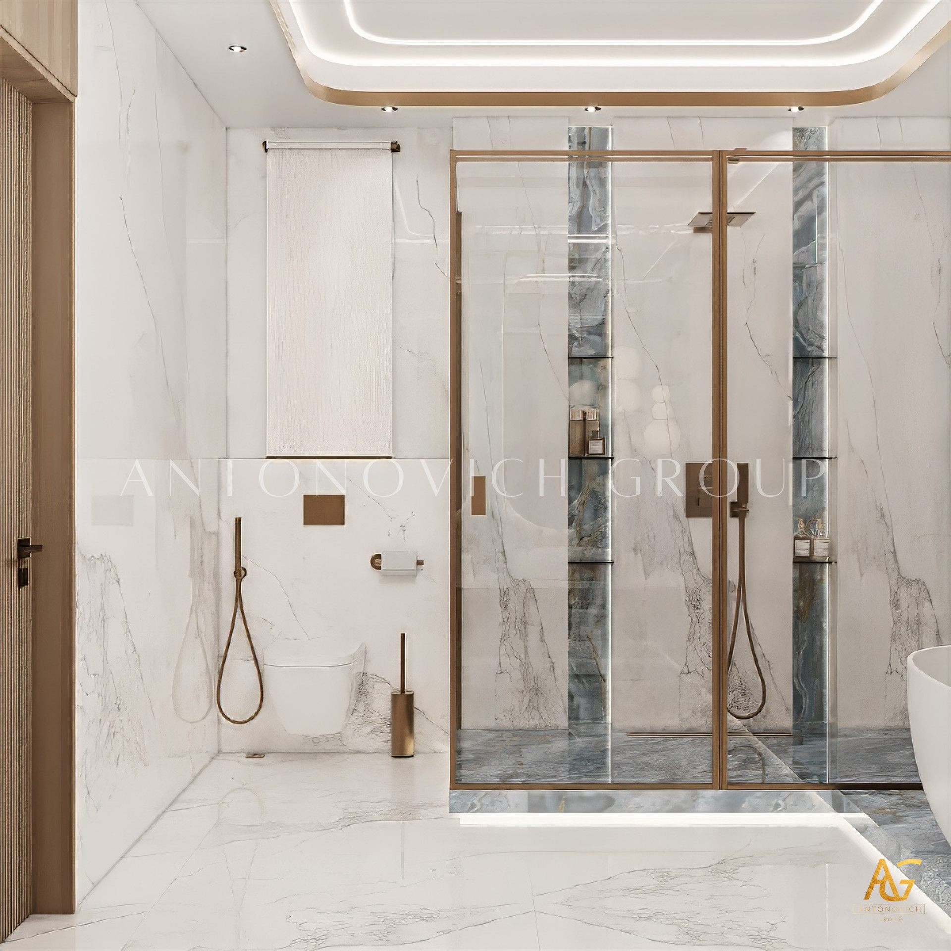 Behind every luxurious bathroom interior by Antonovich Group is a structured and precise project management process. Their team oversees timelines, material procurement, installation, and quality control with strict standards. This professional approach ensures that every detail — from tile alignment to lighting placement — is executed flawlessly.