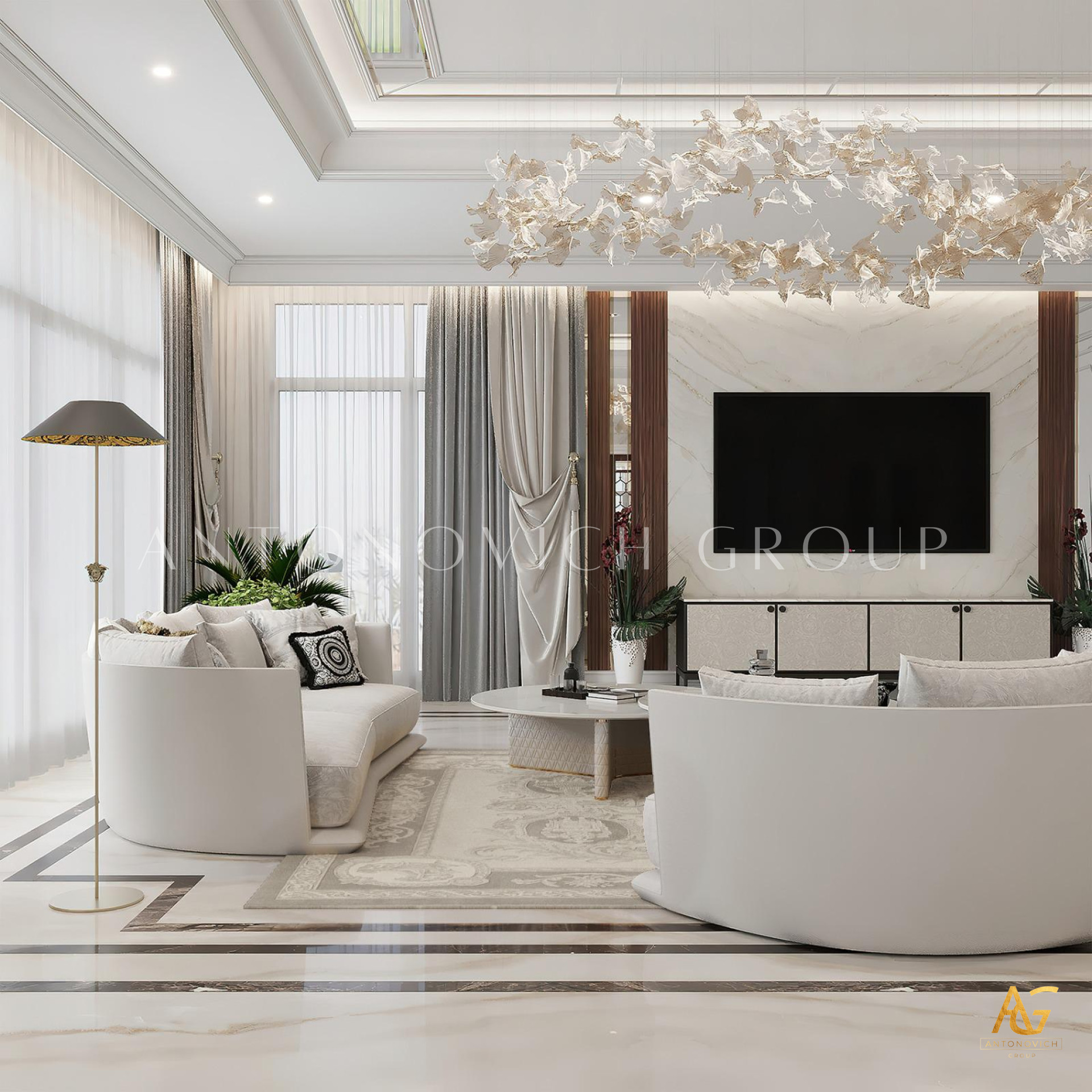 Antonovich Group is renowned for its innovative approach to luxury living room interiors in Dubai, offering bespoke designs tailored to meet the needs and preferences of every client. By combining cutting-edge technology, superior craftsmanship, and luxurious materials, they create living rooms that are not only visually stunning but also comfortable and functional.
