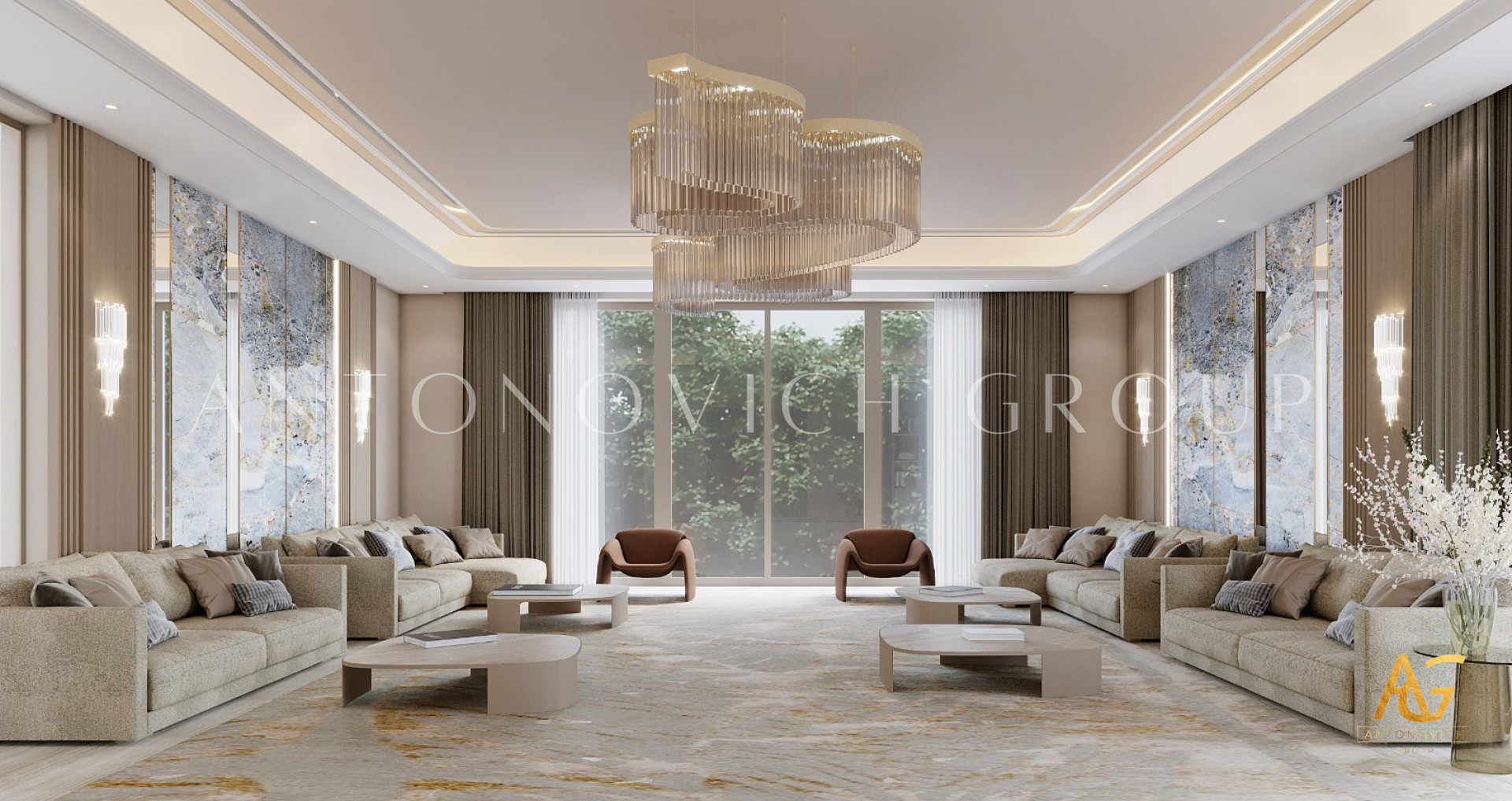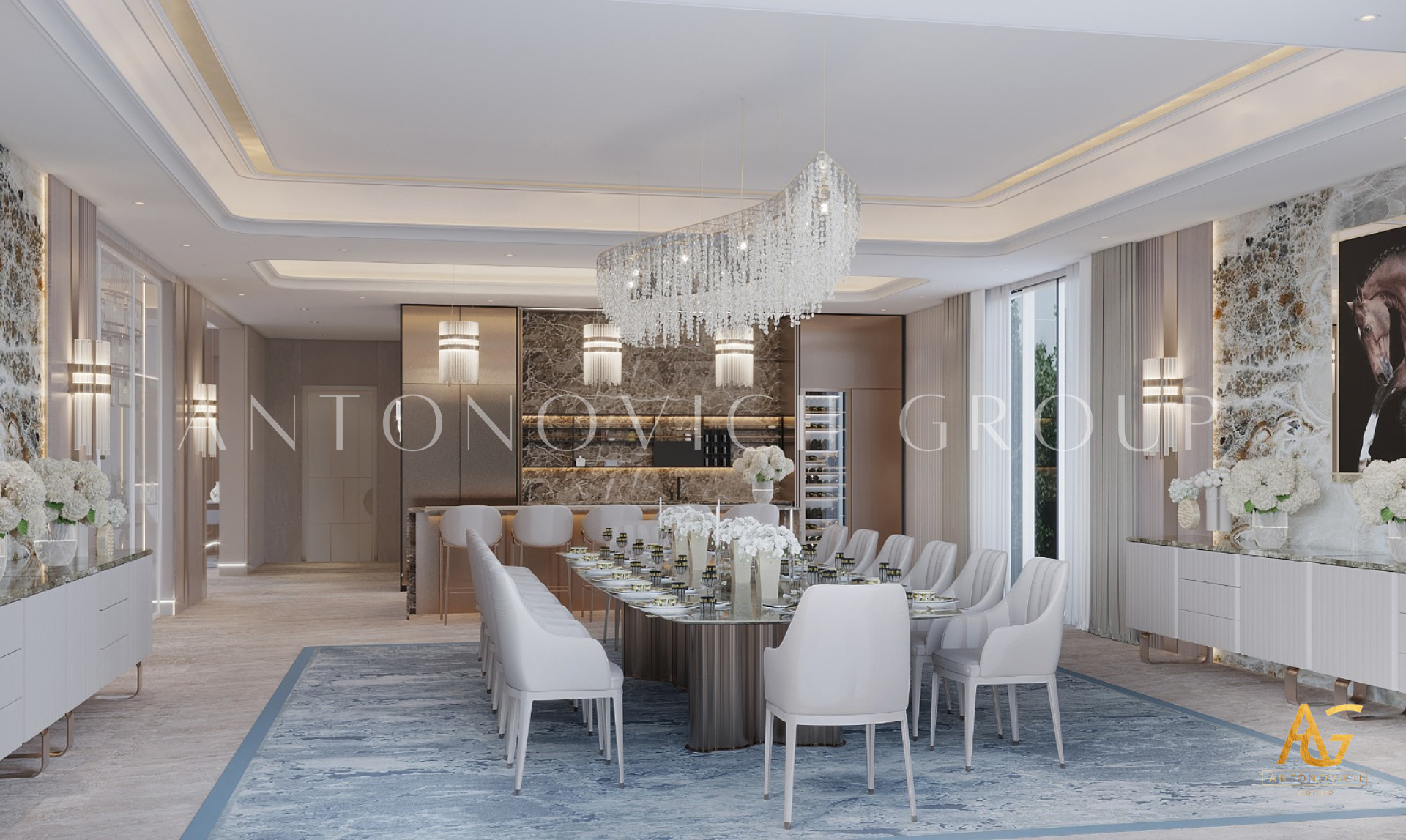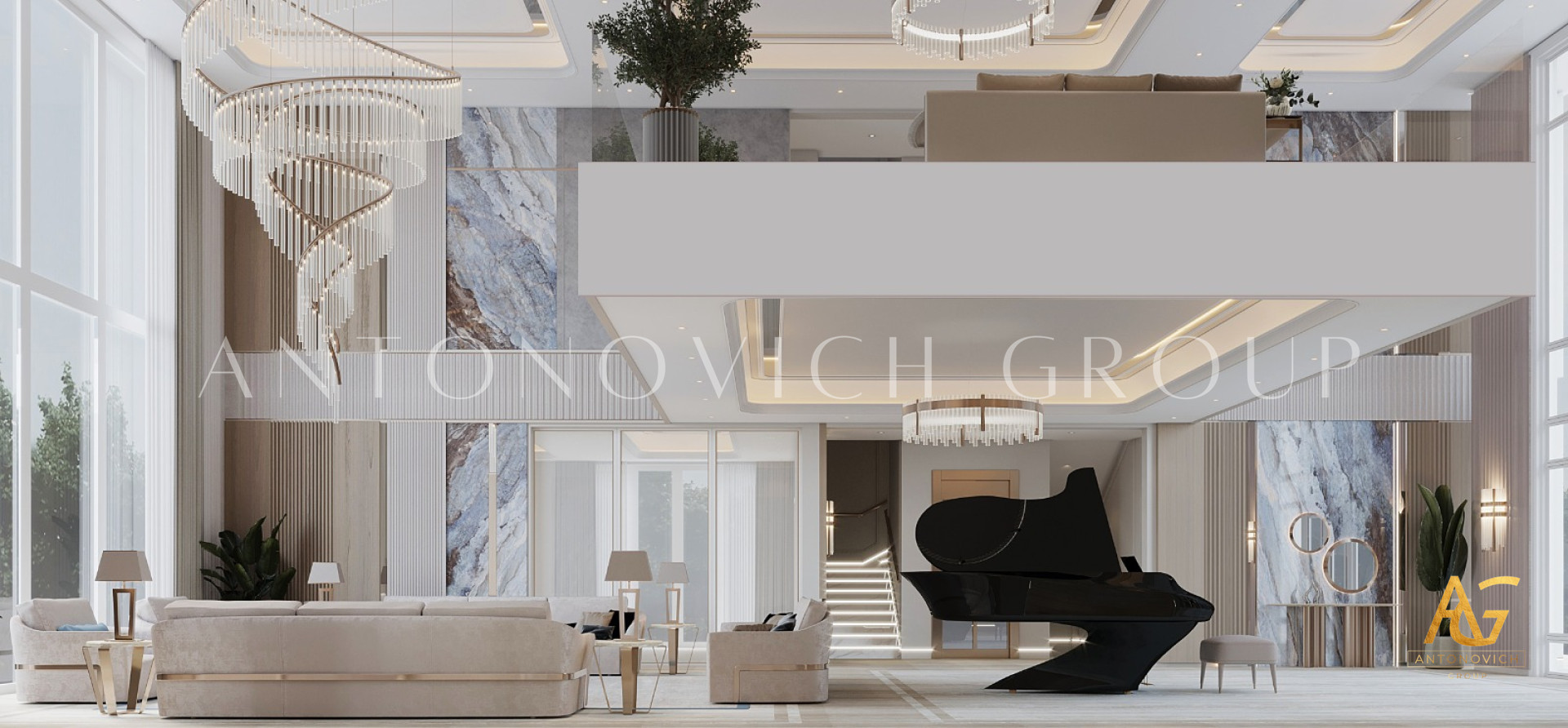 Antonovich Group's complete project execution for the Interior Design Villa in Meydan Dubai stands as a testament to their commitment to unparalleled luxury and innovation. Every aspect of the villa, from the grand entrance to the bespoke furnishings and modern amenities, reflects the brand's dedication to creating living spaces that redefine opulence. This Interior Design Villa is not just a residence; it's a work of art that encapsulates the epitome of luxury living in the vibrant city of Dubai.