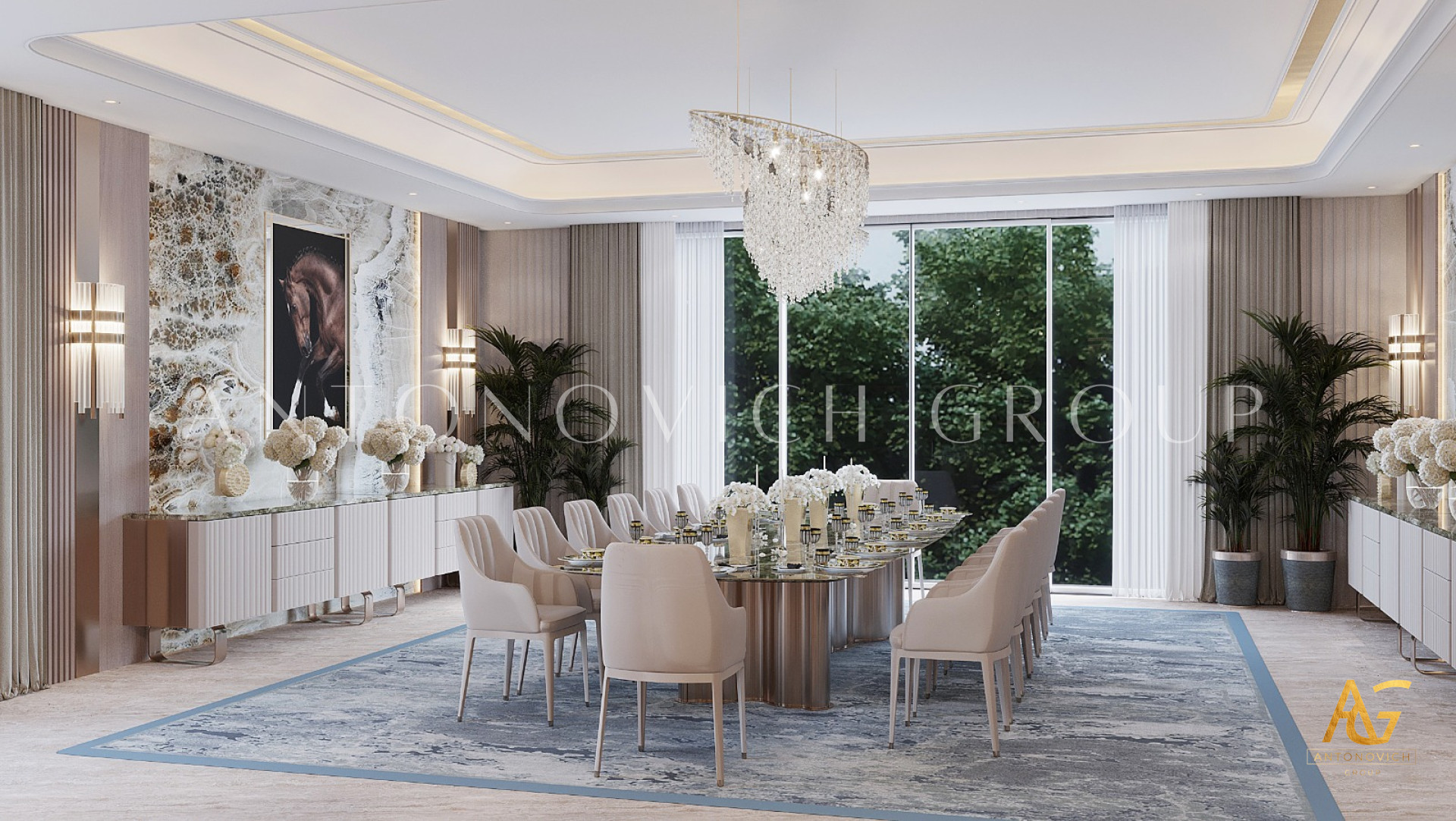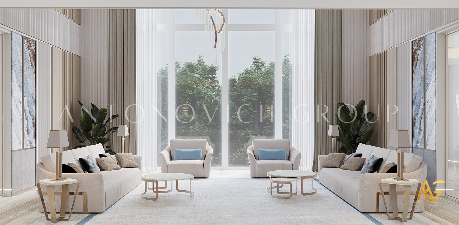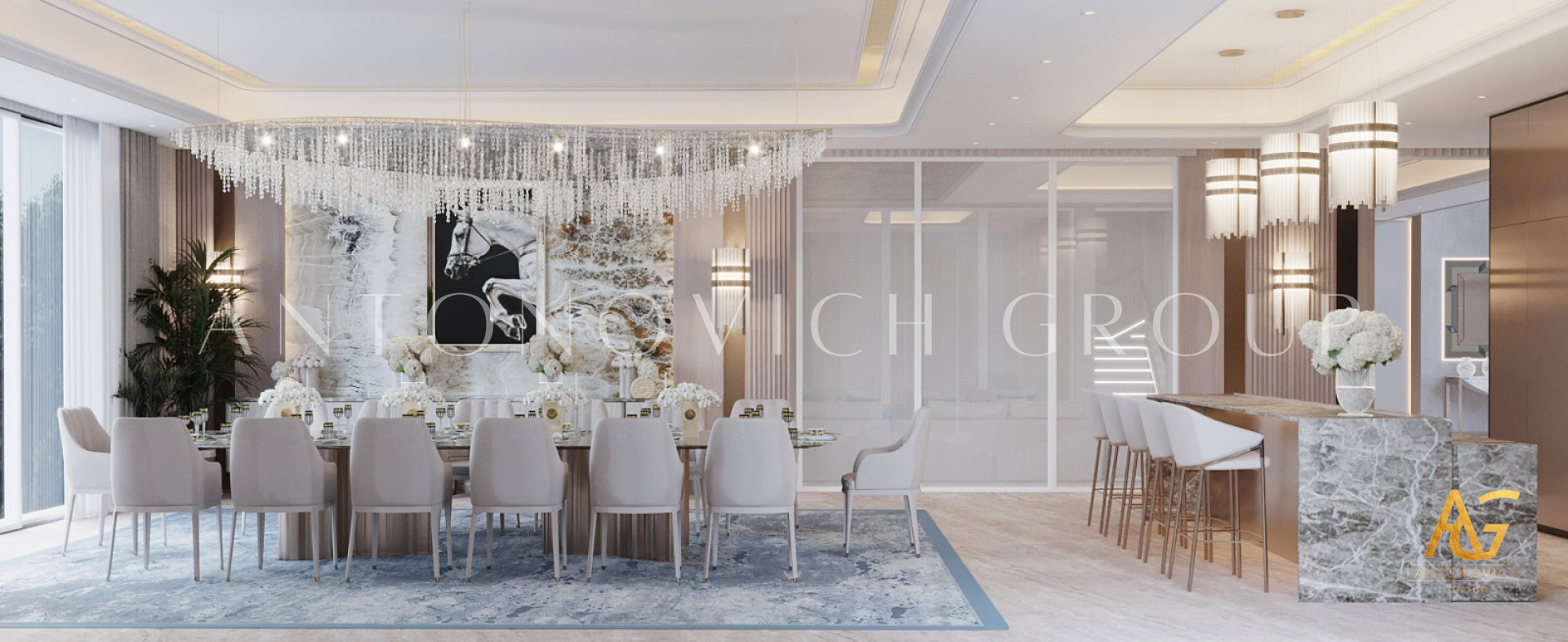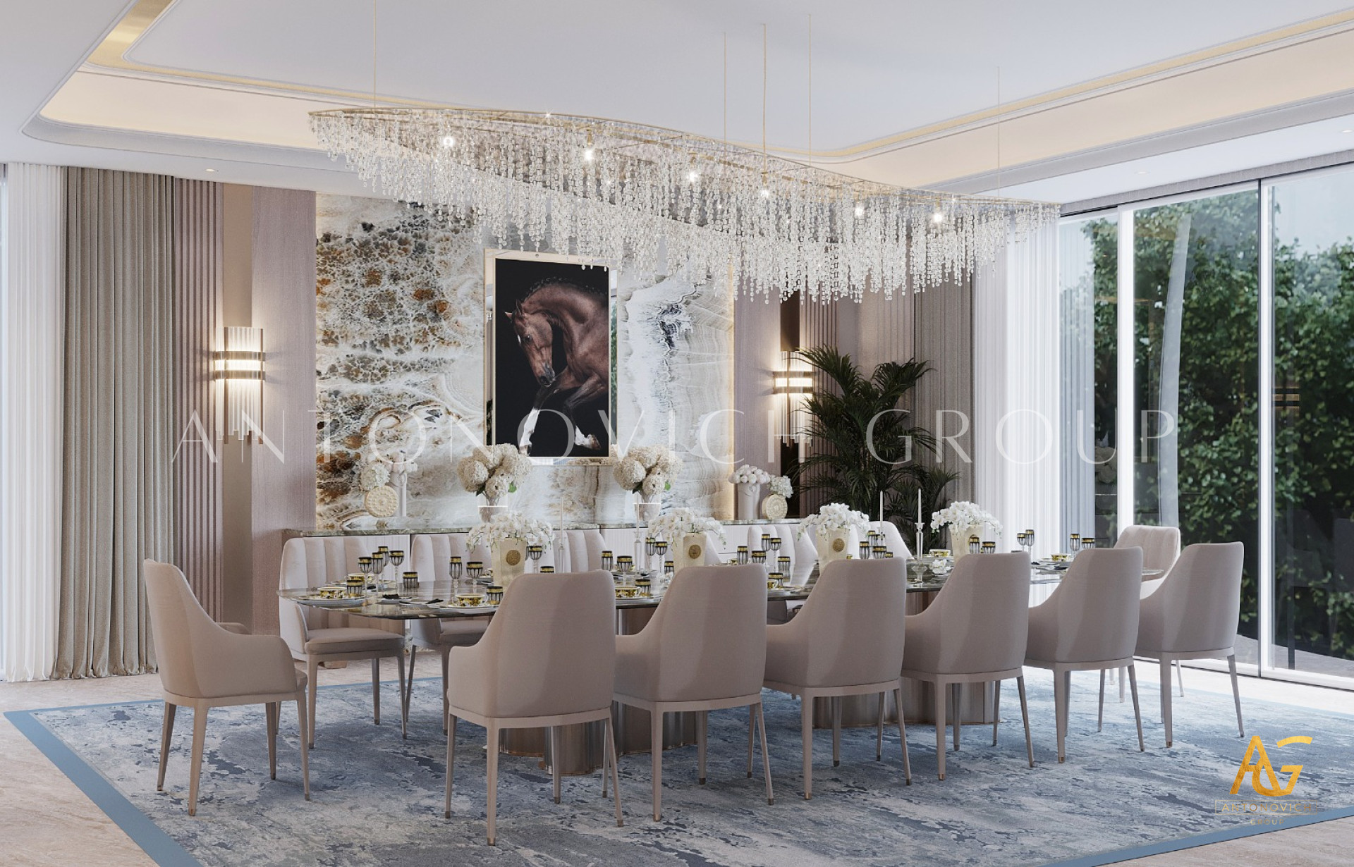 Antonovich Group's complete project execution for the Interior Design Villa in Meydan Dubai stands as a testament to their commitment to unparalleled luxury and innovation. Every aspect of the villa, from the grand entrance to the bespoke furnishings and modern amenities, reflects the brand's dedication to creating living spaces that redefine opulence. This Interior Design Villa is not just a residence; it's a work of art that encapsulates the epitome of luxury living in the vibrant city of Dubai.