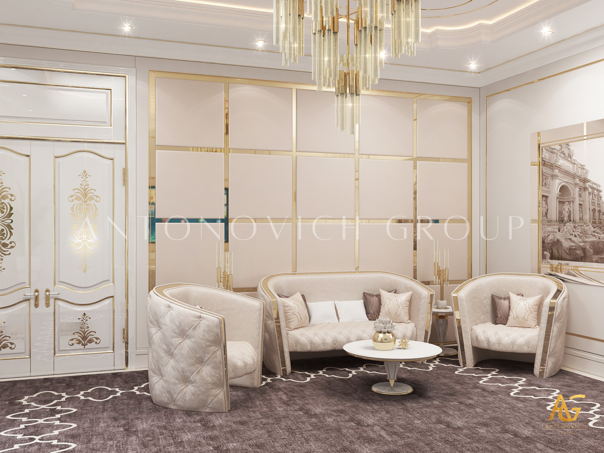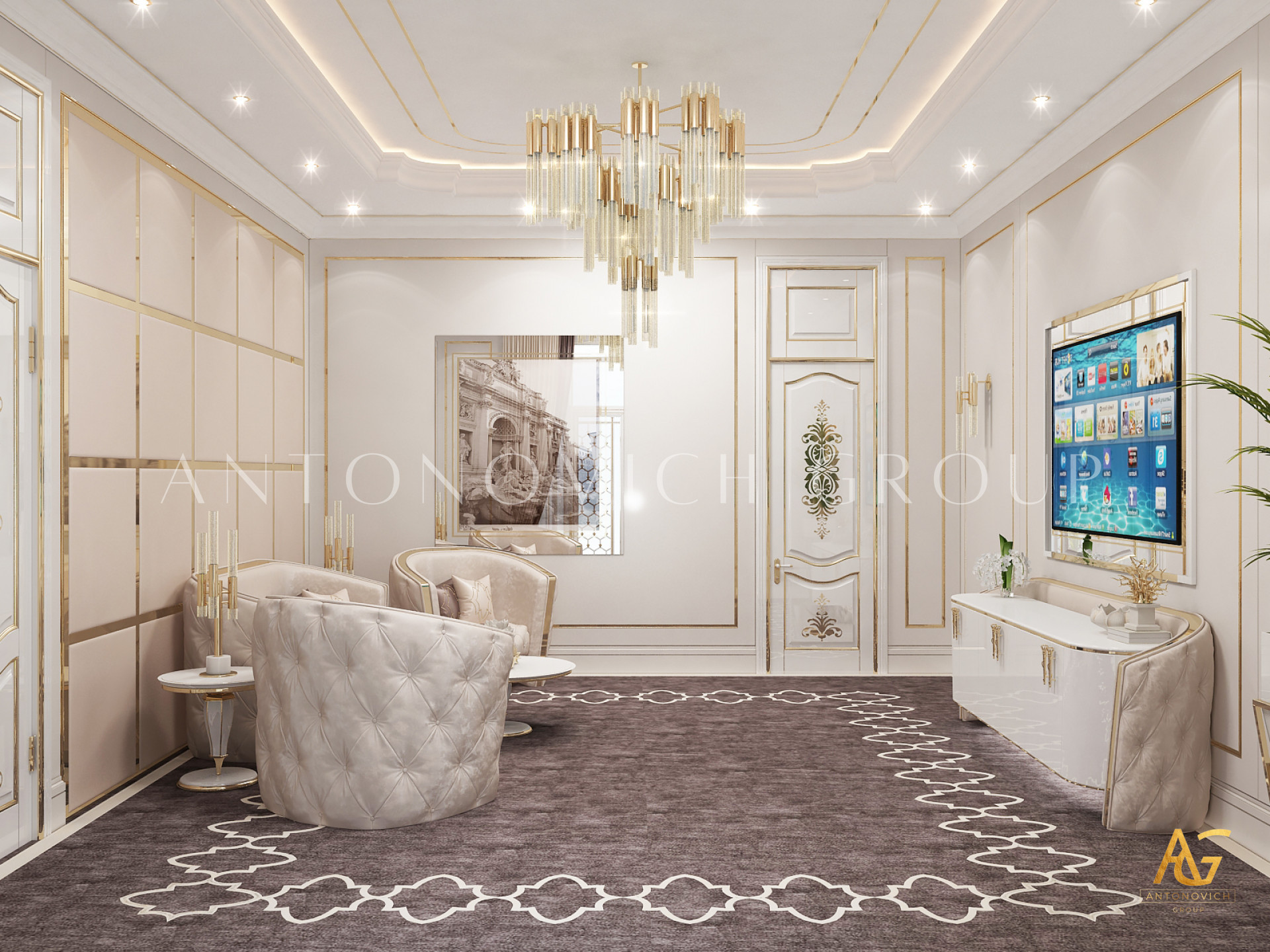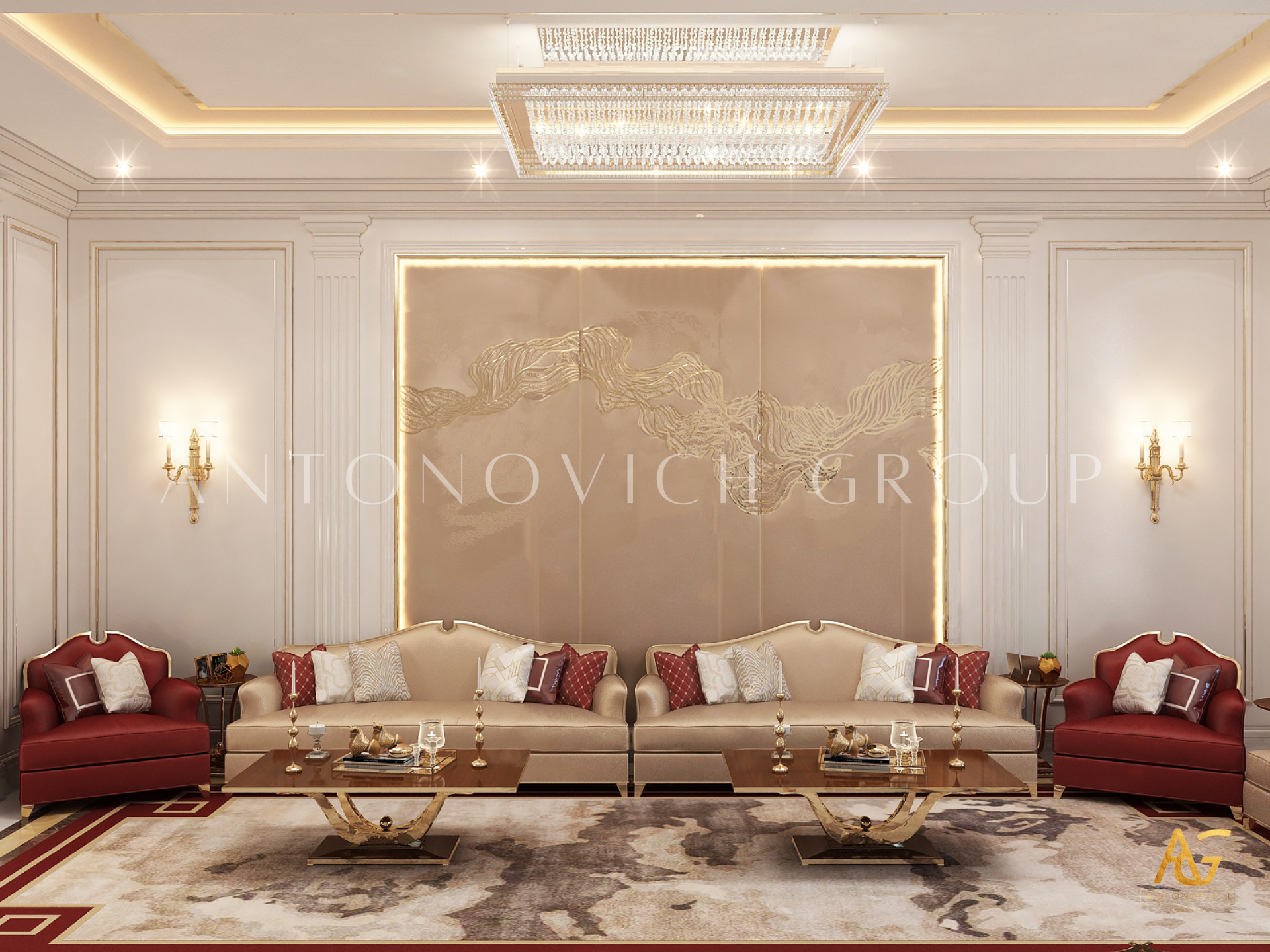 Luxury Antonovich Design has transformed this Luxury Villa Design Oman into a welcoming atmosphere by incorporating a variety of stunning pieces of furniture. Creating a stylish Oman interior design is not easy. A superb layout necessitates extensive research and the help of a professional. Luxury Antonovich Design, a leading interior design company Dubai in Oman, can help you create the elegant Oman interior design of your dreams. The excellent lighting adds to the beauty of the walls. This area is completed by beautiful lighting and elegant chandeliers that hang above it. The goal of this luxurious Muscat interior design is to create a great environment with lovely luxury items. The accents and pattern elements combine to create a beautiful beauty. It has a natural feel about it, but with a hint of elegance and sophistication. The general aesthetic of Omans interior design is intended to appeal to both men and women. The beautiful wall features add to the creative flair of the luxurious OMAN interior design. Elegant furniture designs are included in the premium OMAN interior design. The picture is completed by the excellent rooms wonderful interior décor. The lights are standard white with a hint of class, but the chair next to them is a beautiful design. Luxury Antonovich Design has assured that every part of the room is outfitted with exceptional features such as the materials used, which is why a top interior design company in OMAN is essential for a luxury interior design. This is to keep the owner comfortable at all times.BEST INTERIOR DESIGN IN MUSCAT