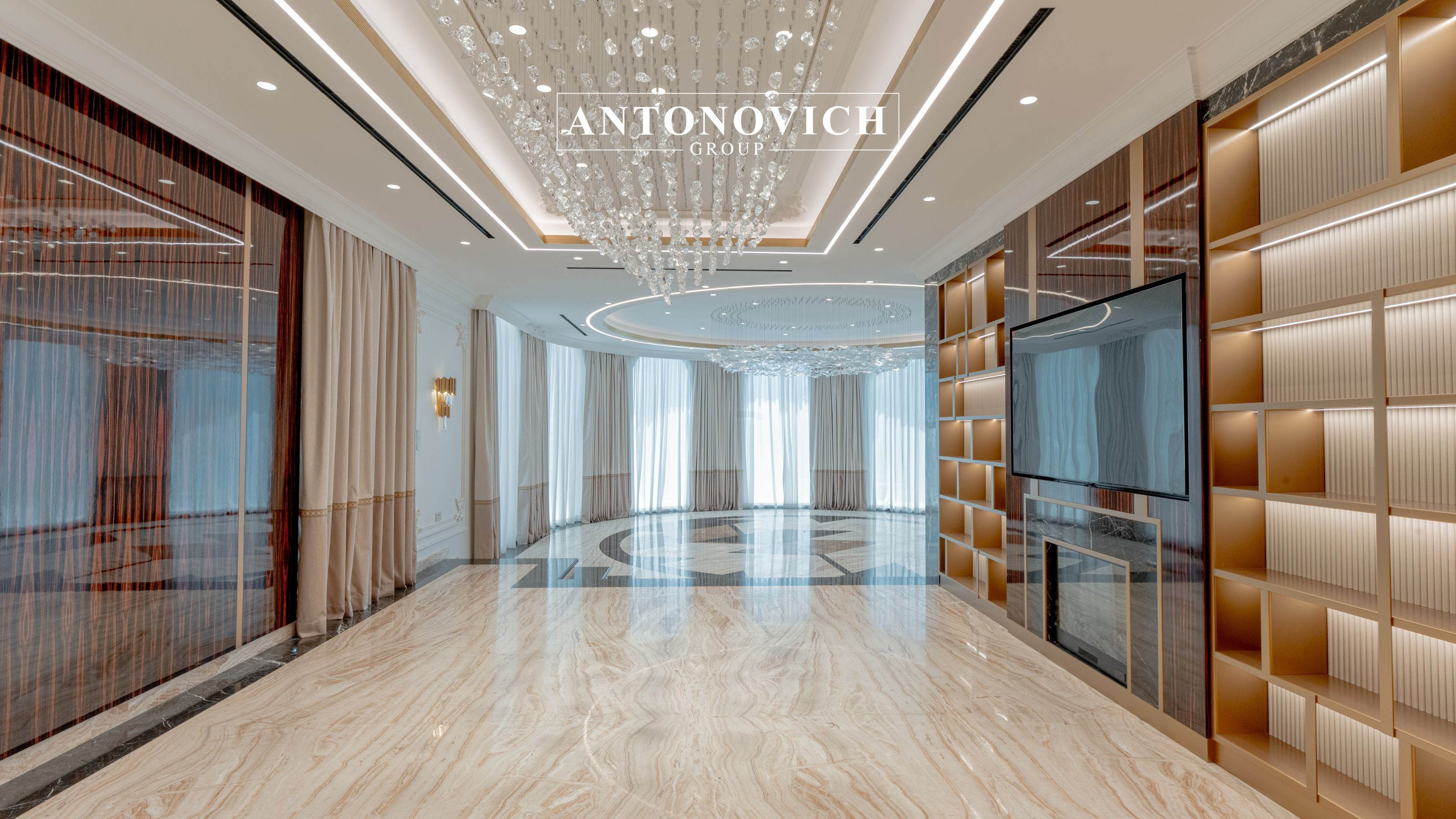 • Luxury Materials & Finishes – Antonovich Group sources premium materials such as marble, natural wood, glass, aluminum, and high-quality textiles to deliver enduring interiors.
