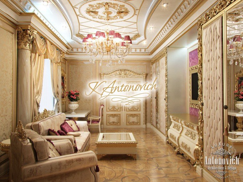 In this master bedroom interior design, it is completely designed with a classical/ royal style interior set up. The hues and textures have been perfectly blended and arranged. Entering this master bedroom is like stepping into a world of luxury and an elegant world with a great combination of a cozy atmosphere. The Luxury Antonovich Design joinery team has performed a masterpiece as they have been very well crafted the design of the door with great detail of carvings painted in gold. The team has been selected as the most elegant bed design that is perfectly suitable for the entire bedroom interior setting that has been resulted in a very stunning arrangement. The bed is going to be the main attraction of every bedroom/ master bedroom and it has to be very well selected with perfect accuracy when it comes to the bedroom concept and mood.