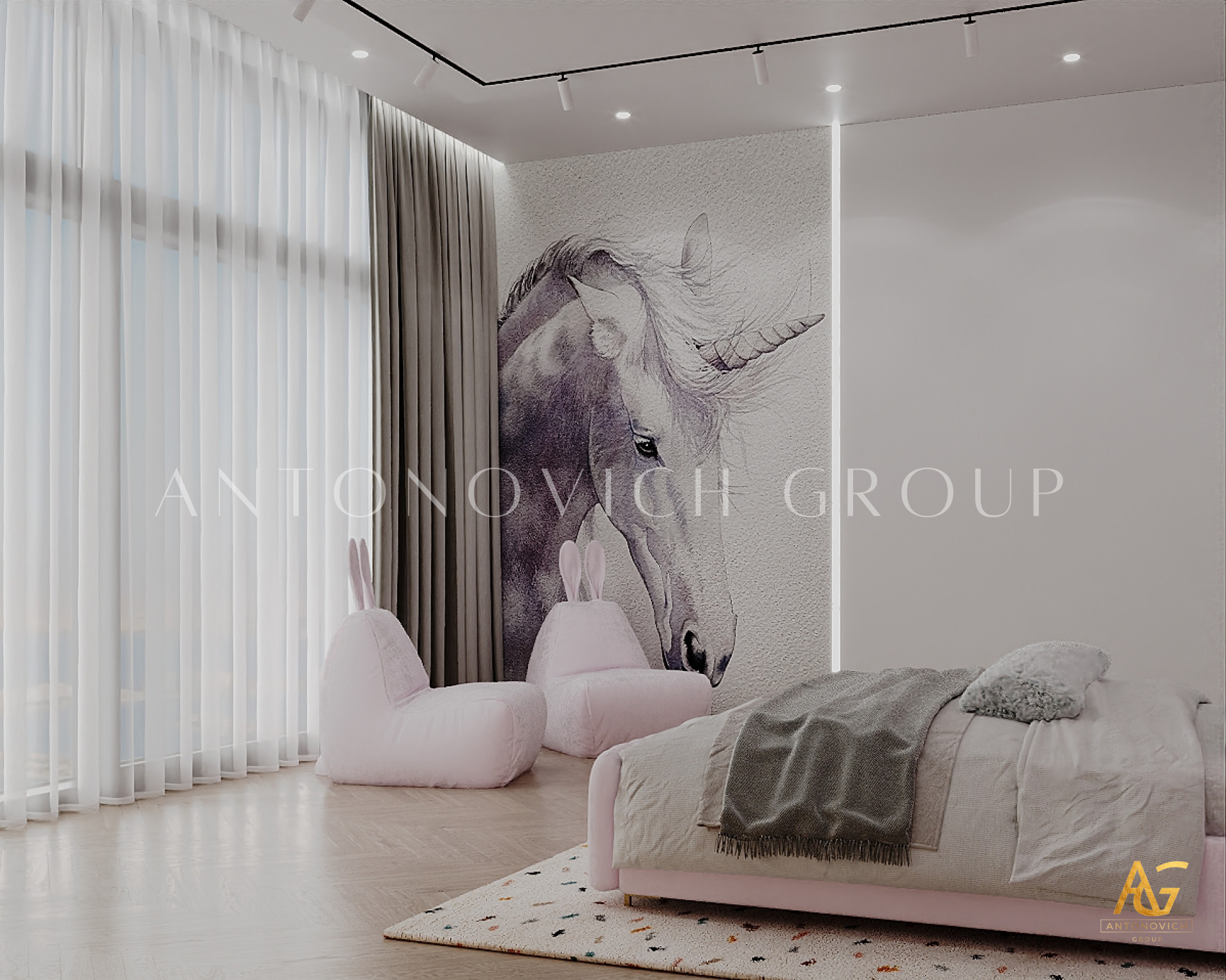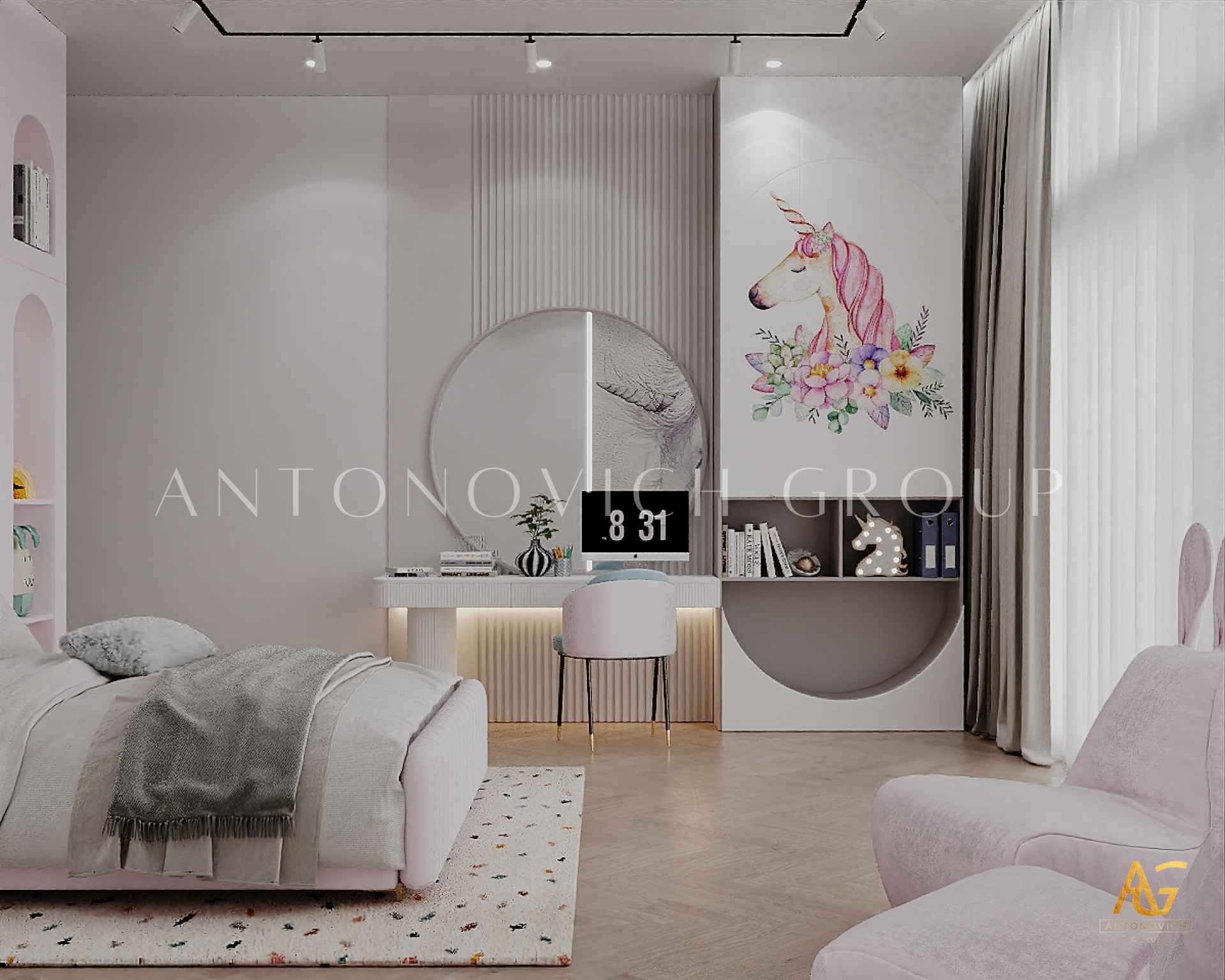 Kids Bedroom Interior Design Solution with a Unicorn Theme by Antonovich Group