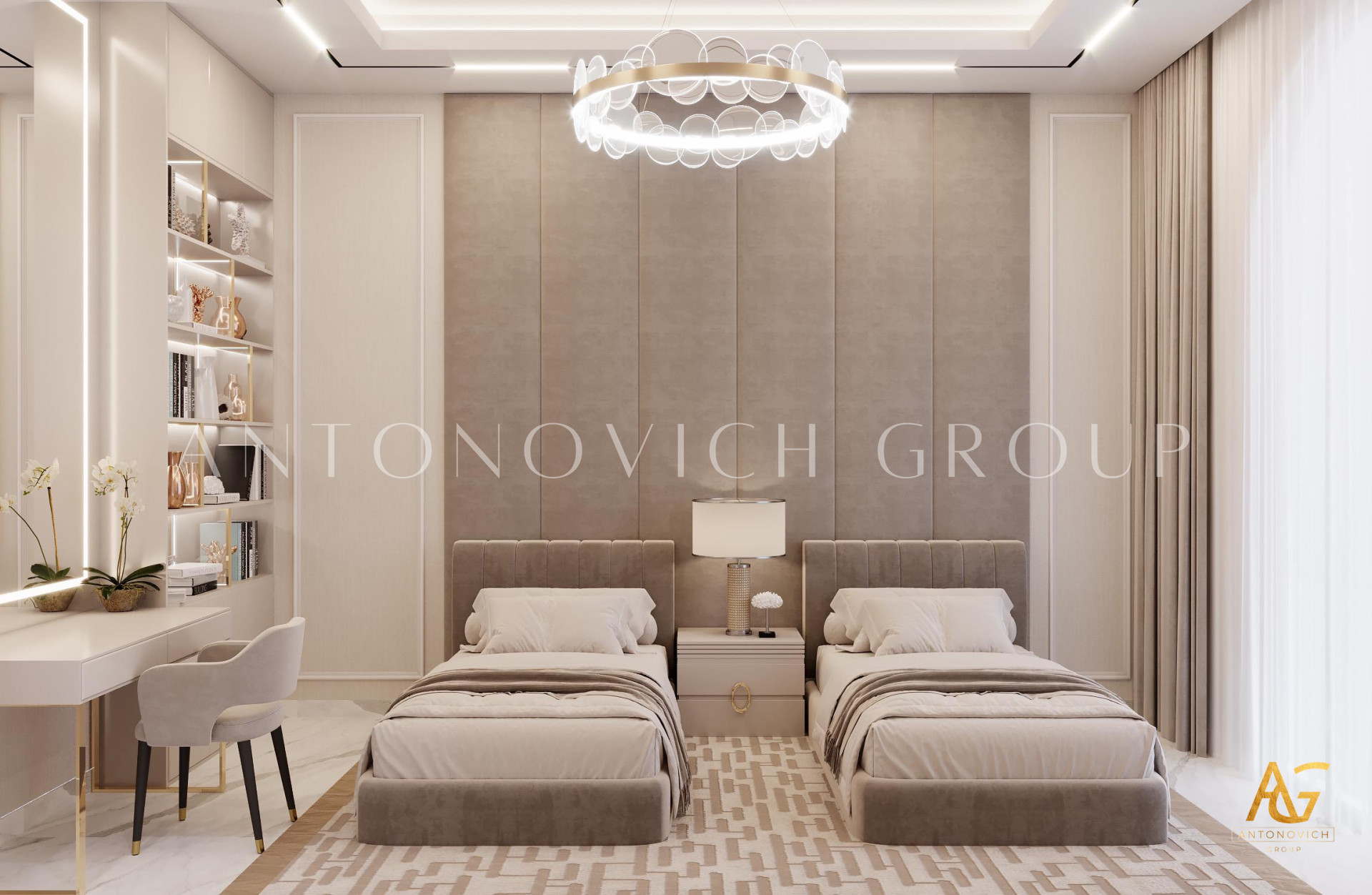The premium childrens bedroom interior design also has one-of-a-kind furniture/structures modeled after a hot air balloon. We are confident that youngsters will appreciate the inventiveness of this luxury childrens bedroom interior design! Its one-of-a-kind structure and stunning architecture are both one-of-a-kinds. The bed itself is another lovely and unique aspect of the luxury childrens bedroom interior design. The beautiful hues in various tones of brown are both striking and classy. Any youngster will like the mature appearance of this premium childrens bedroom interior design.