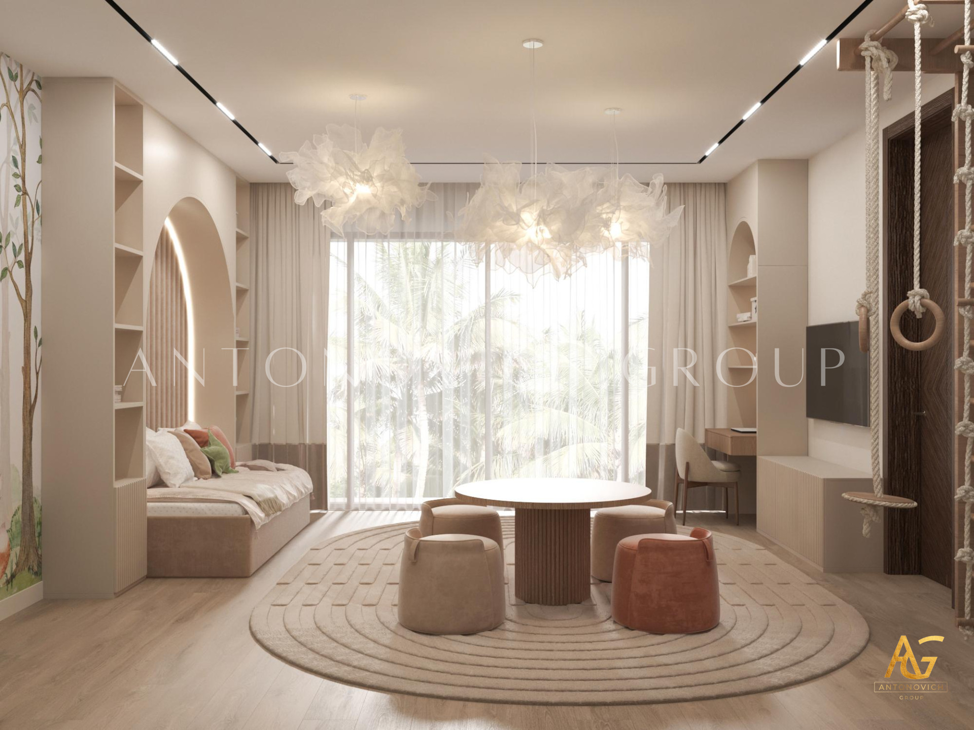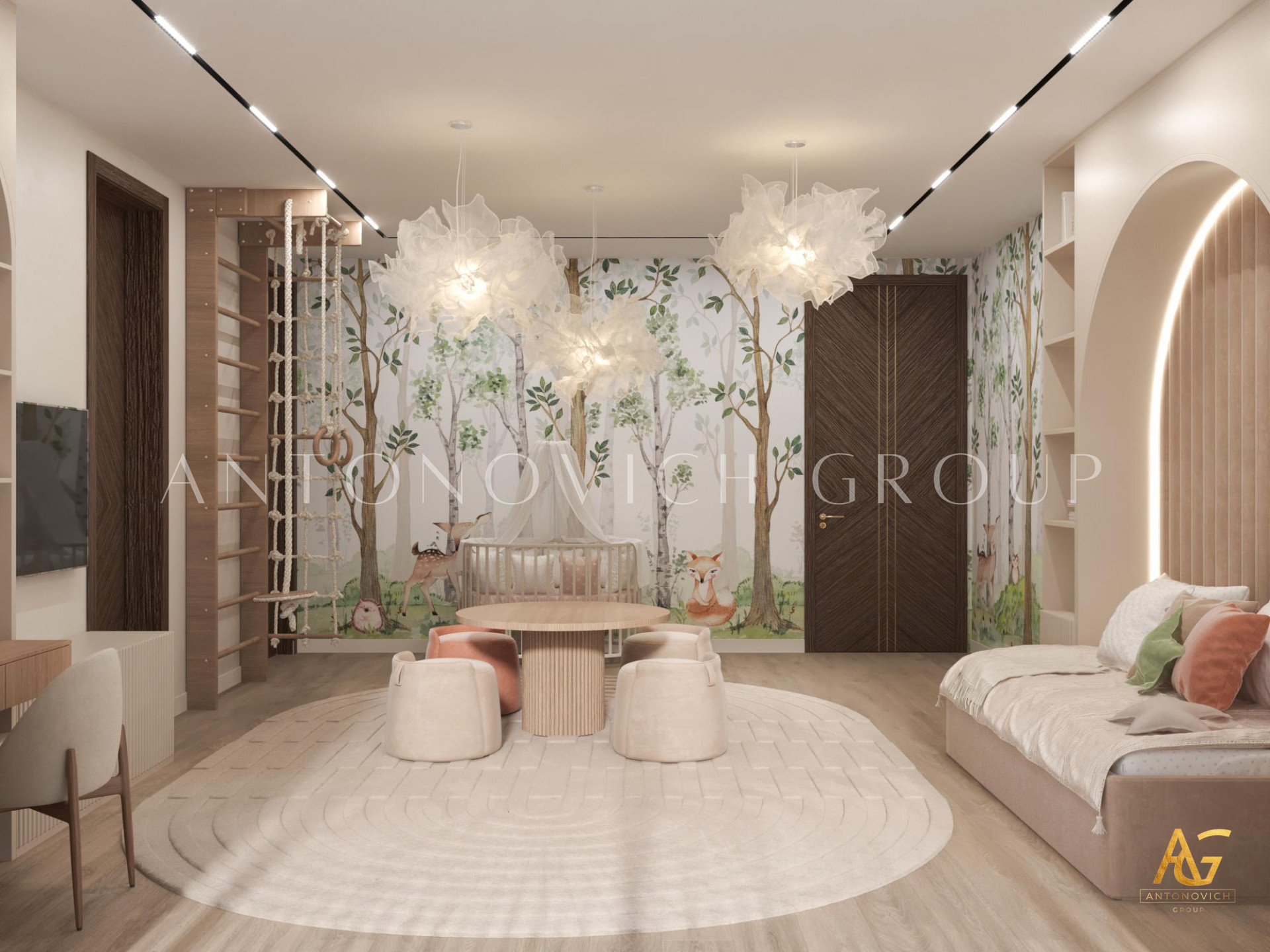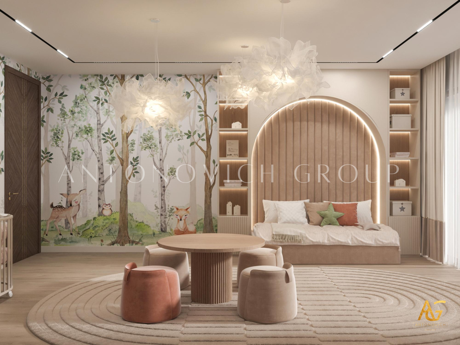 Children's room design has become the perfect continuation of the home's interior in the style of a modern classic. Dubai Interior Designer created a room with a light and easy nature. Such interiors are not just a comfortable environment for the child, but also serve as one of the finest ways to educate from an early age a good taste. Interior design is an art and development of interiors for children requires also knowledge and psychology. For each child's age fits a certain range of colors. But if in the color range there are serious differences and the rules, then for materials always have one immutable requirement. Curtains in children's room, wallpaper, parquet, all of these materials are only natural, environmentally friendly and of the highest quality.A special feature of the interior design of a child's room is that it is designed for two brothers.Designers organized the space so that each of them feels comfortable and had its own space. Parquet made of oak creates an atmosphere of great warmth of home comfort as well as a large natural carpet. Curtains in a modern style give the room a touch of rigor and restraint.After all, it is a room of the future men. Curtains in the children's room are made of natural silk muted shades of gray.Wallpaper for the children's room with geometric designs continues a pleasing gray range of hues in the interior.European wallpaper is the perfect choice for luxury interiors. And we suggested the wallpaper from the new collection for this project. The cozy and stylish the interior mood delights the eye.