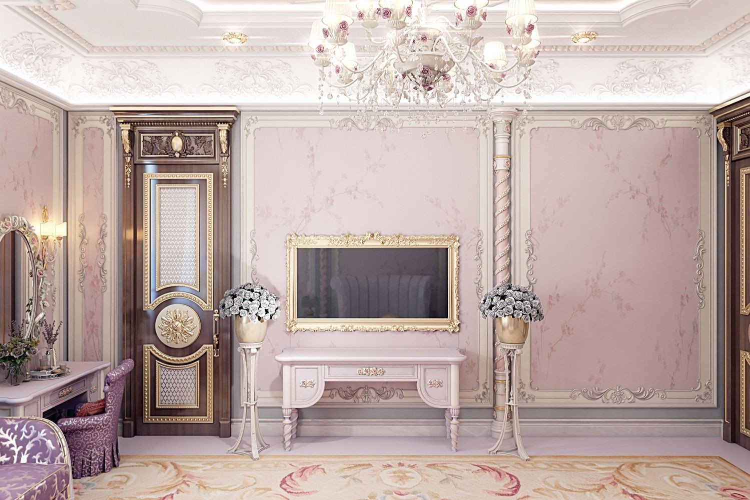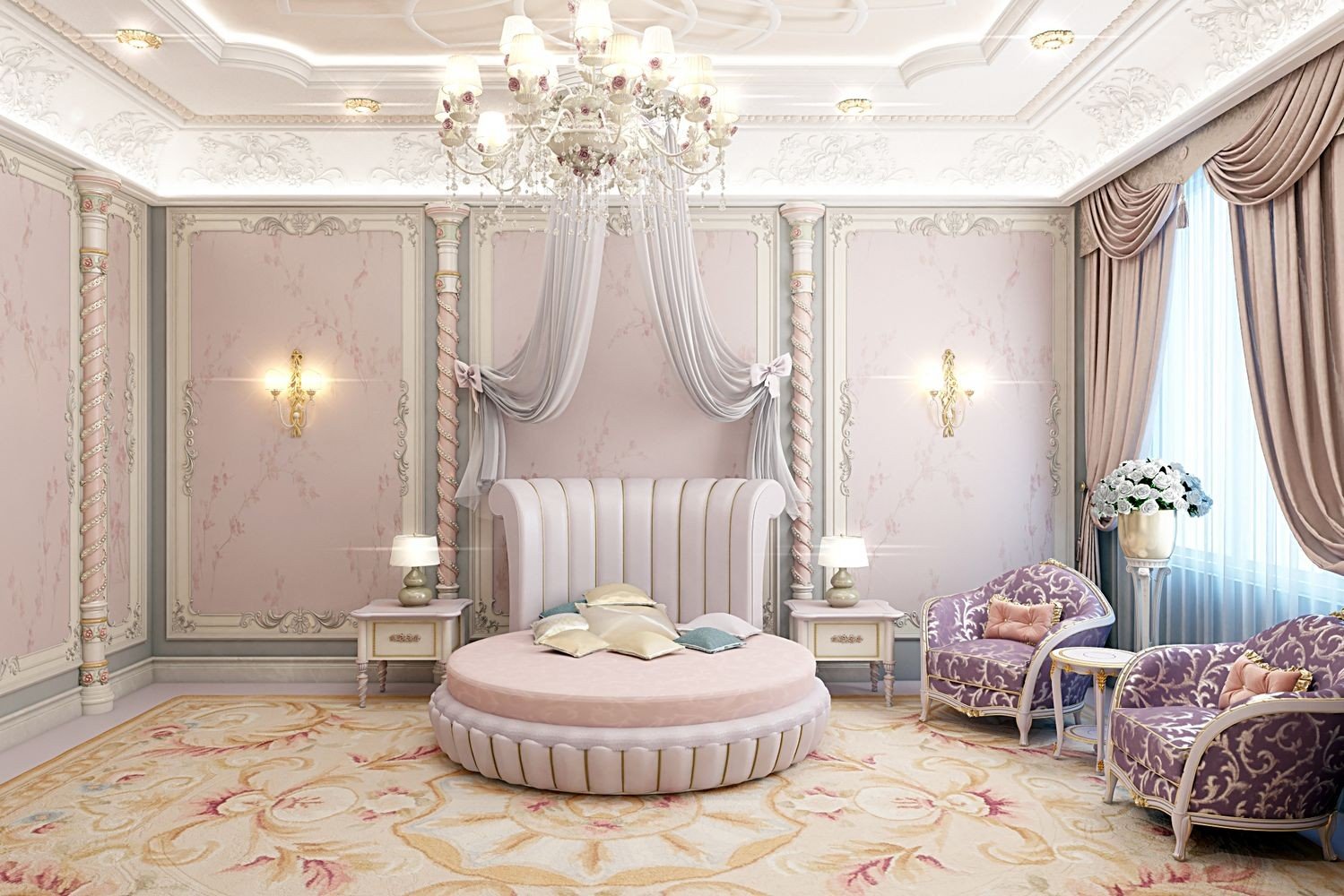 Our designers of Luxury Antonovich Design do not follow the stereotypes in design and do not decorate the whole room in one tone depending on the gender of the child. Monotony bothers, and does not look very stylish. We prefer to choose light, gentle tones, having diluted them with bright color accents in a decor and textiles. Childrens room for a girl is an air and easy space. A delicate purple color is perfect for wall decoration; it will not only visually increase the space, but will also give your child the opportunity to choose the color combinations of decorative elements.