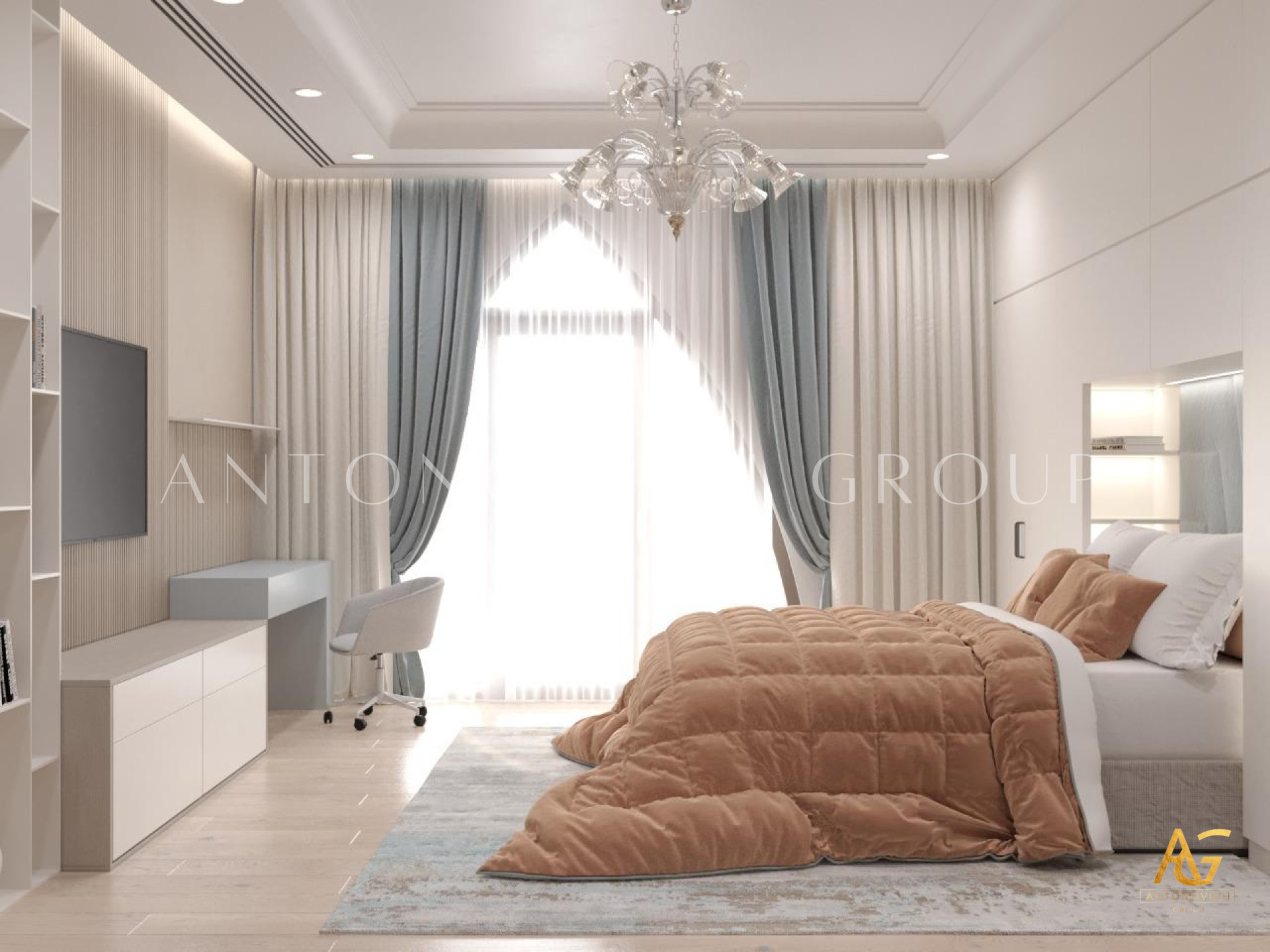 The bedroom gives off a boys theme with its cool blue color from the curtains to the rack. Every piece of furniture is arranged nicely which will give you enough space for the luxury bedroom interior design. Every corner of this luxury bedroom interior design is modern and luxurious. The design and aesthetic are very cool with a modern style for the boys interior design. Its contrast makes the room a playful one and the style can fit into a luxury mansion bedroom interior design.