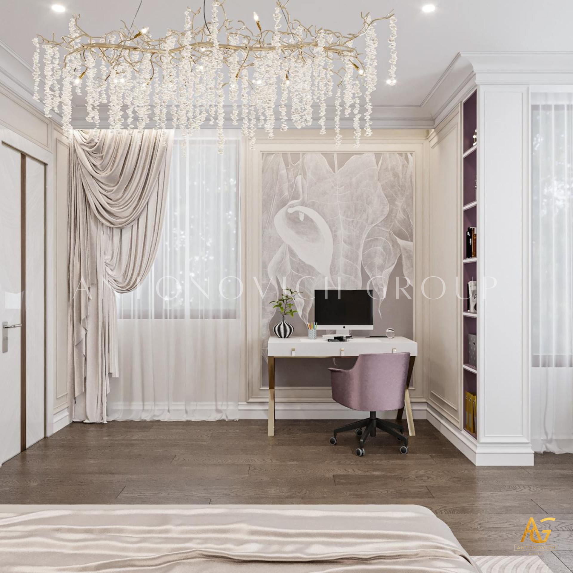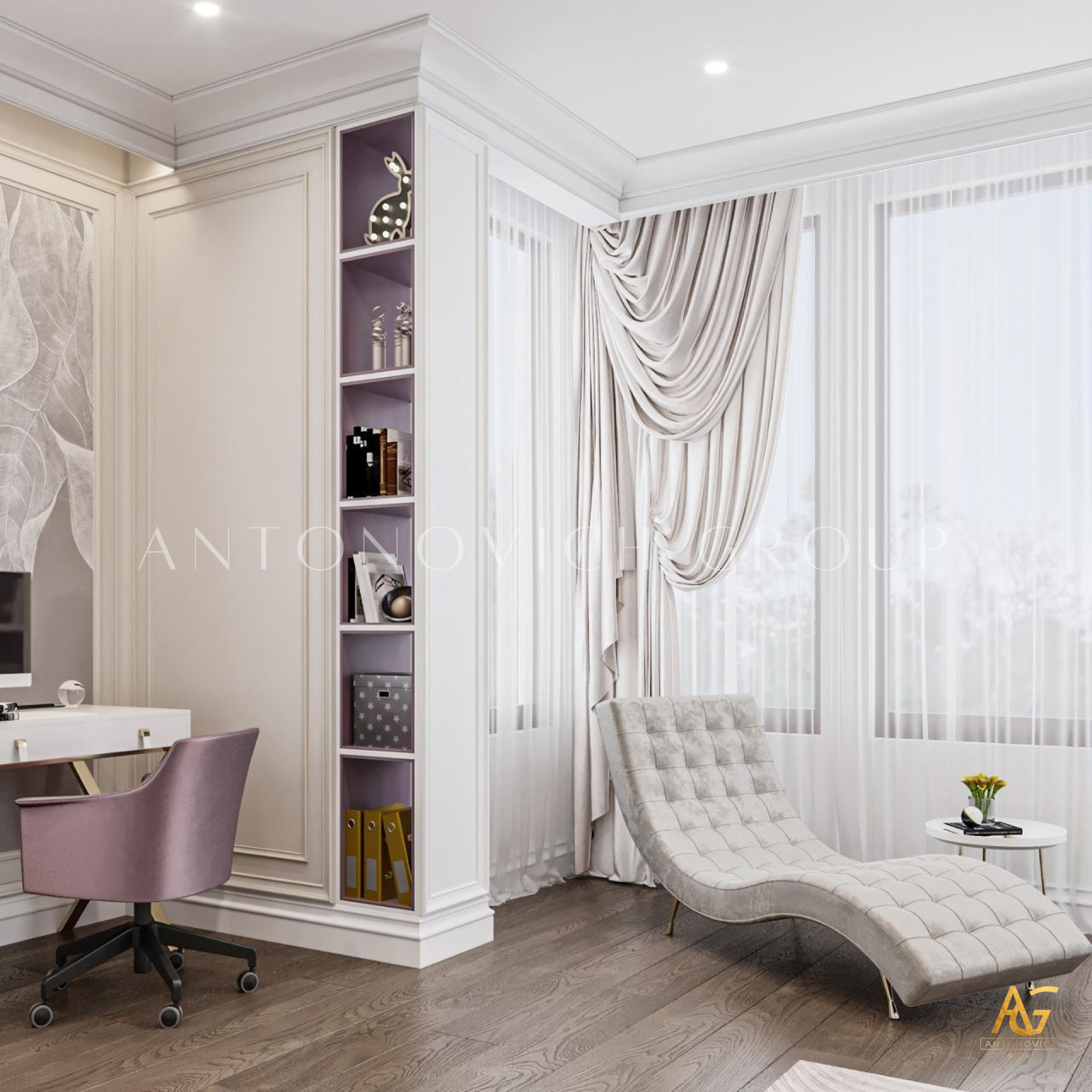 A room for a girl is a small work of art that emphasizes the individuality of your child and commitment for beauty and pure intentions. That is why our company Luxury Antonovich Design think carefully about the interior design of the kids room for girls and try to make it not only the most convenient, but also beautiful, and able to form the attitude of the girl and her sense of beauty. The general view of the room and the atmosphere of it depends on the proper selection of colors and shades. After all, thanks to the gentle tones, you can create a soft, relaxing atmosphere, and with the help of contrast transitions — you can highlight the important interior items.