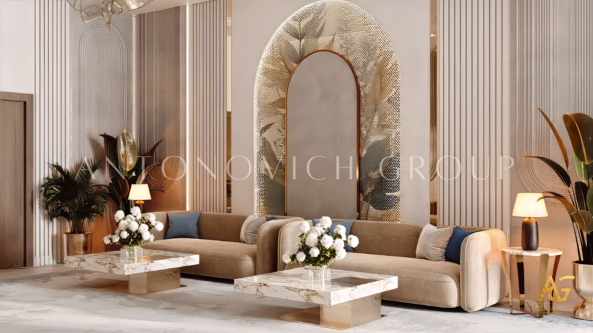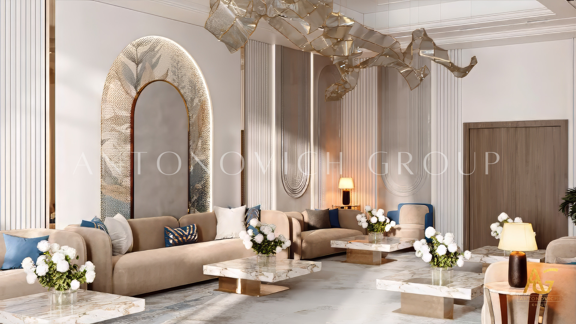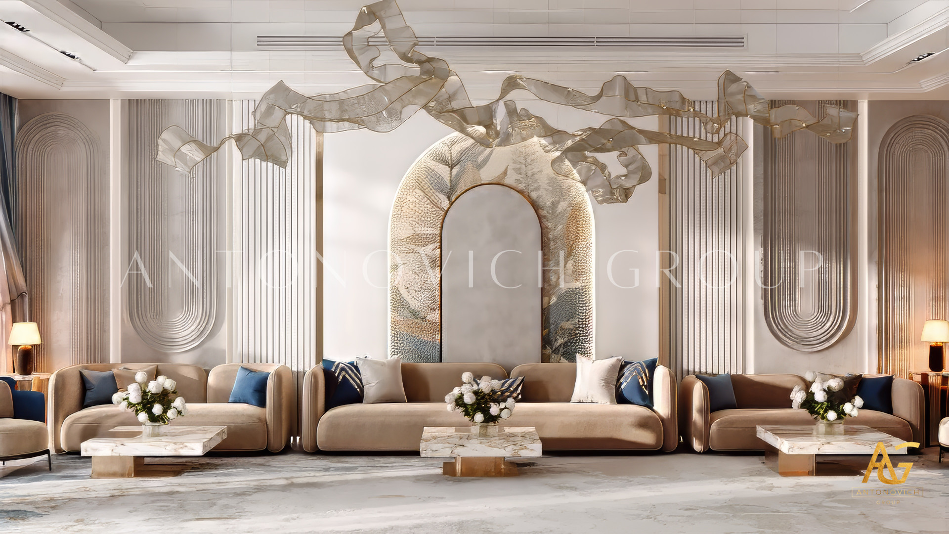 After a long day, your living room is a place where you can unwind. Its a location where you can do your own thing without being bothered by others. Luxury Antonovich Design has ensured that the luxury Saudi Arabia interior design has a glamorous design that is extremely gorgeous and exquisite with this work. The interior designs elegant and simple color scheme exudes class, elegance, and refinement. The luxury interior designs one-color motif is really well-made, with various colors of cream from the top interior design companies in Saudi Arabia.