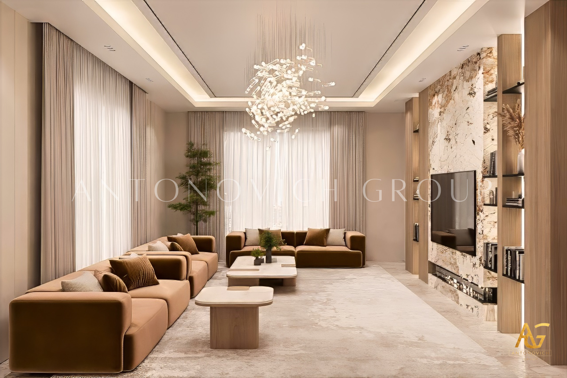 Their fit-out team ensures that every detail, from wall finishes to flooring and ceiling treatments, aligns perfectly with the design vision. This synergy between creativity and execution is what distinguishes Antonovich Group as a leader in luxury living room fit-out in Dubai.