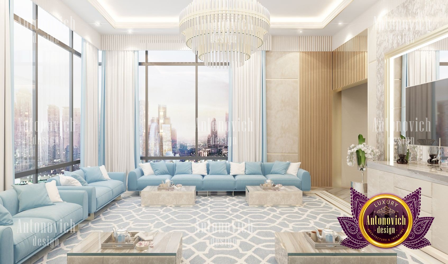 Have you noticed how color plays an important part in a room? Lighter shades like white, light blue, or nudes give the room a more airy and crisp look which is fresh and neat. It is important to put attention into choosing your living room color to make sure that it looks uncluttered. The lighting in your living room also creates a different feel. The luminosity that the light fixtures provide creates a more elegant look in the living room. As you can see the chandelier is a customized crystal fringe which reflects beautifully with the white and light blue walls of the living room. Contrasting the living room with a little metallic gold adds a striking feature that furnishes the primary colors of white and sky blue. The wall art that is hanged creates an attracting and captivating look which makes it the focal point in the living room. Investing in art adds value to your home. Our team loves incorporating patterns and materials that will generate texture and depth to the living room. The drapes that we used in this model living room is white to coordinate it well with the whole theme that goes in inside the living room. The huge window panels will provide natural lighting to the living room making it look more lively. The windows also serve as a bridge of the indoors to the outdoors which provides a beautiful scenic view. This living room is perfect for everyone who loves hosting parties and events. We will always help you to become more creative when it comes to your living room choices. We will reflect your style and character to make it more personalized.