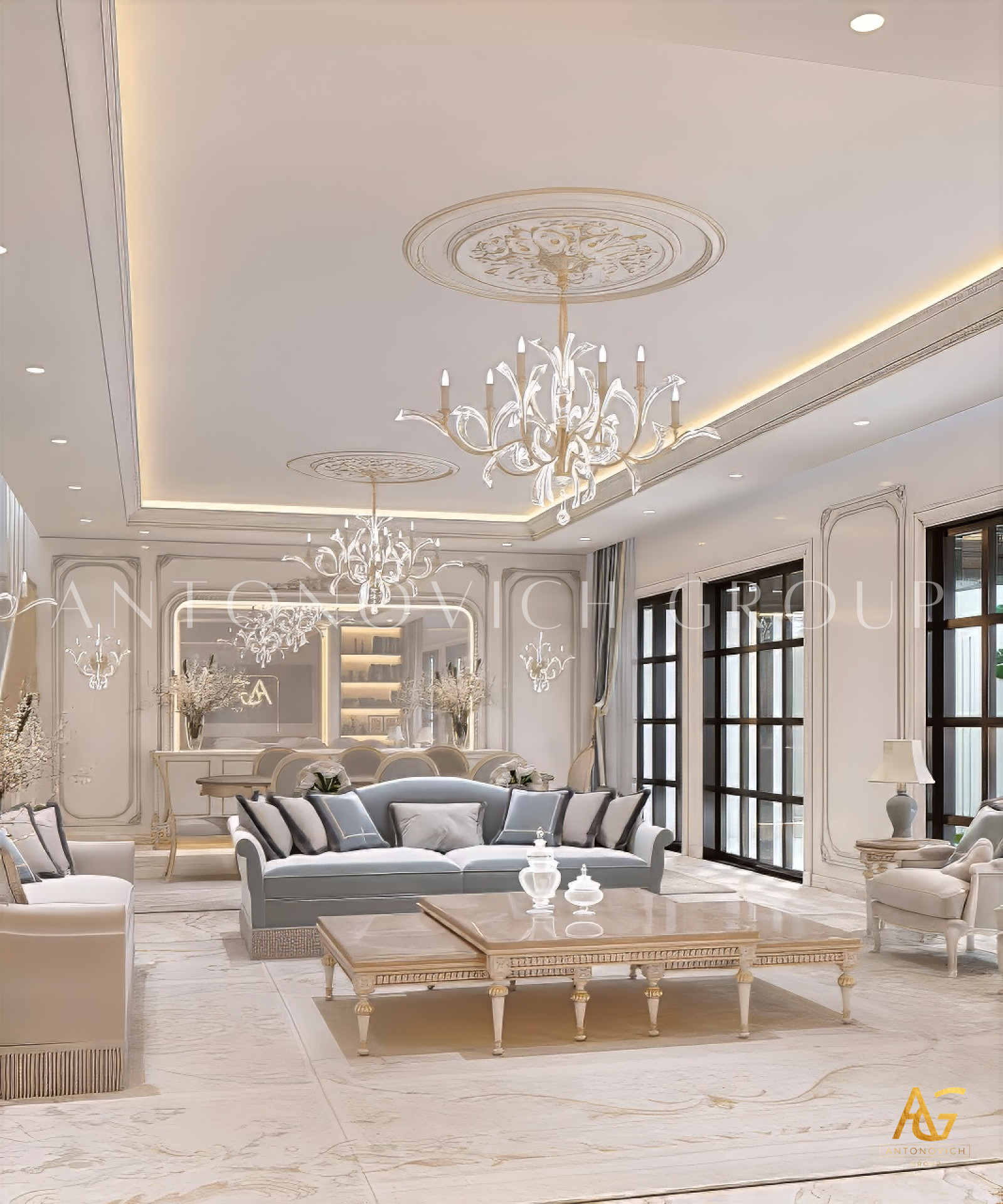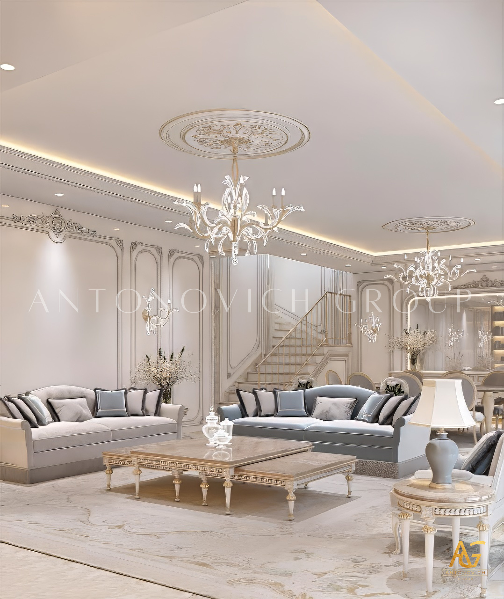 When it comes to designing a luxury living room for an elegant villa in Qatar, Antonovich Group understands the balance between opulence and functionality. The interiors are created with grand proportions, sophisticated layouts, and curated details that reflect the client’s vision of prestige. From expansive seating arrangements to statement art pieces and custom-made chandeliers, every detail is tailored to reflect elegance. The design approach combines modern innovations with classic elements, ensuring the living room feels both inviting and magnificent. Rich textures, high-quality materials, and bespoke furniture add layers of comfort while maintaining a sense of exclusivity.