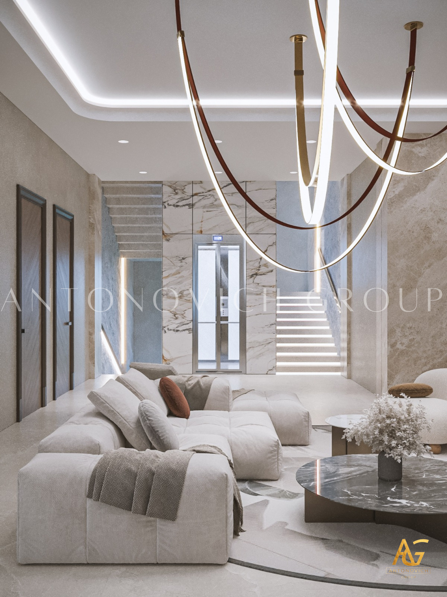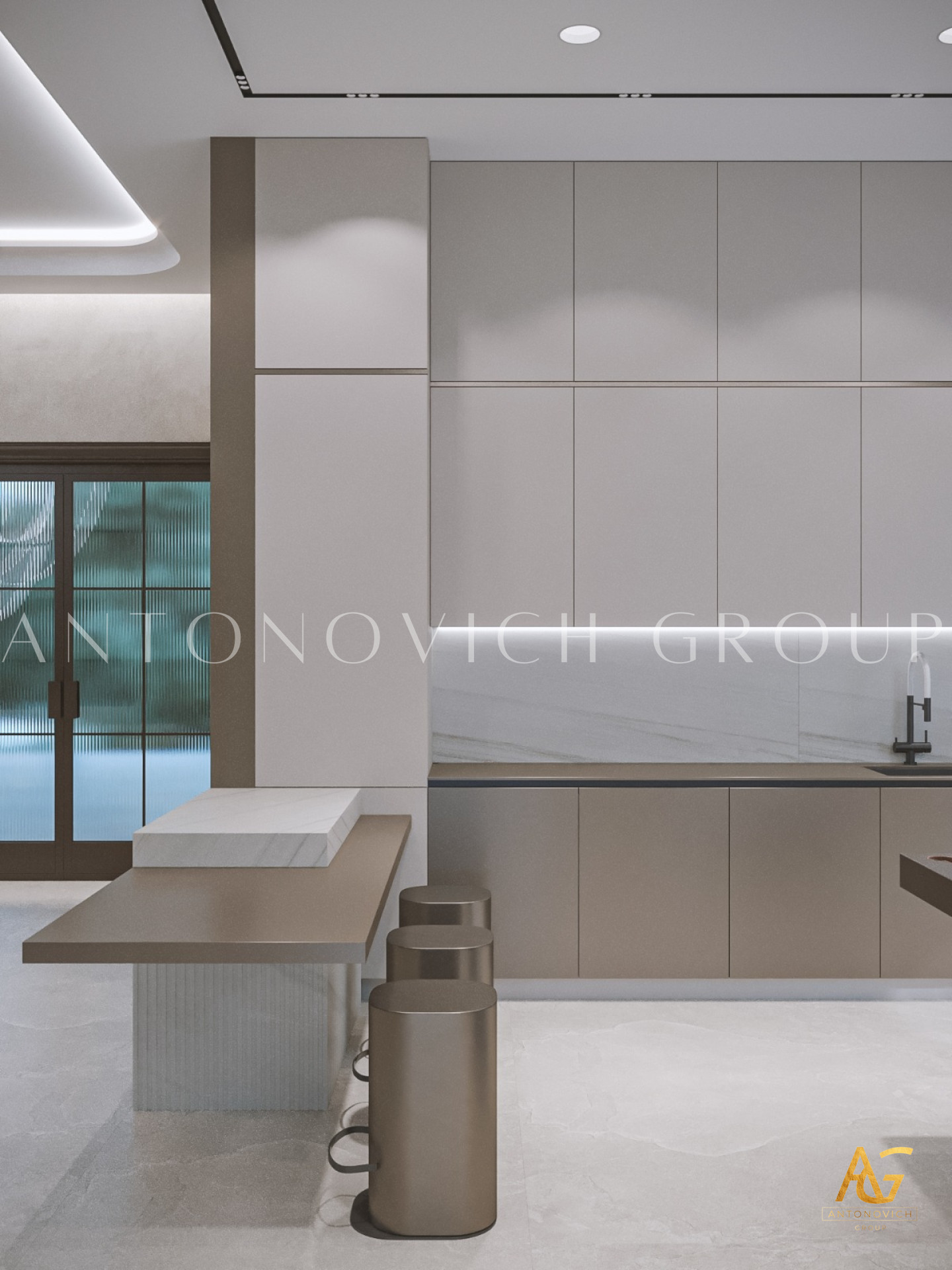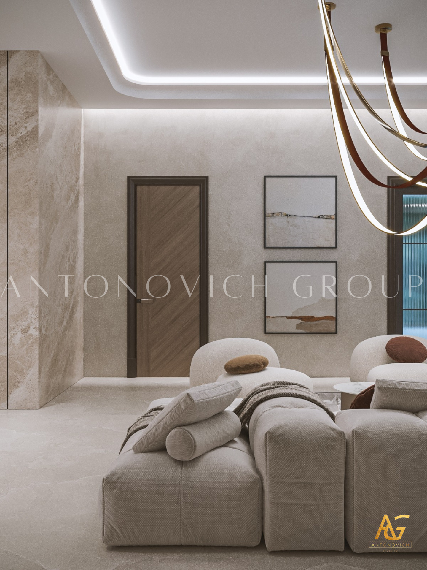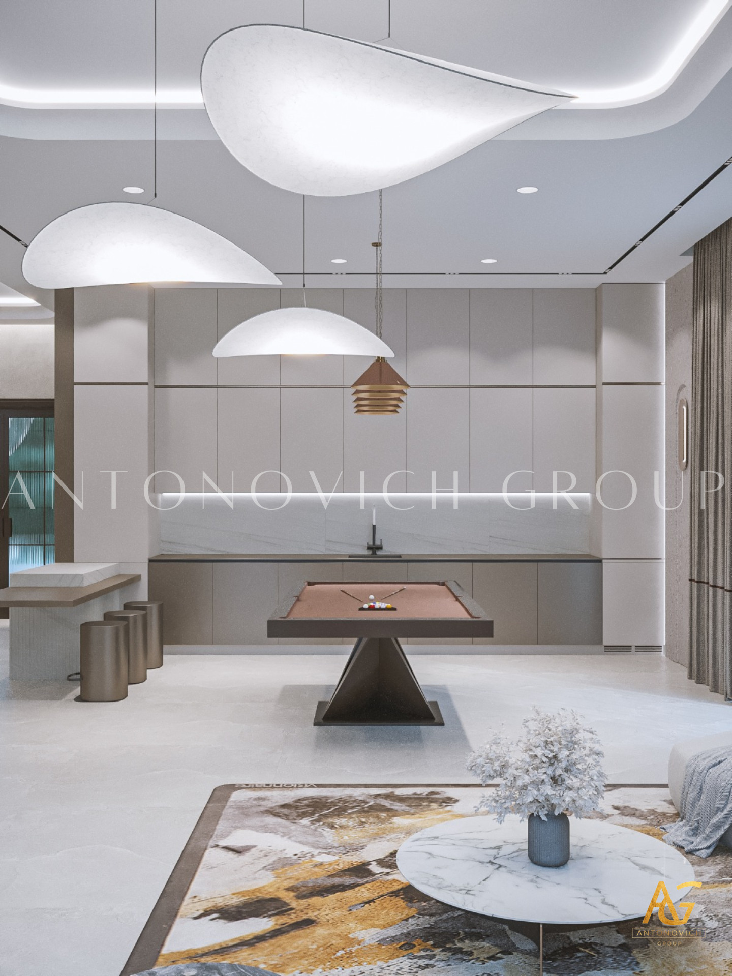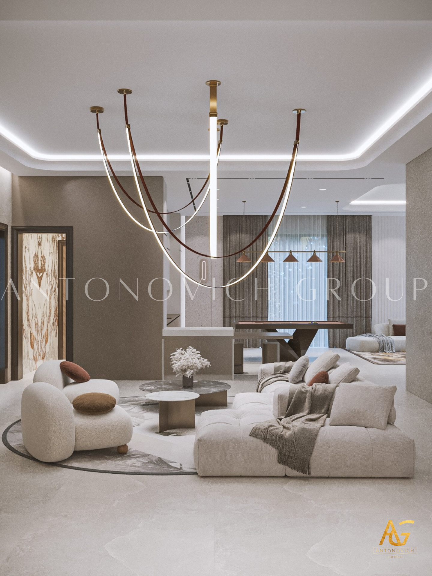Concise and elegant image of the interior, which interior designers Dubai offer, perfectly reflected the wishes of all the owners of the luxury apartment. To create a dream interior, in this project a modern style with unique original solutions fit perfectly. The cozy living room differs with absolute harmony, cozy mood and gentle appearance. The ease and tenderness of the interior is based on pleasant pastel shades. A large window curtained with translucent milky tulles is supplemented with noble silk curtains. Upholstered furniture is in cream-colored textiles. And it repeats the soft natural carpet in the middle of the room. The ceiling design in the style of high-tech perfectly fits in this cozy, uncluttered interior. The ceiling is decorated with a deep niche and modern steel-colored spotlights. Living room interior design is full of bright accents. One of these beautiful accents became a coffee table, as well as a volumetric 3D panel of cocoa with milk shade. Living room design continues dining area laconically. Stylish furniture and modern fireplace set the basis for a cozy and warm mood. No less harmoniously modern kitchen fits into the interior. Behind discreet glossy facade the most modern storage systems and the latest technology are hidden. The elite status of the interior is underlined with noble marble that interior designers Dubai used in countertops and flooring decor. Apartment design in Dubai has a bold and daring character, as well as unique and luxurious features.