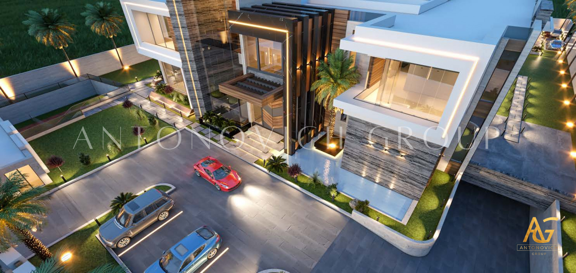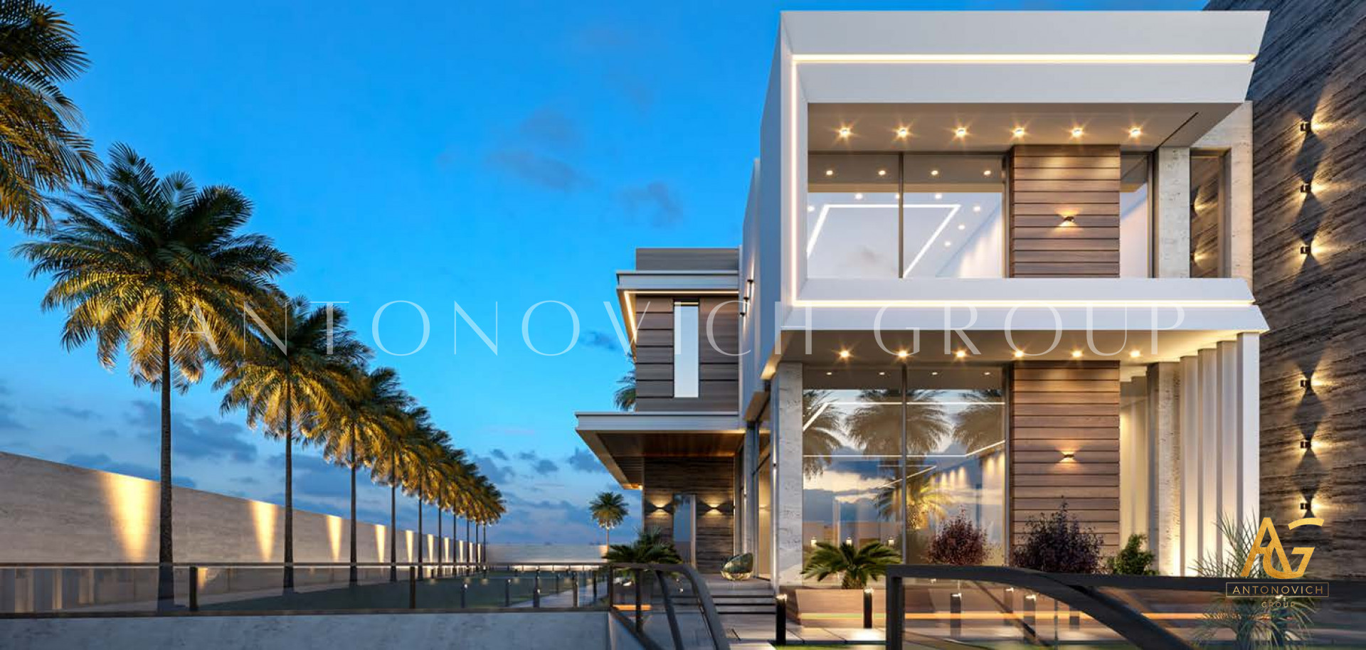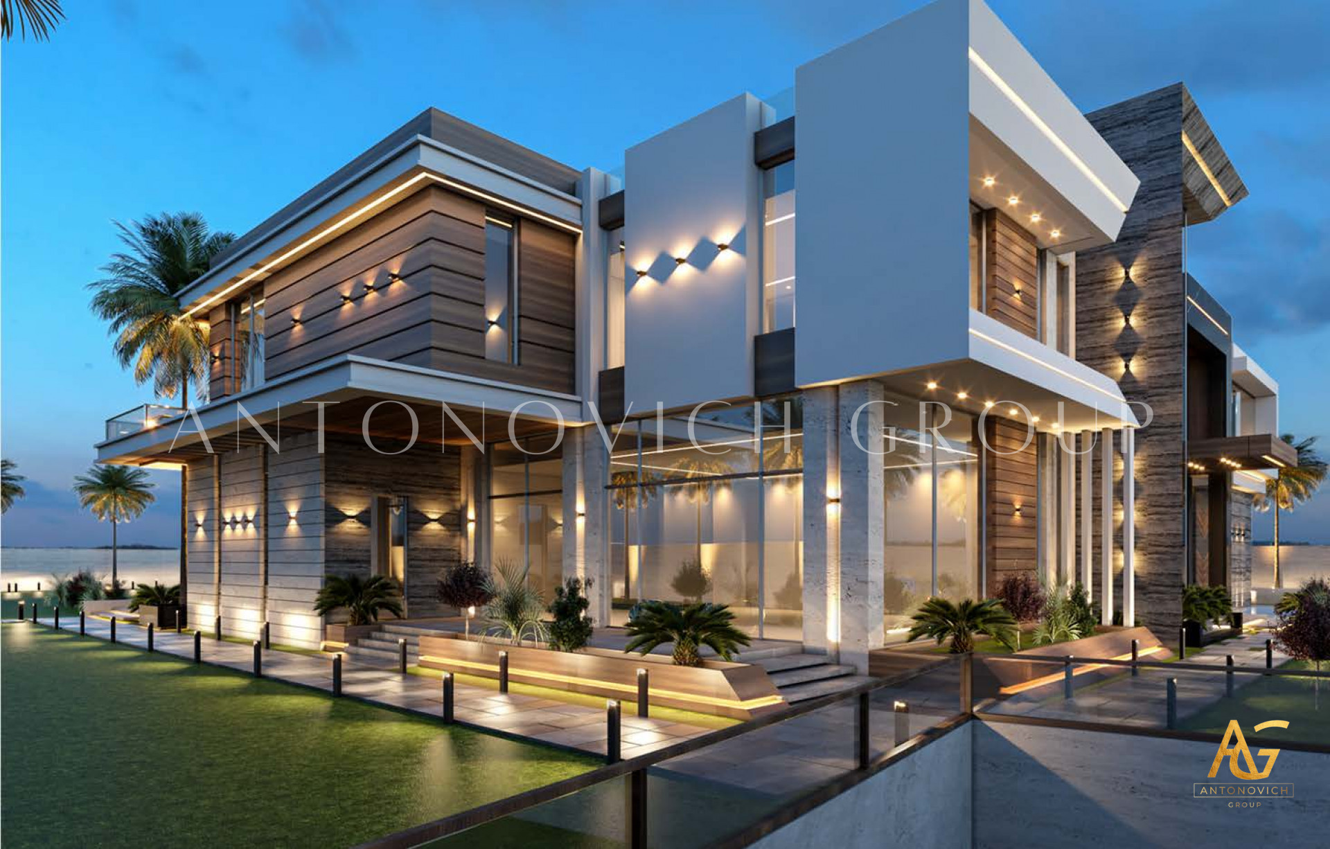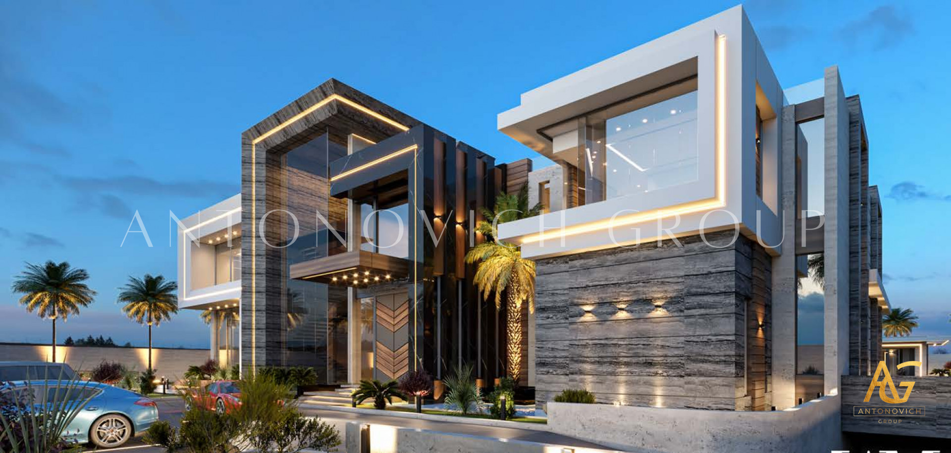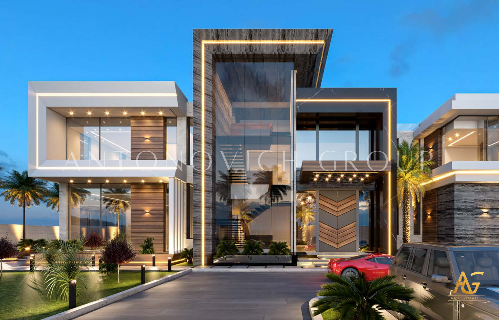 The Luxurious Villa Exterior Design by Antonovich Group takes the essence of modern style and elevates it to a level of unmatched sophistication. The facade is a harmonious fusion of clean lines, minimalistic detailing, and an emphasis on expansive glass elements. These characteristics are the quintessence of modern design, reflecting the concept of "less is more."