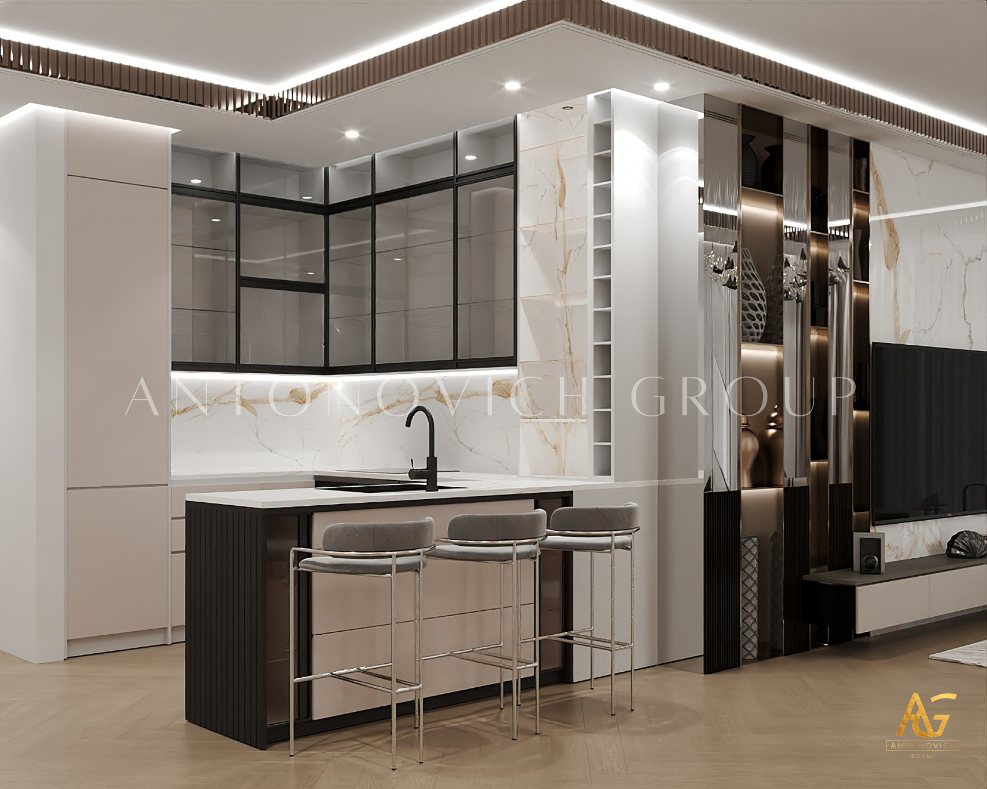 One of the most impressive aspects of the Antonovich Group's service execution was their attention to detail. Every aspect of the design was carefully considered, from the color scheme and lighting to the placement of furniture and accessories. They worked closely with the clients to understand their needs and preferences, and then incorporated those into the final design. The end result is a collection of apartments that are both aesthetically pleasing and functional, with each space tailored to the needs and lifestyle of the occupants.