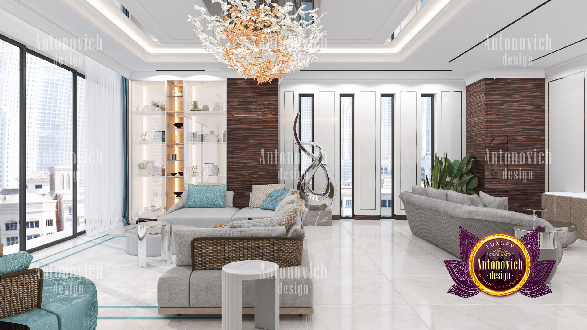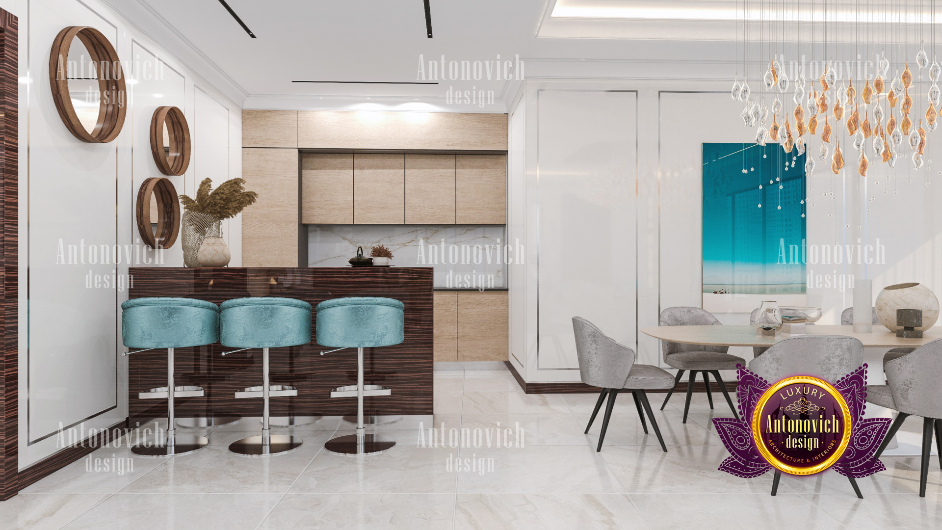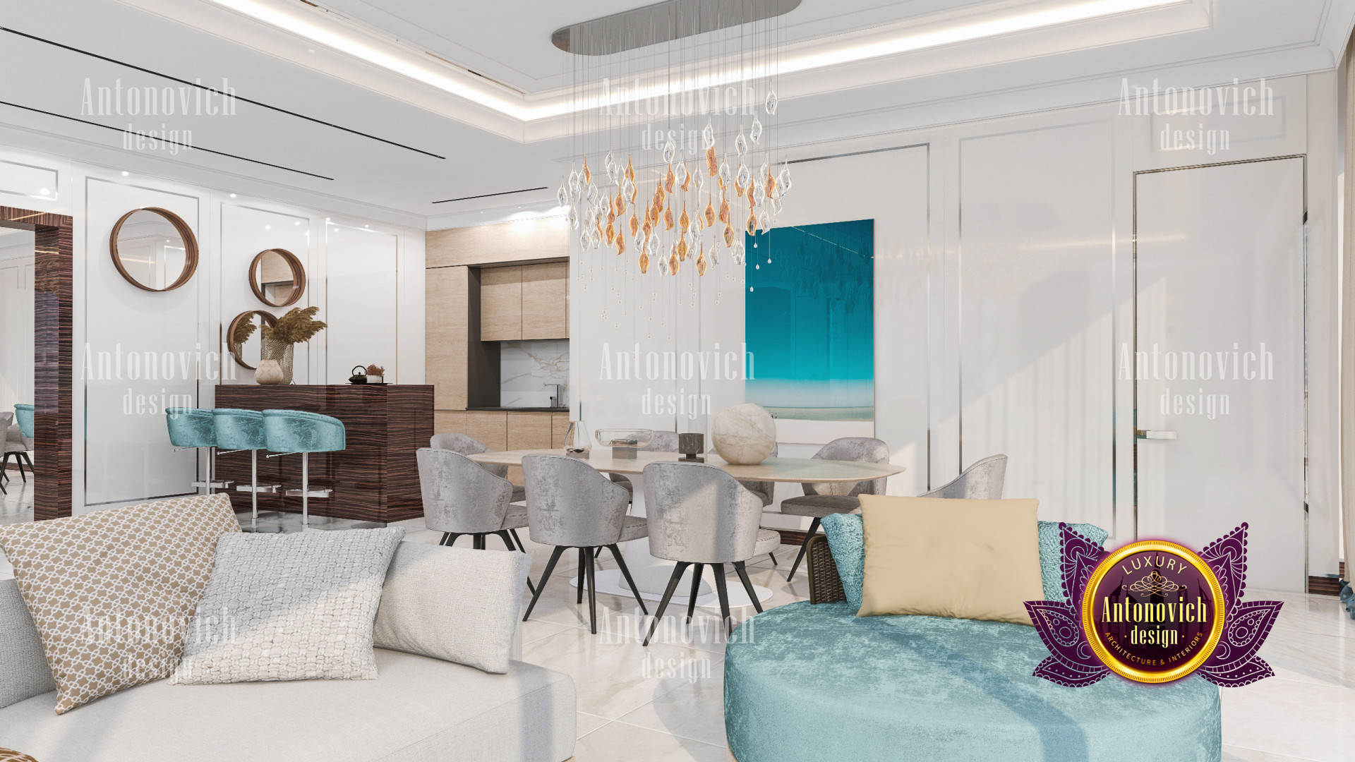 The magnificent room has its own seats and tables for relaxation, which is extremely suited in the luxury apartment interior design. Similarly, the luxury apartment interior design has one-of-a-kind and appealing decors. The luxurious apartment is one of a kind, with its gorgeous fabric sofa that feels really elegant and magnificent. The addition of spectacular walls to the luxury apartment interior design is also beneficial. The lovely blue is also coupled with brown, adding a distinctive touch to the modern luxury apartment interior design. The interior is similarly decorated, which is really appealing. The presence of lovely lighting adds to the rooms appeal.